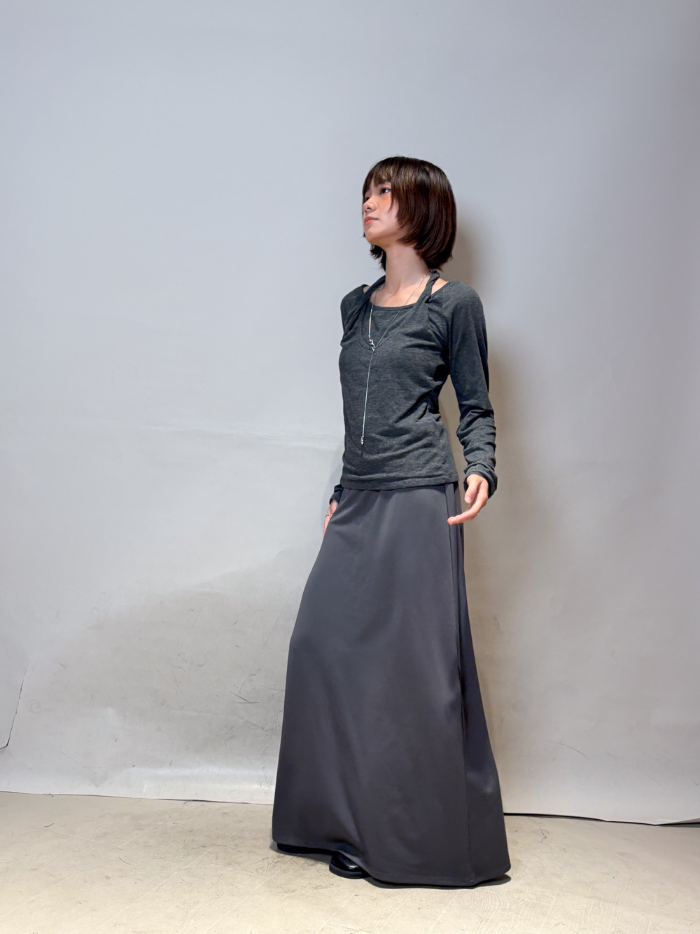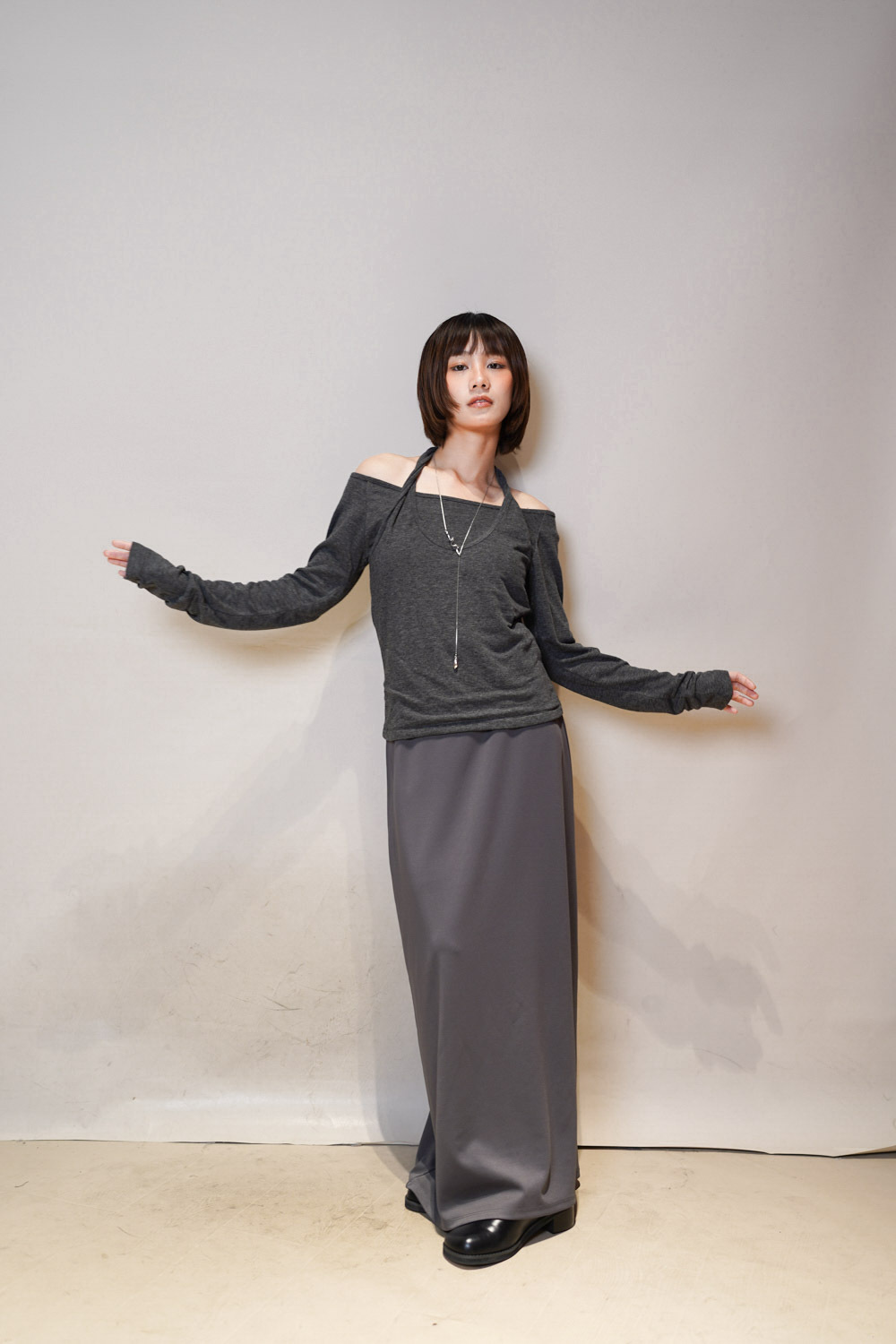 掛頸長袖/拉長頸部線條、修飾手臂