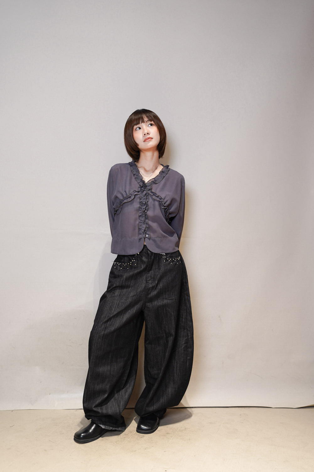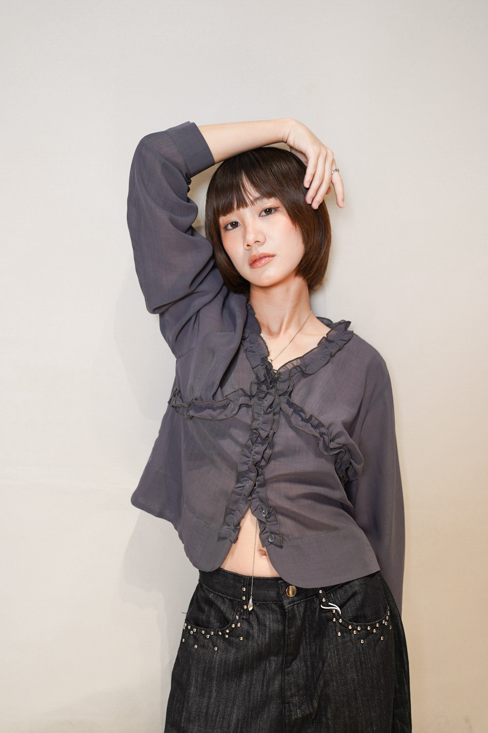 深灰穿得俐落低調又不失氣質