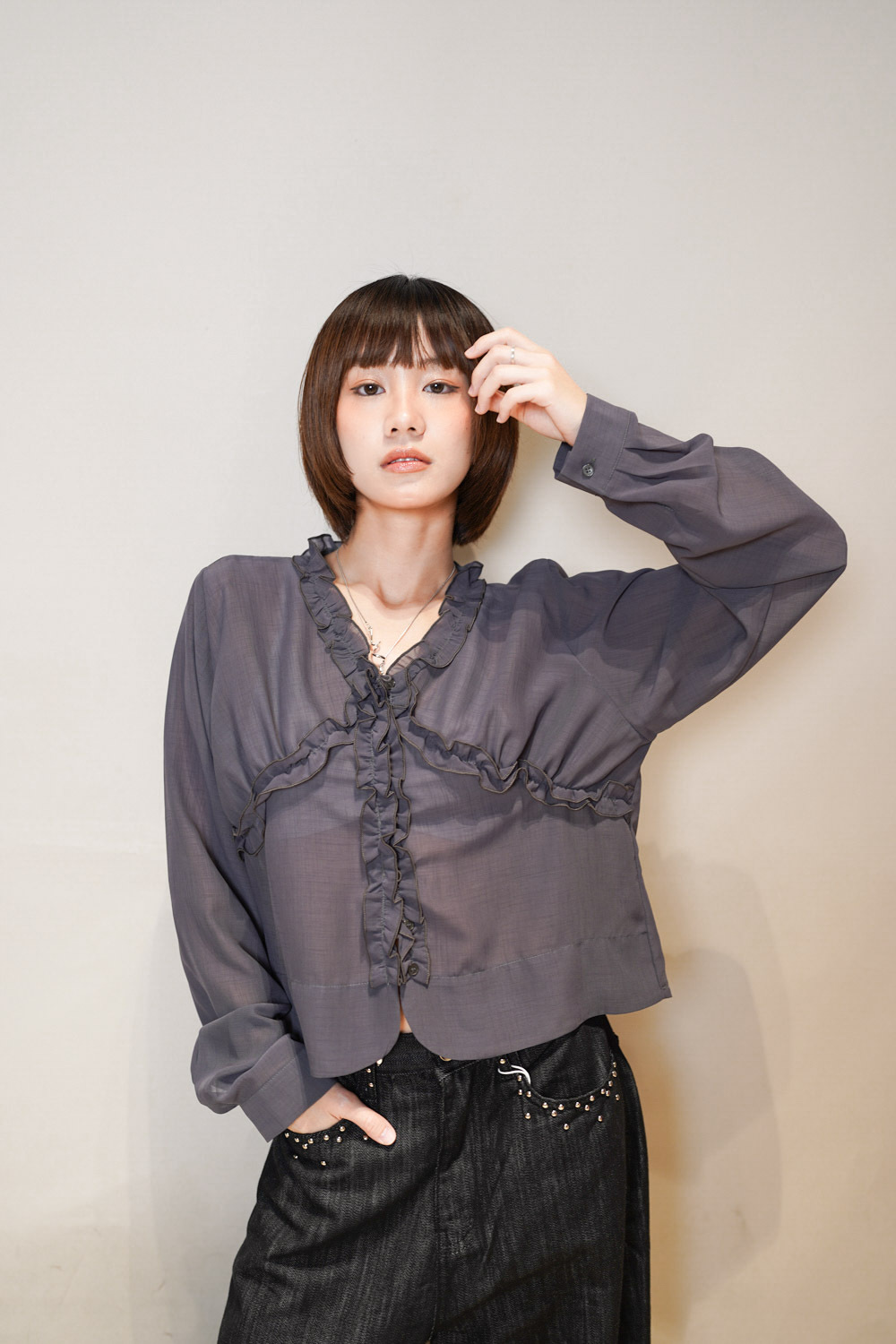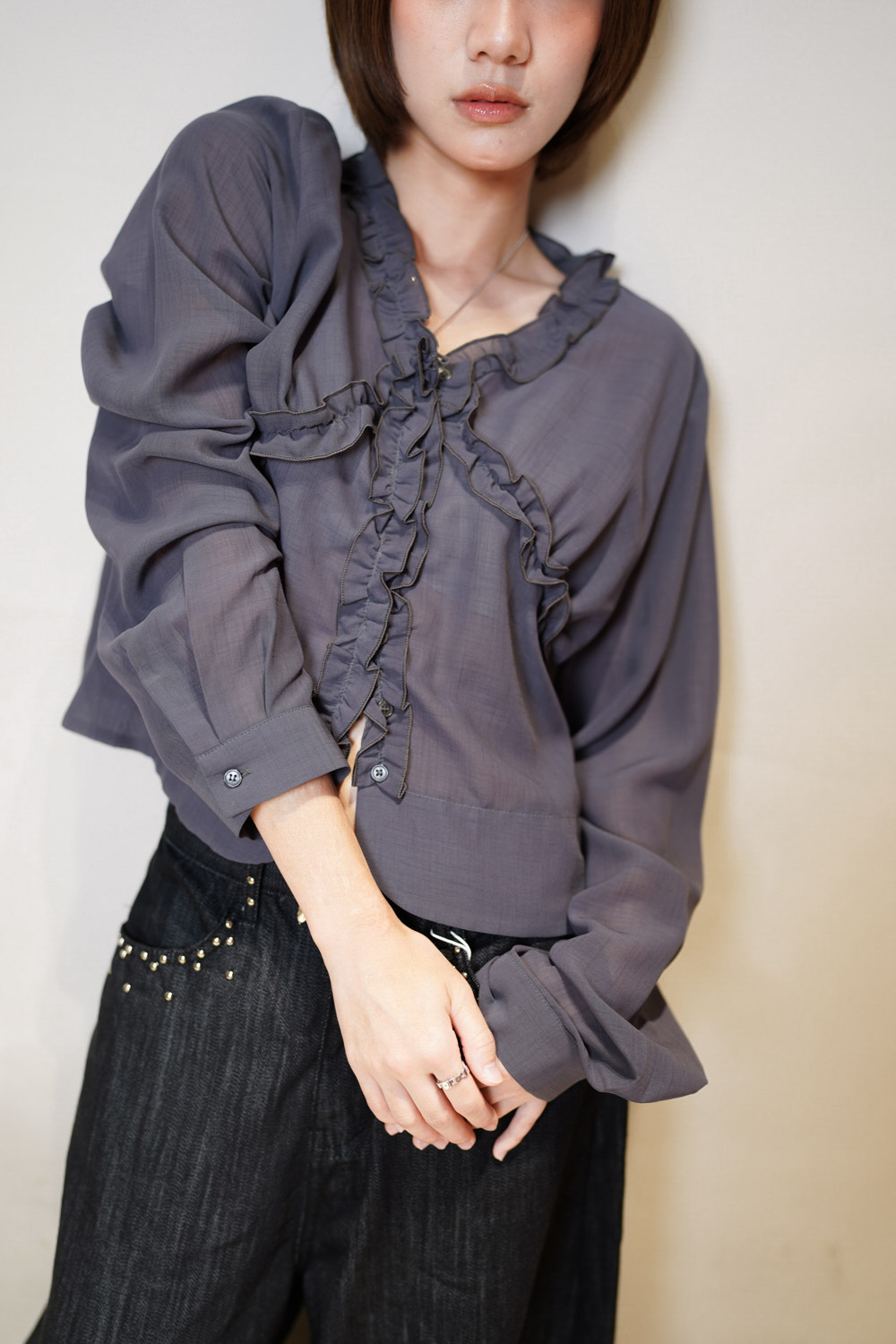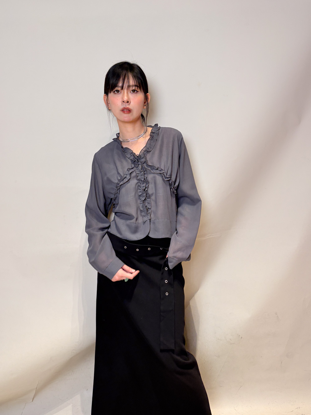領口胸前ruffle設計 小性感 /展現女性美/