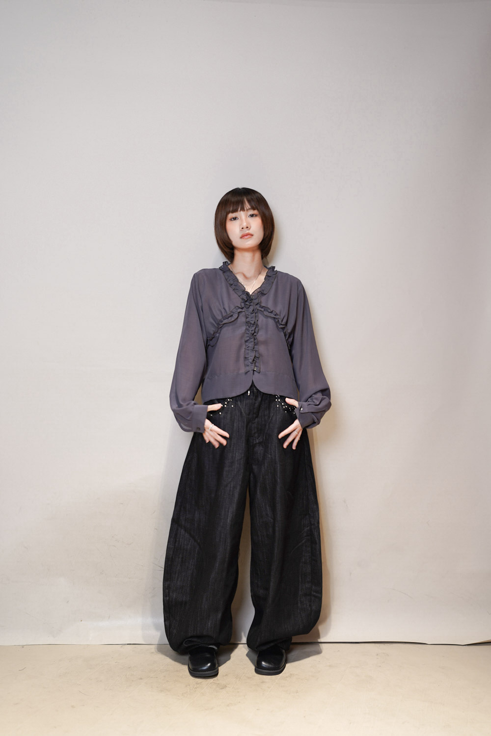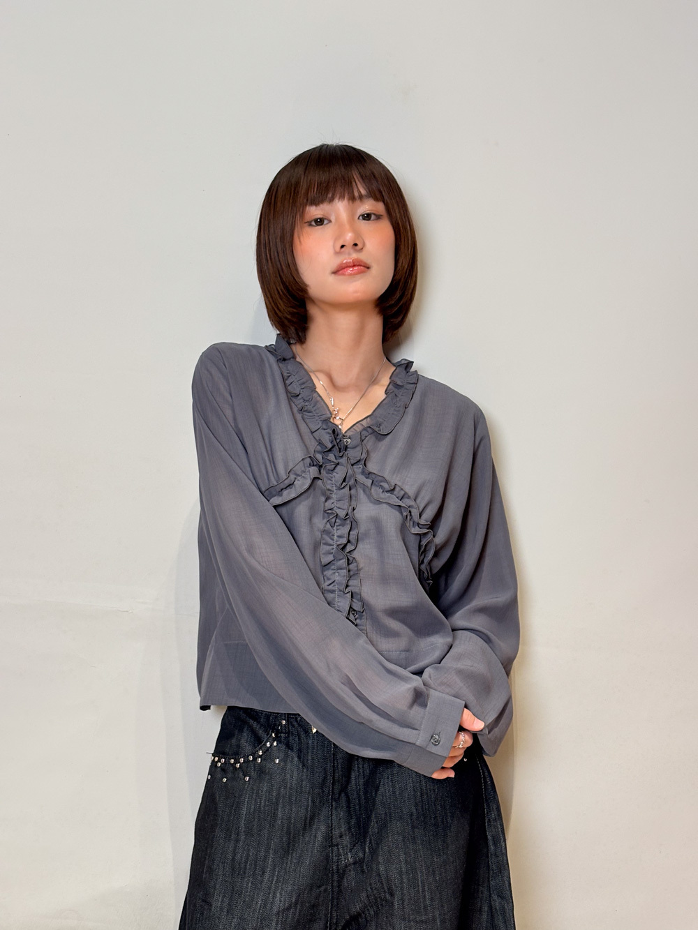 Special order: light Isabella blouse (WHITE/GREY)