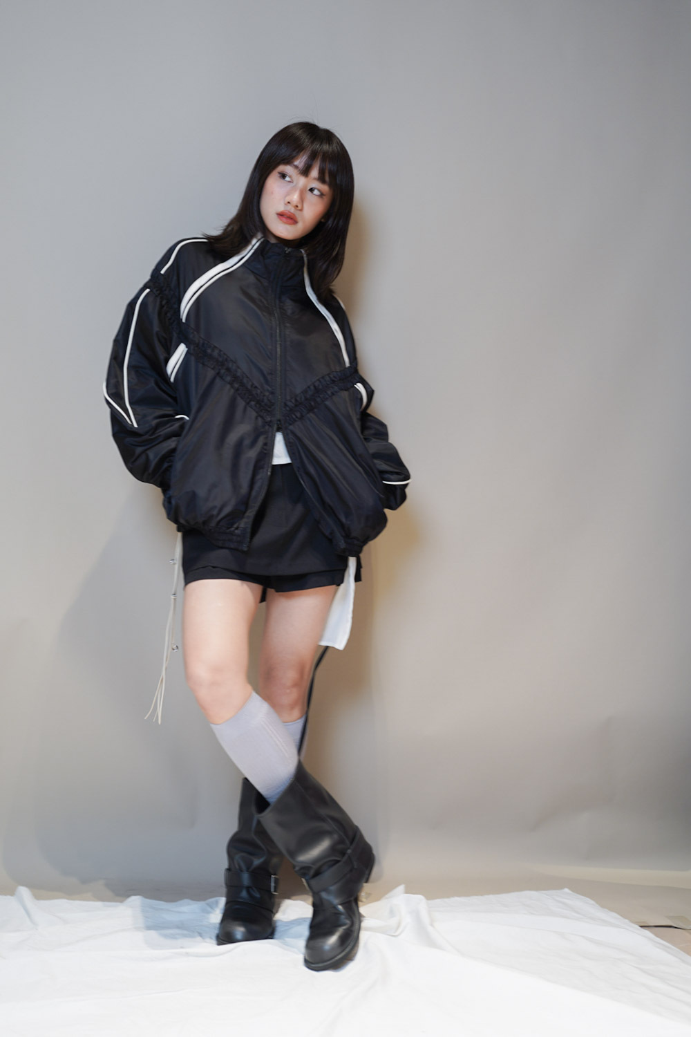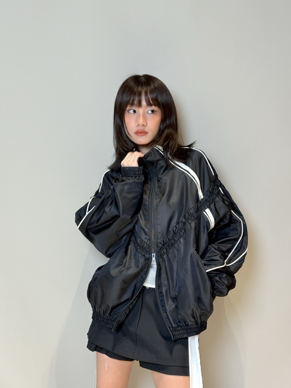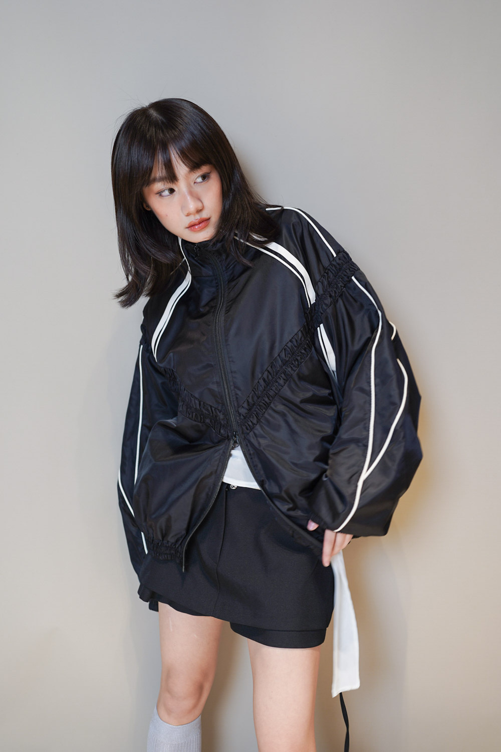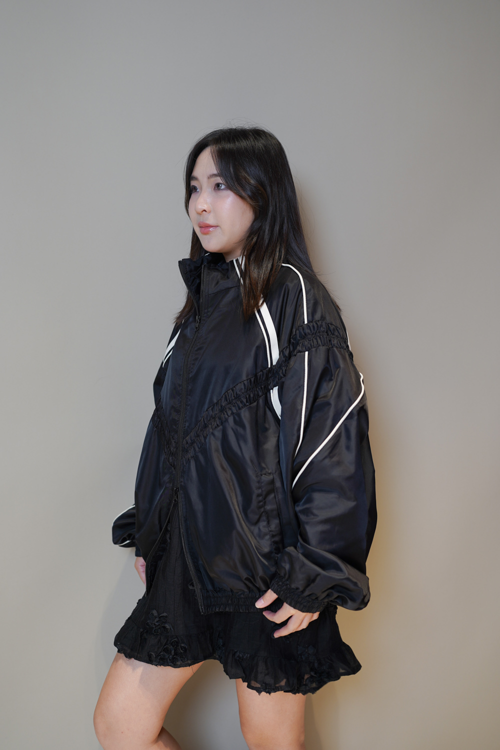 Sport mix ruffle Bomber jacket (GREEN/BLACK)