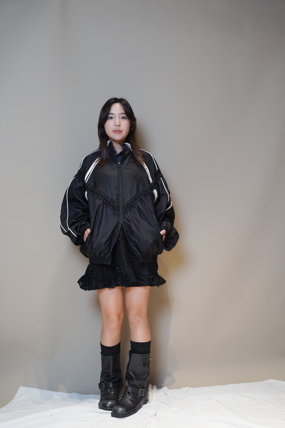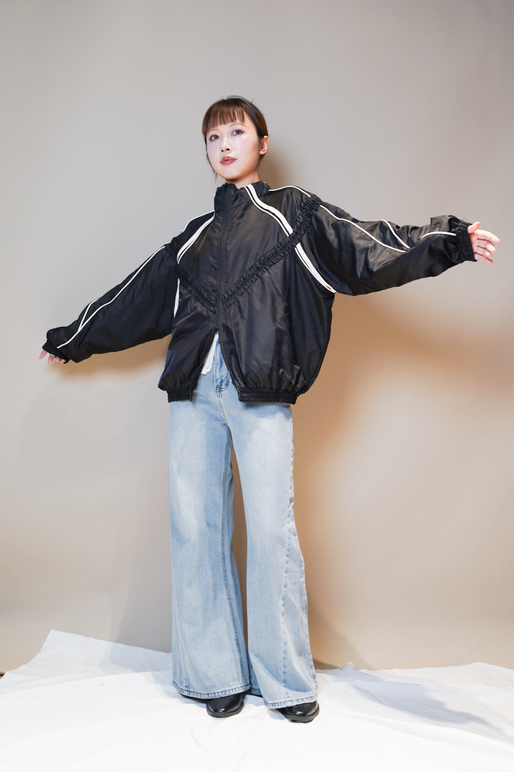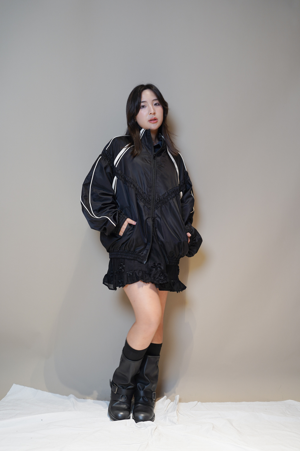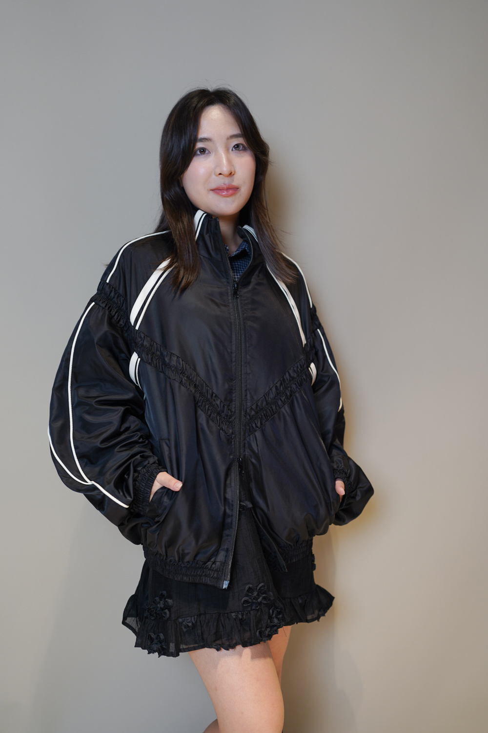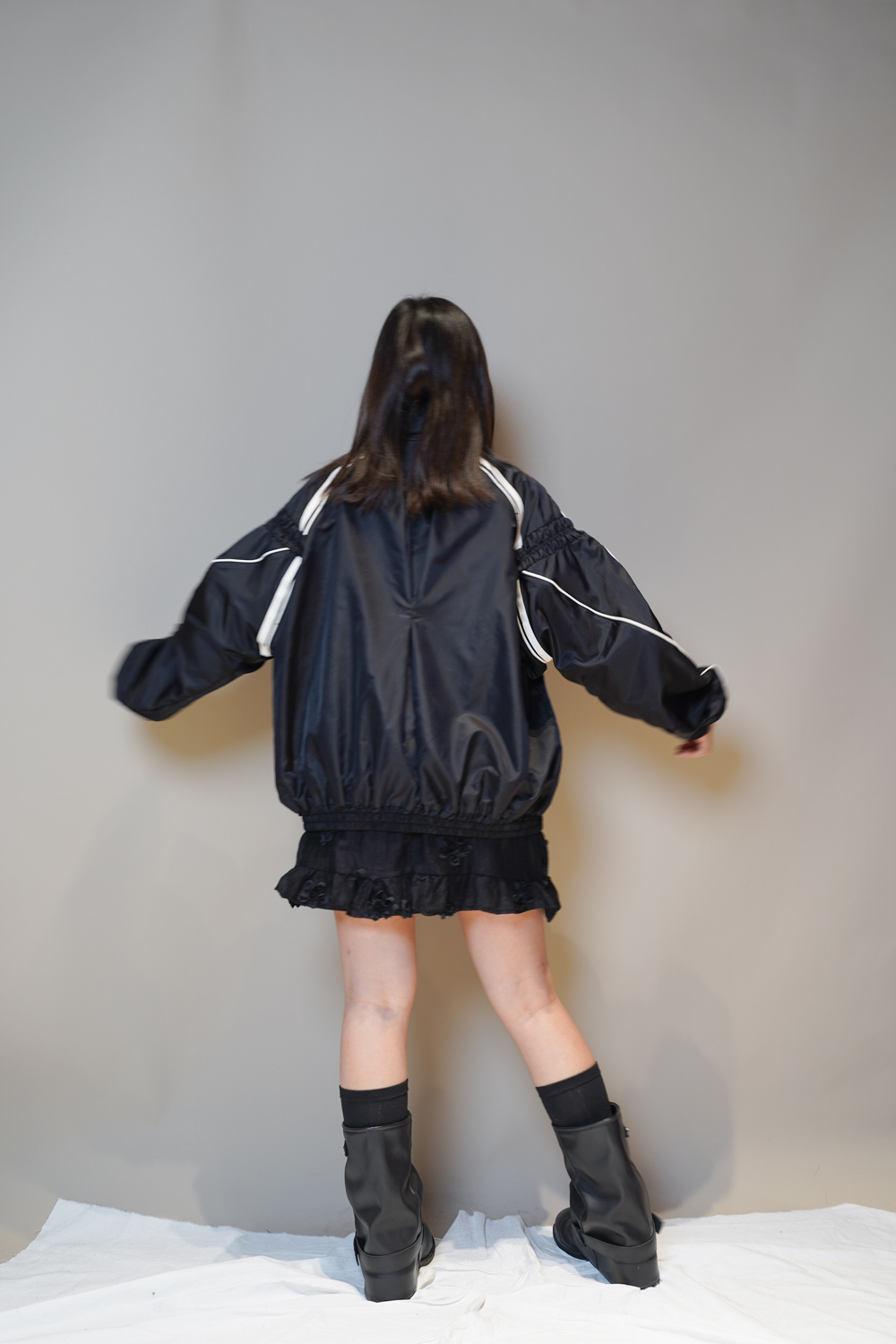 Sport mix ruffle Bomber jacket (GREEN/BLACK)