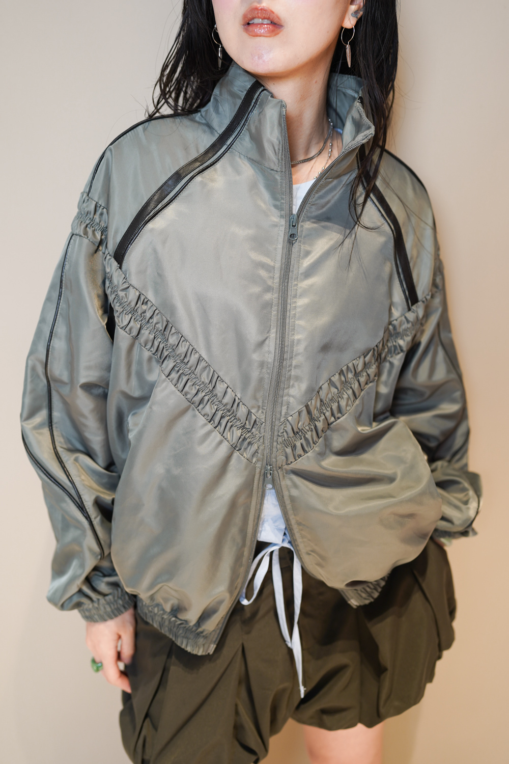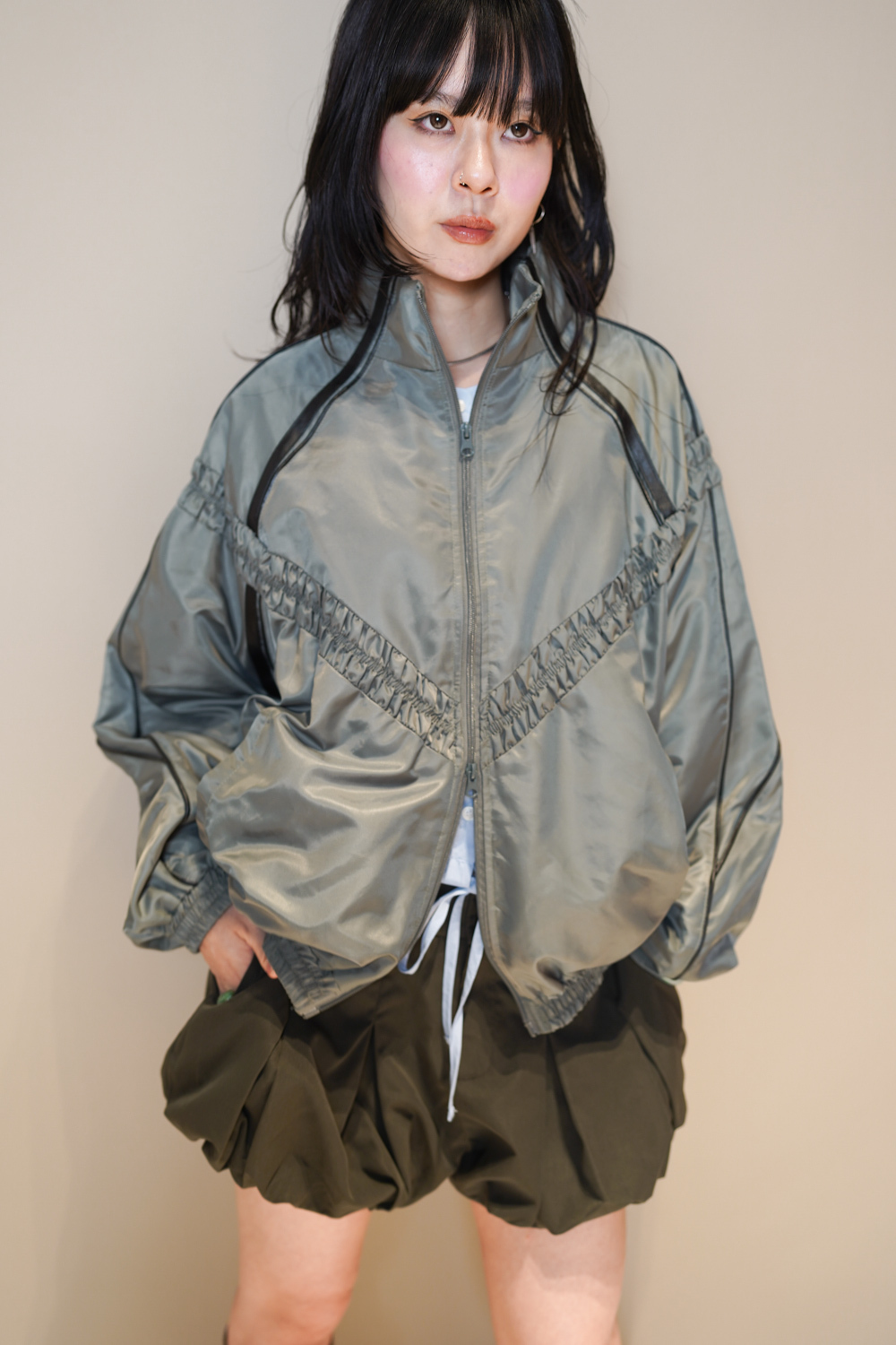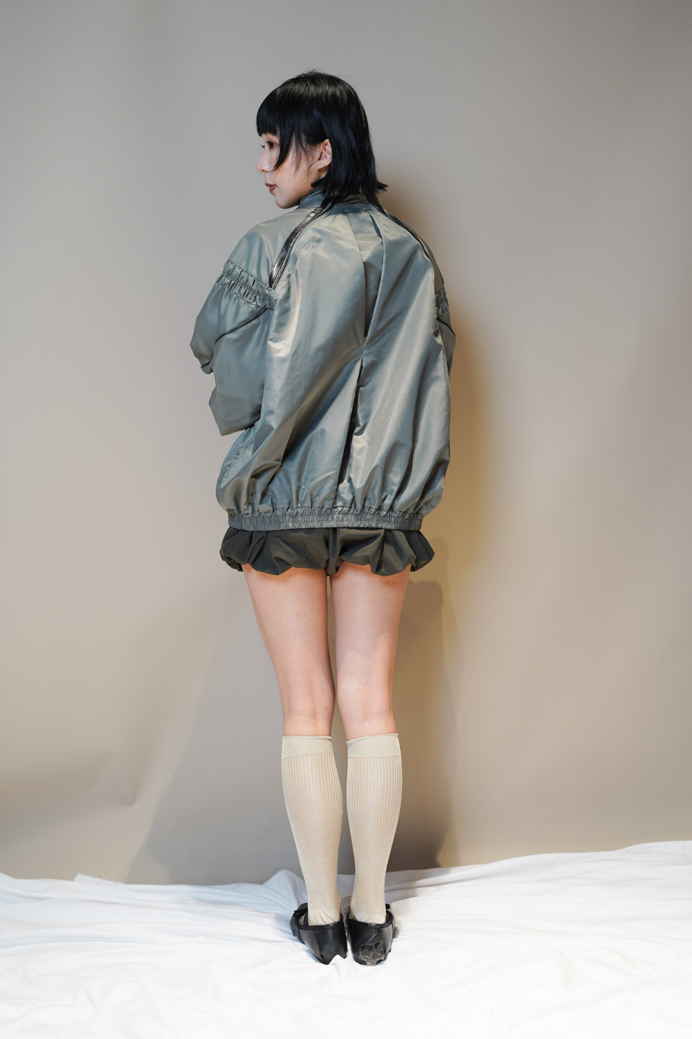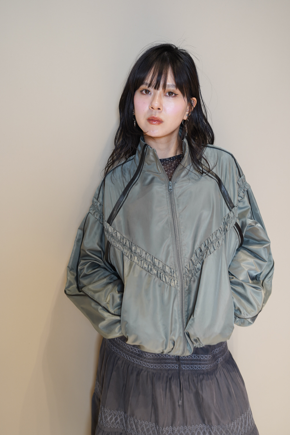 Sport mix ruffle Bomber jacket (GREEN/BLACK)