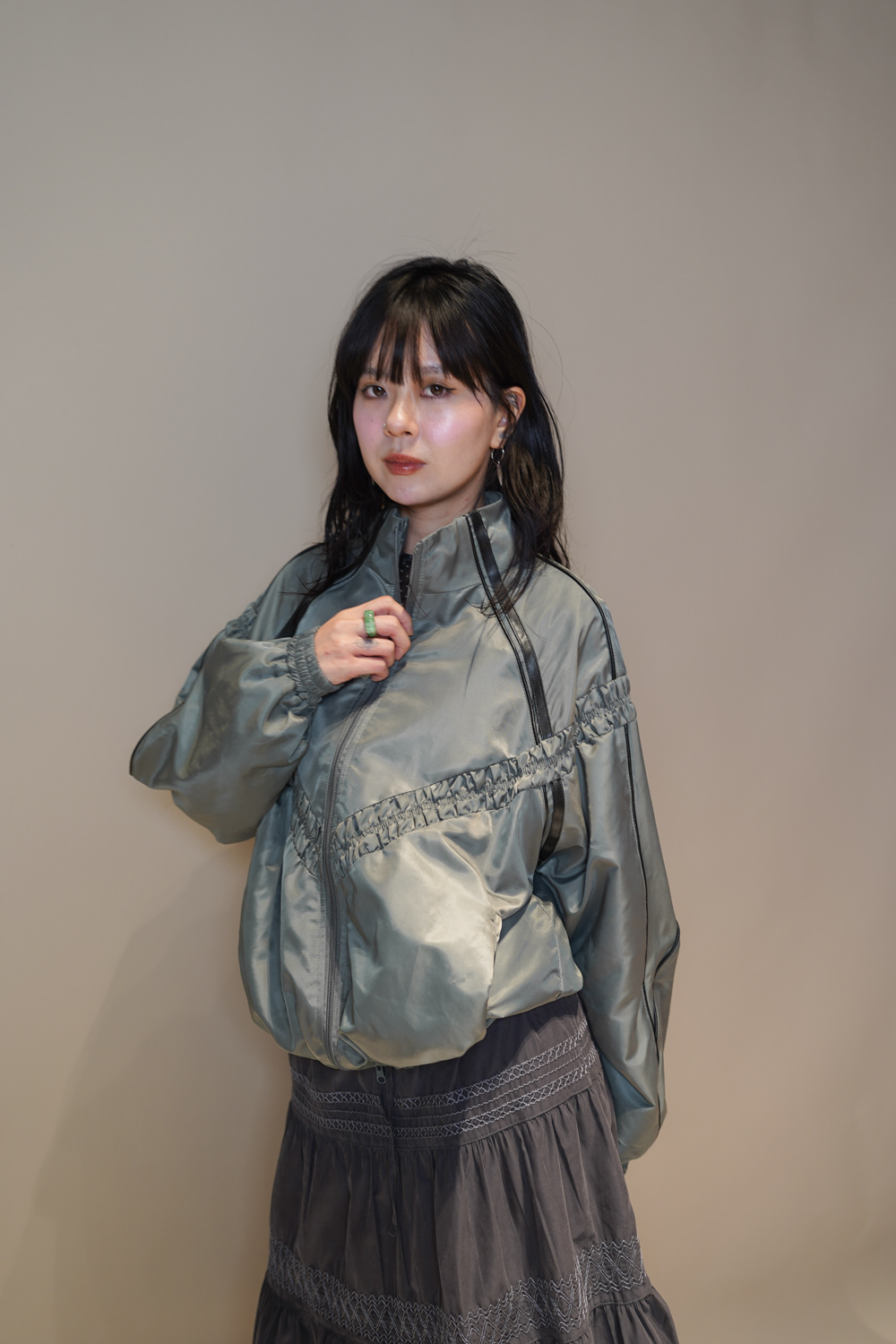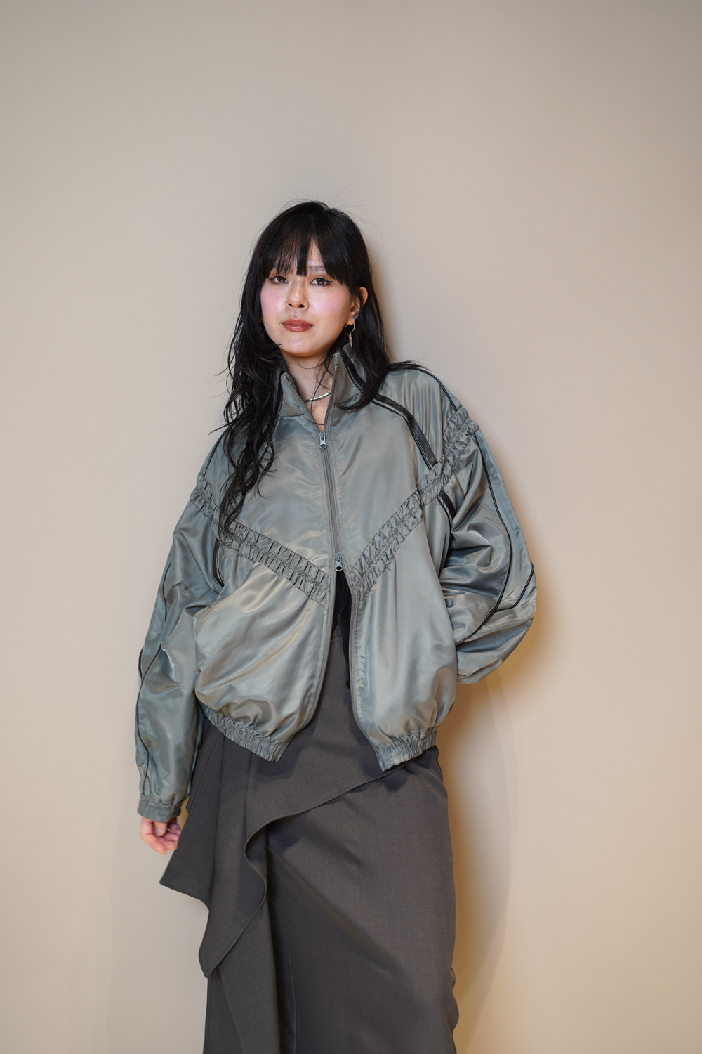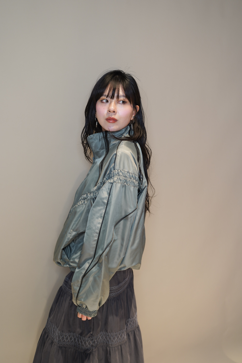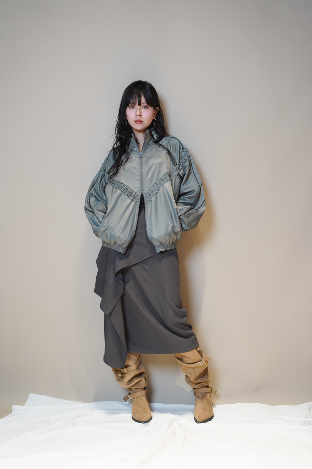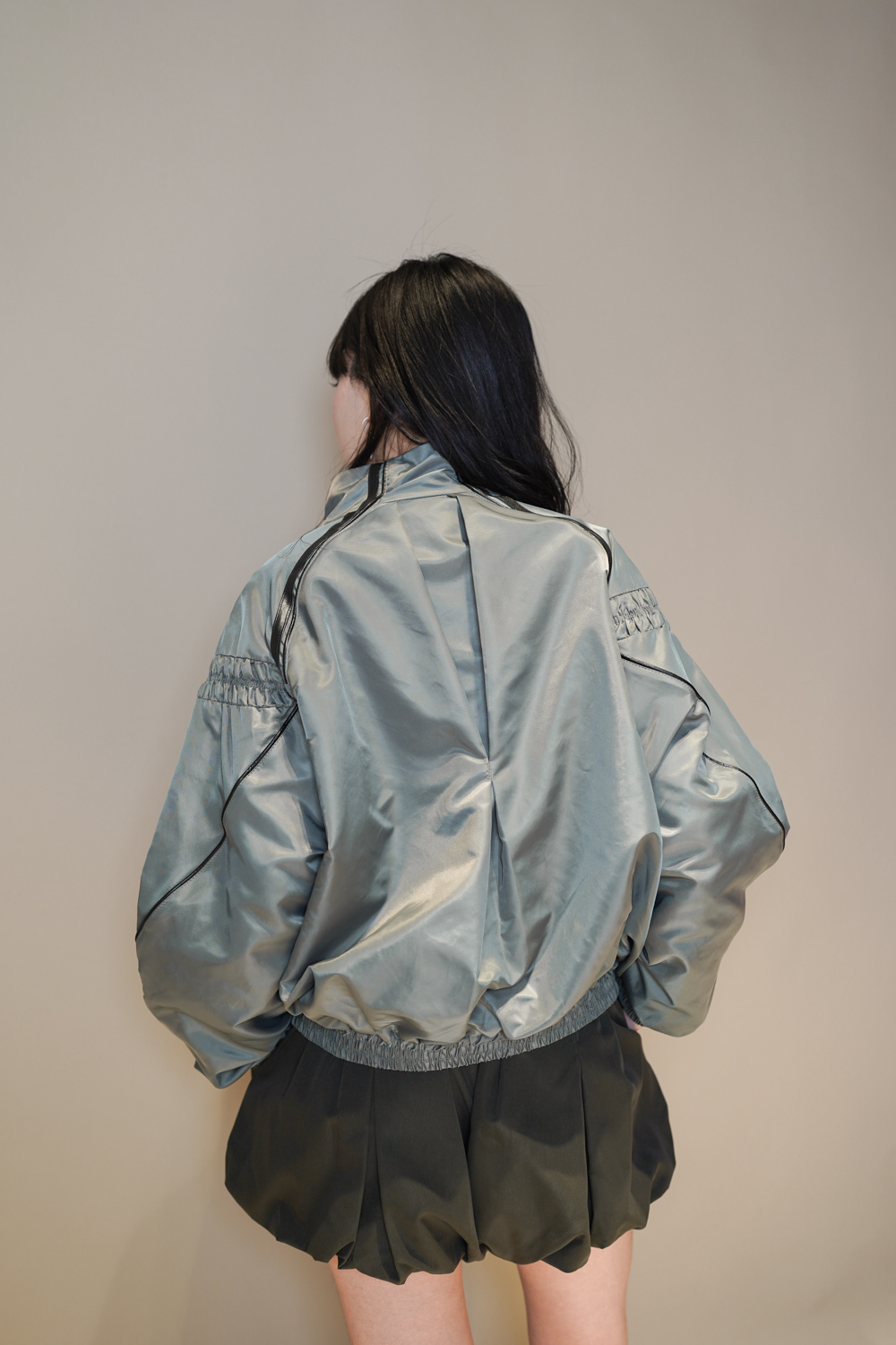 Sport mix ruffle Bomber jacket (GREEN/BLACK)