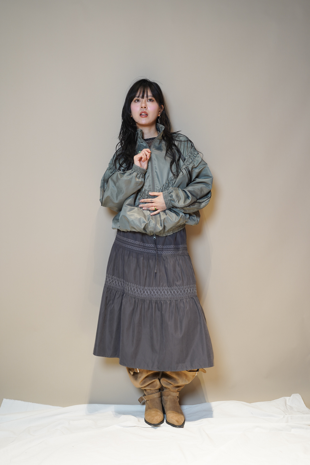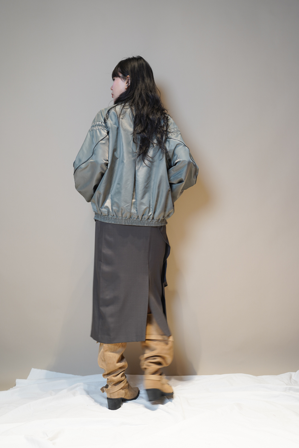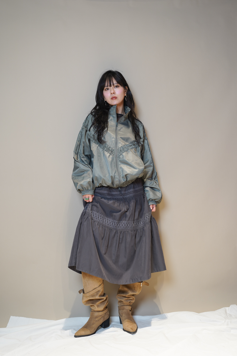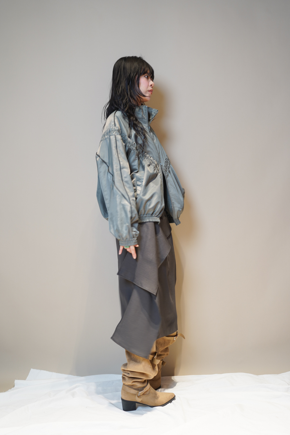 Sport mix ruffle Bomber jacket (GREEN/BLACK)