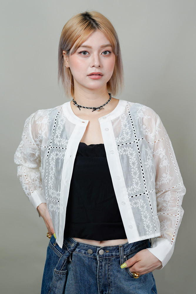 珠光質料 / 氣質之選/ 溫文爾雅 有別於一般blouse設計/可作小外套 /