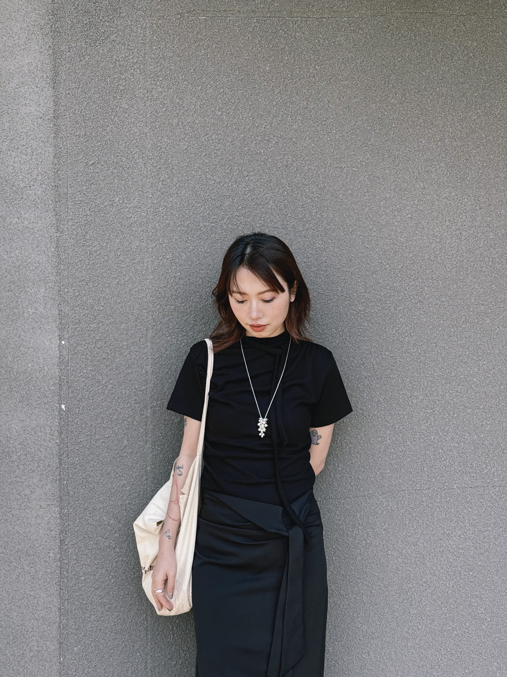 單邊ruffle設計/營造雕塑被布料包裹的效果/展現女性的婀娜多姿