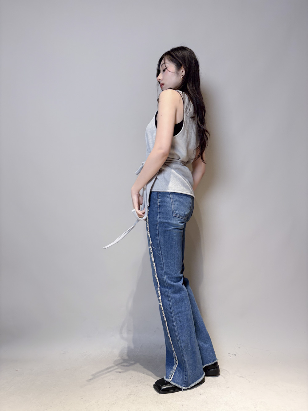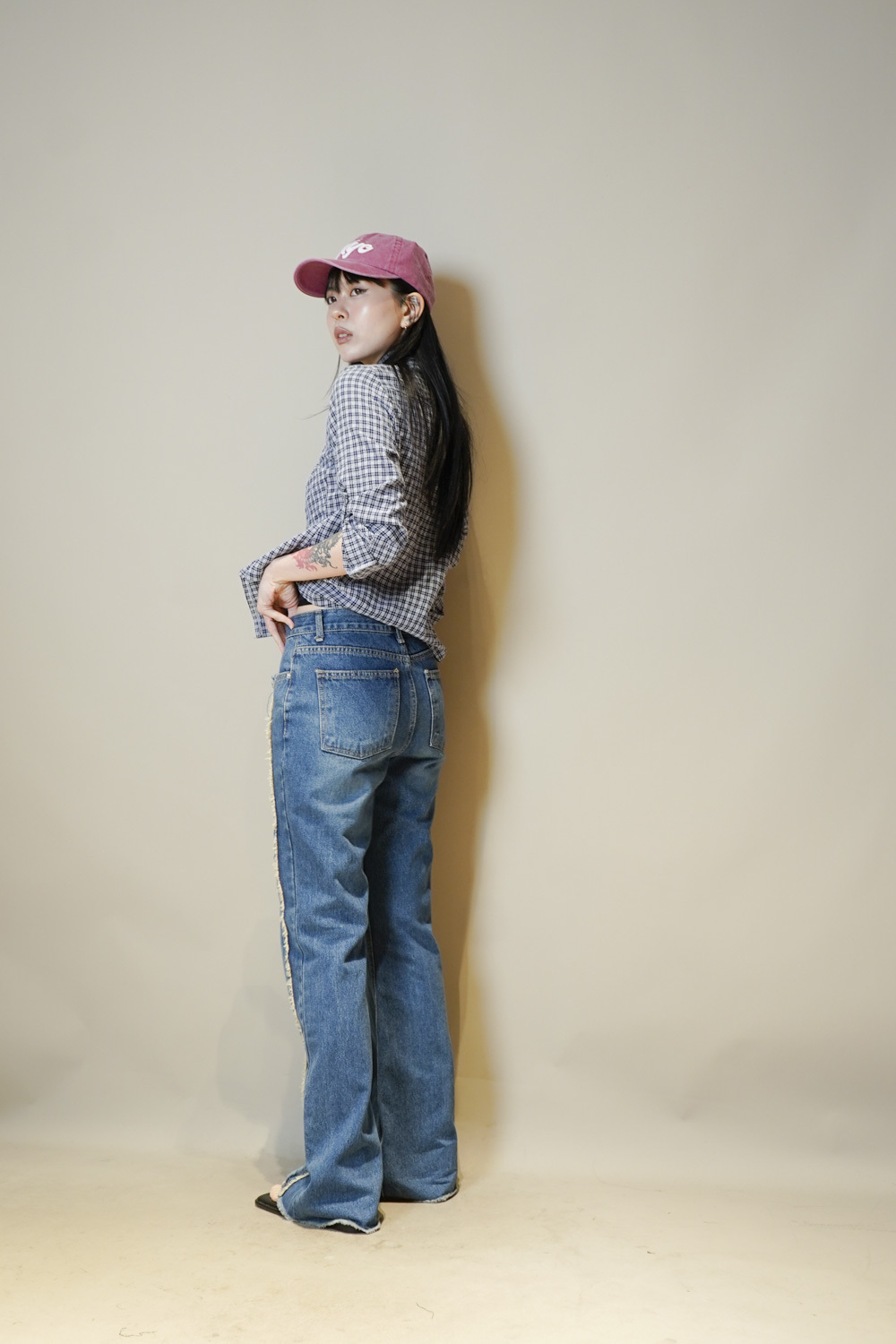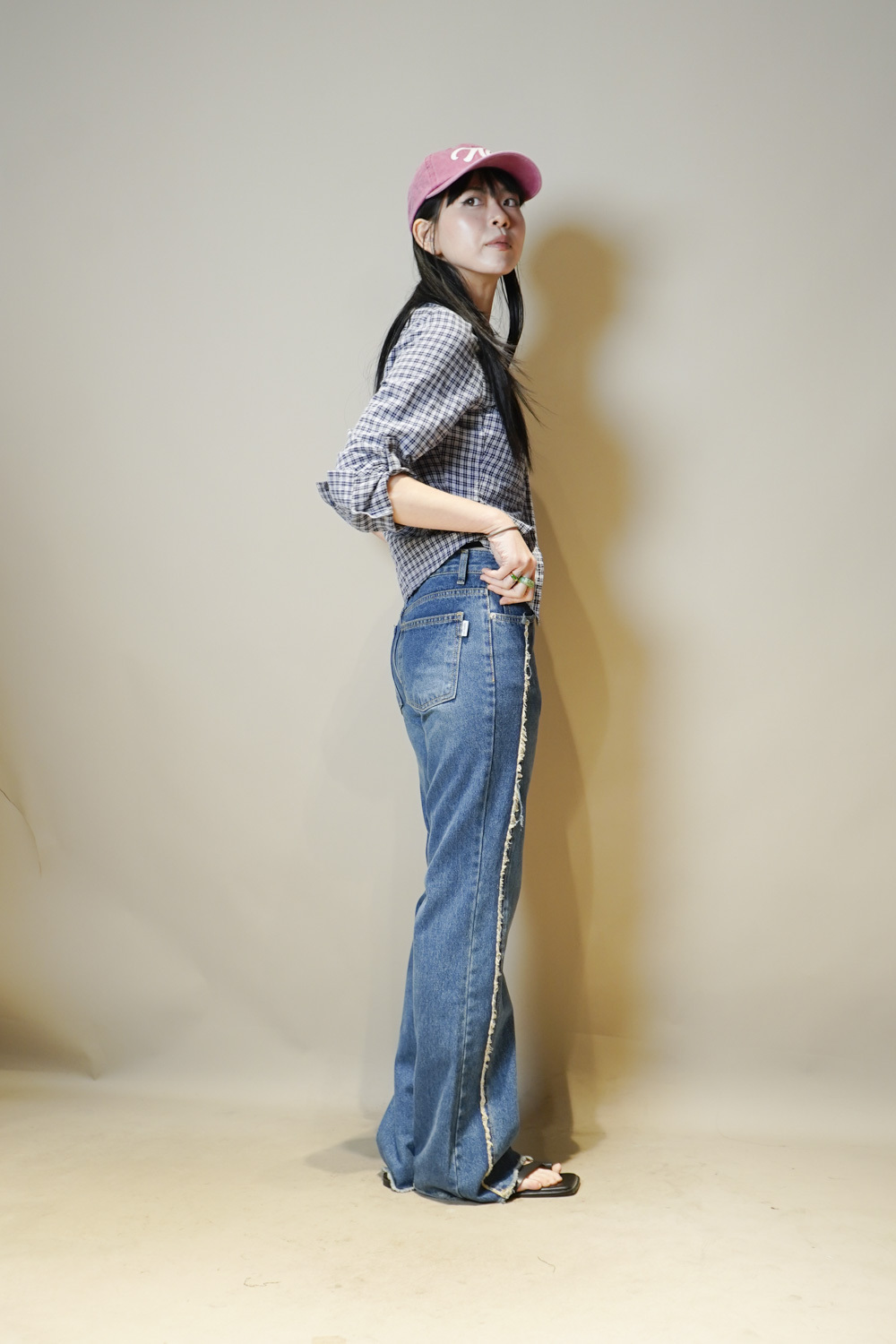 S: Waist: 66cm (26”) / Hip: 91cm (36”) / Rise: 28.5cm / Length: 102.5cm / Thigh: 50cm / Hem: 48cm