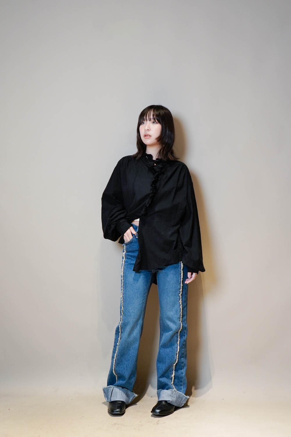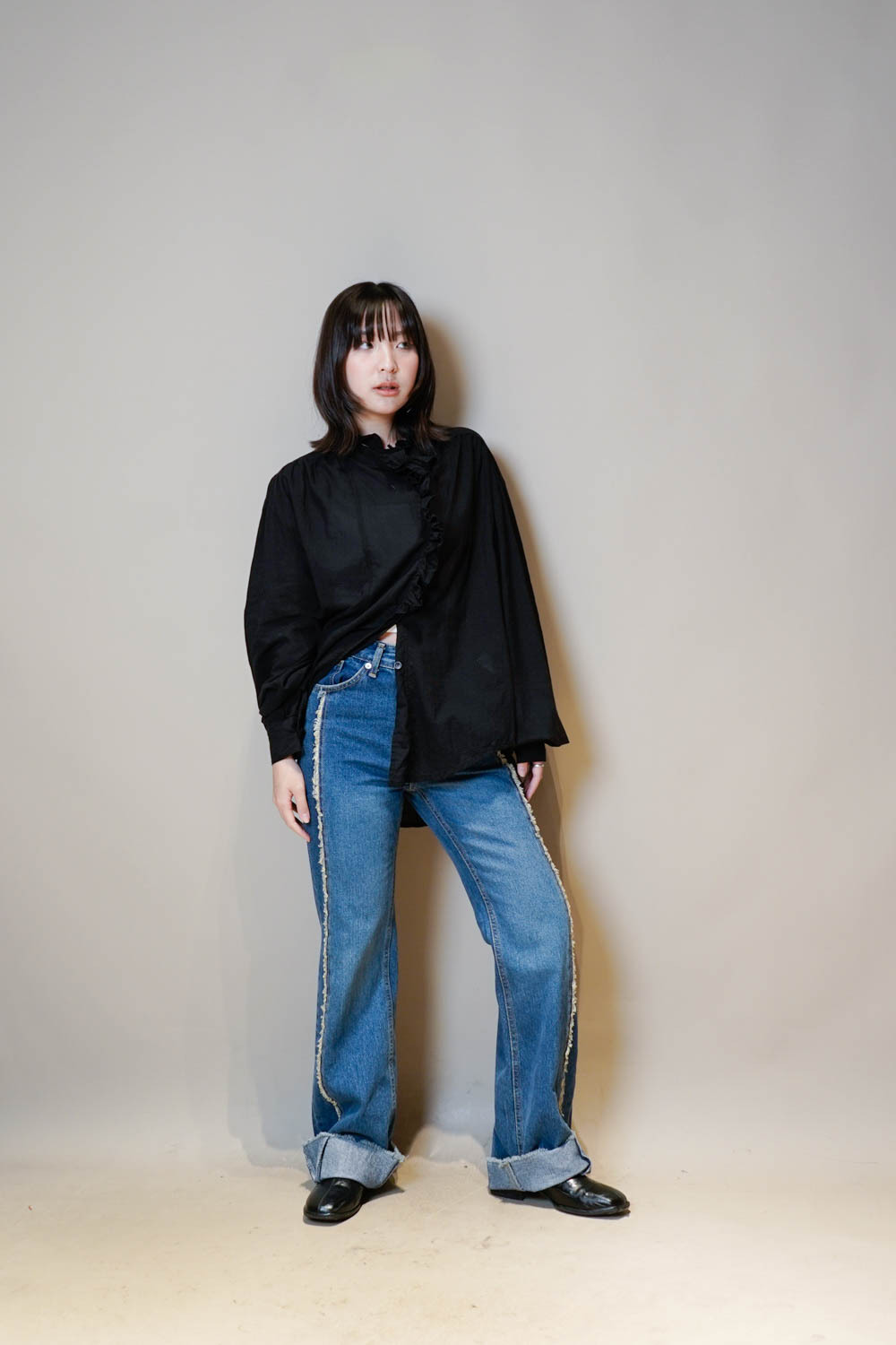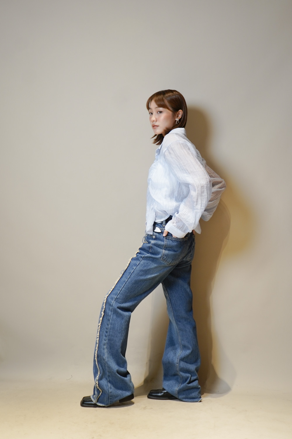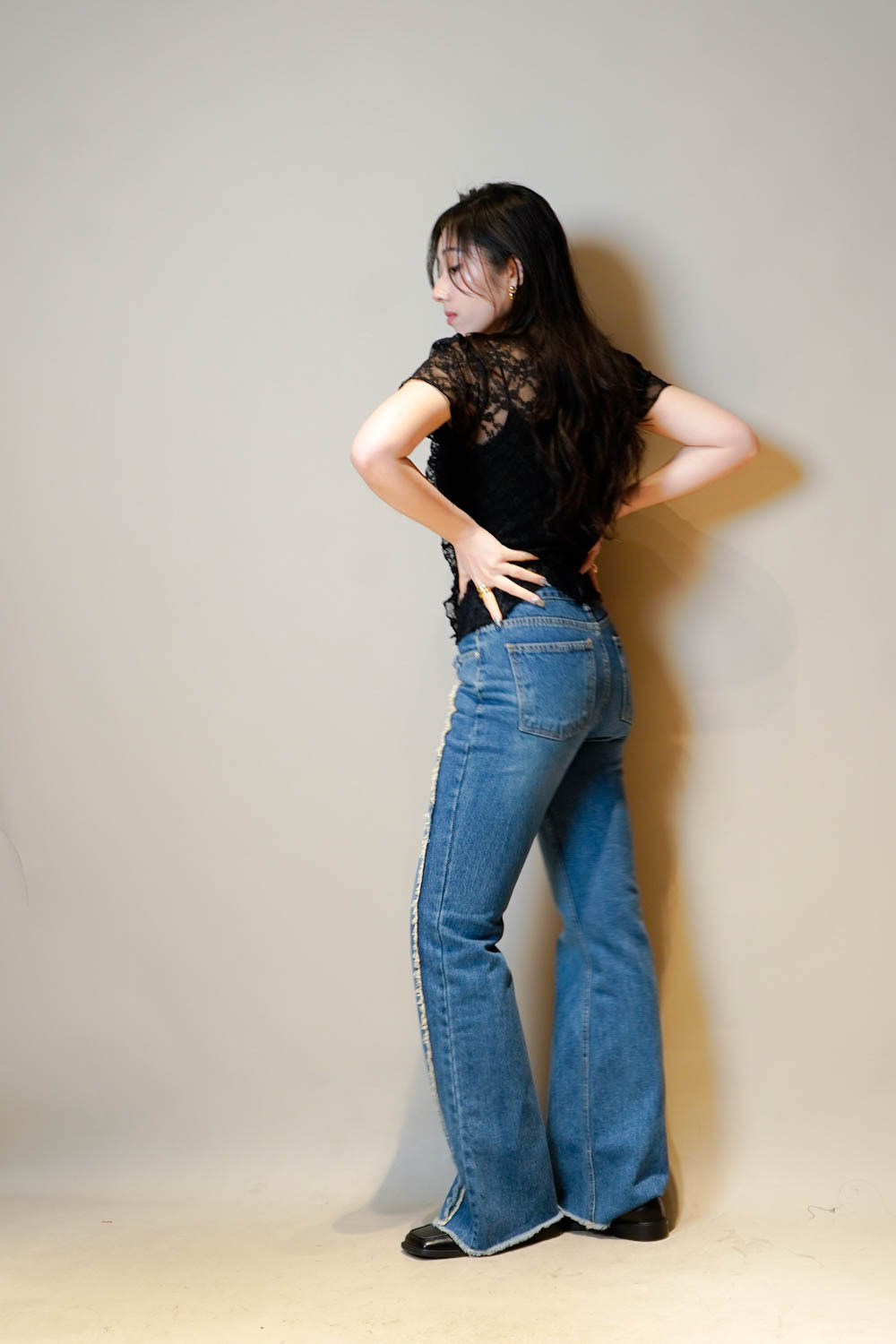 S: Waist: 66cm (26”) / Hip: 91cm (36”) / Rise: 28.5cm / Length: 102.5cm / Thigh: 50cm / Hem: 48cm