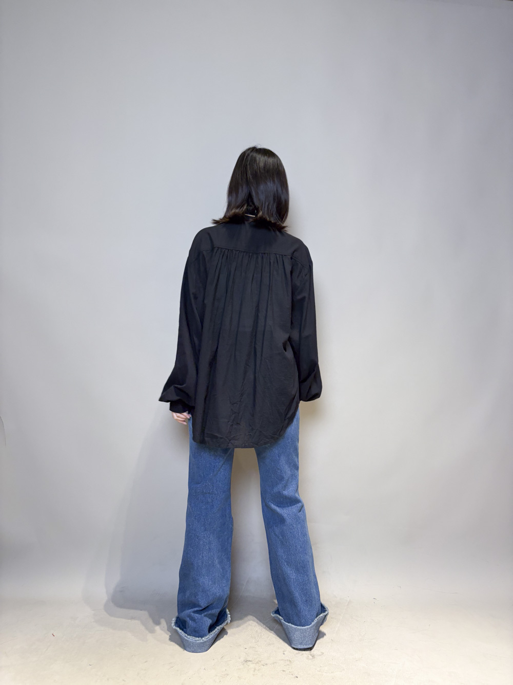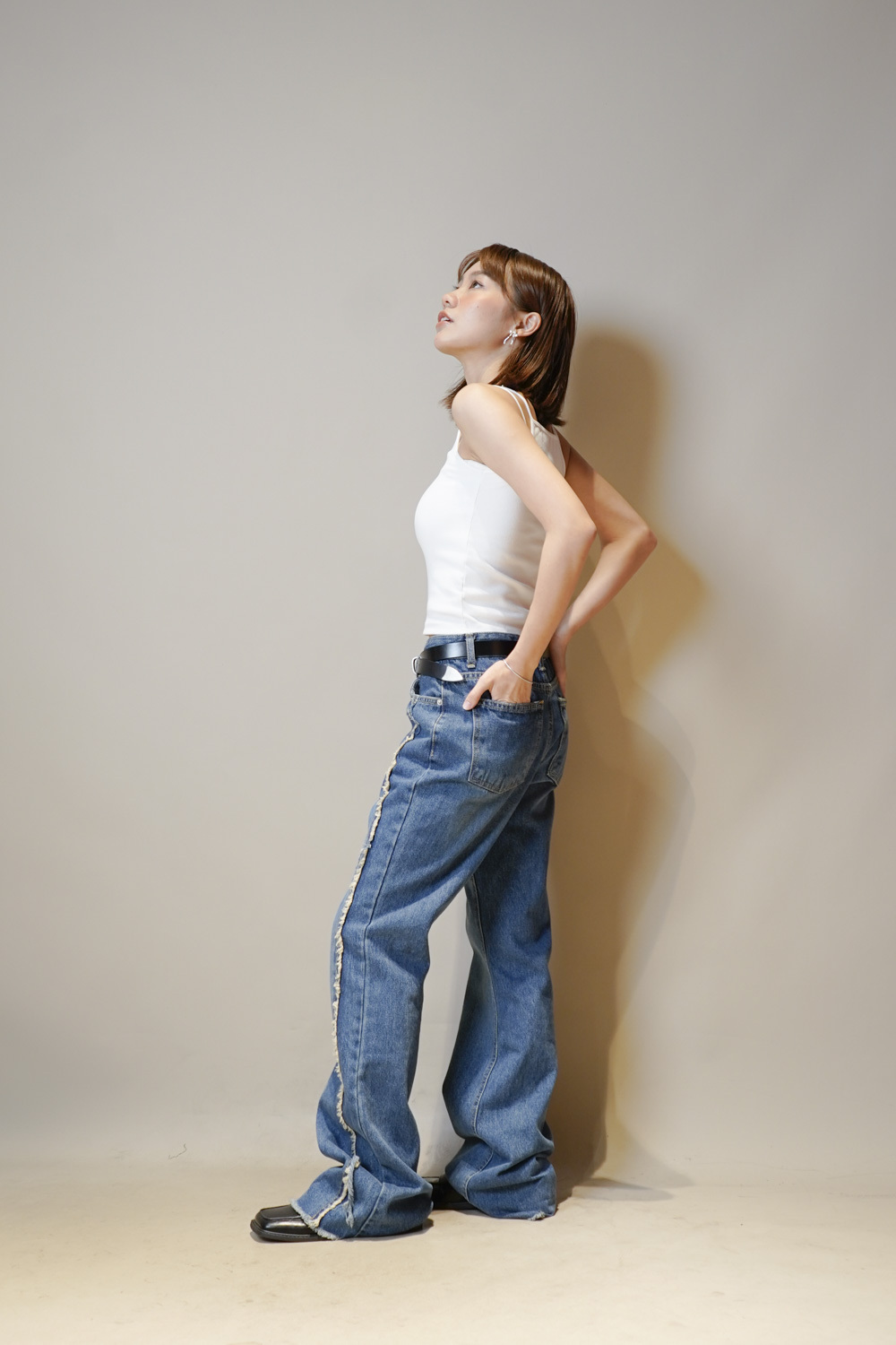M: Waist: 68cm (27”) / Hip: 94cm (37”) / Rise: 29.5cm / Length: 105.5cm / Thigh: 54cm / Hem: 50cm