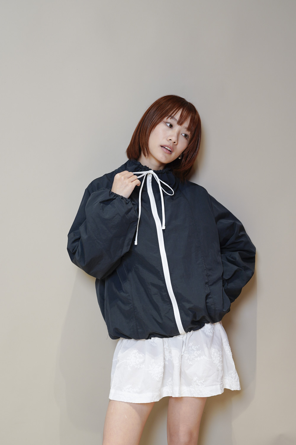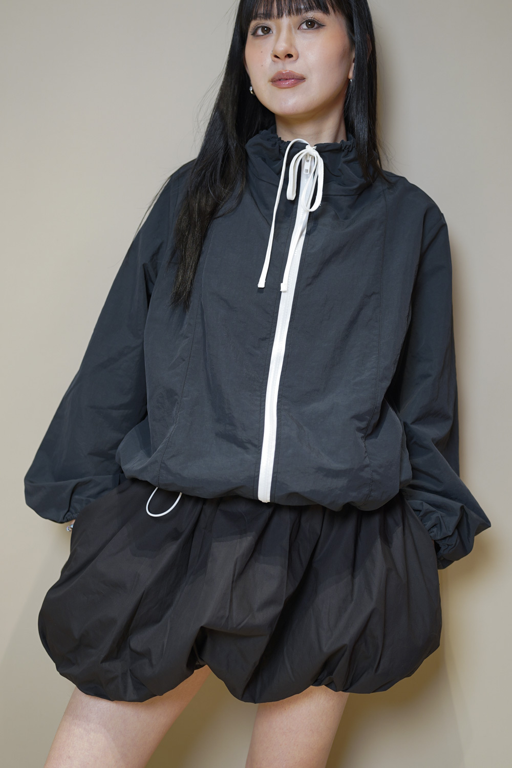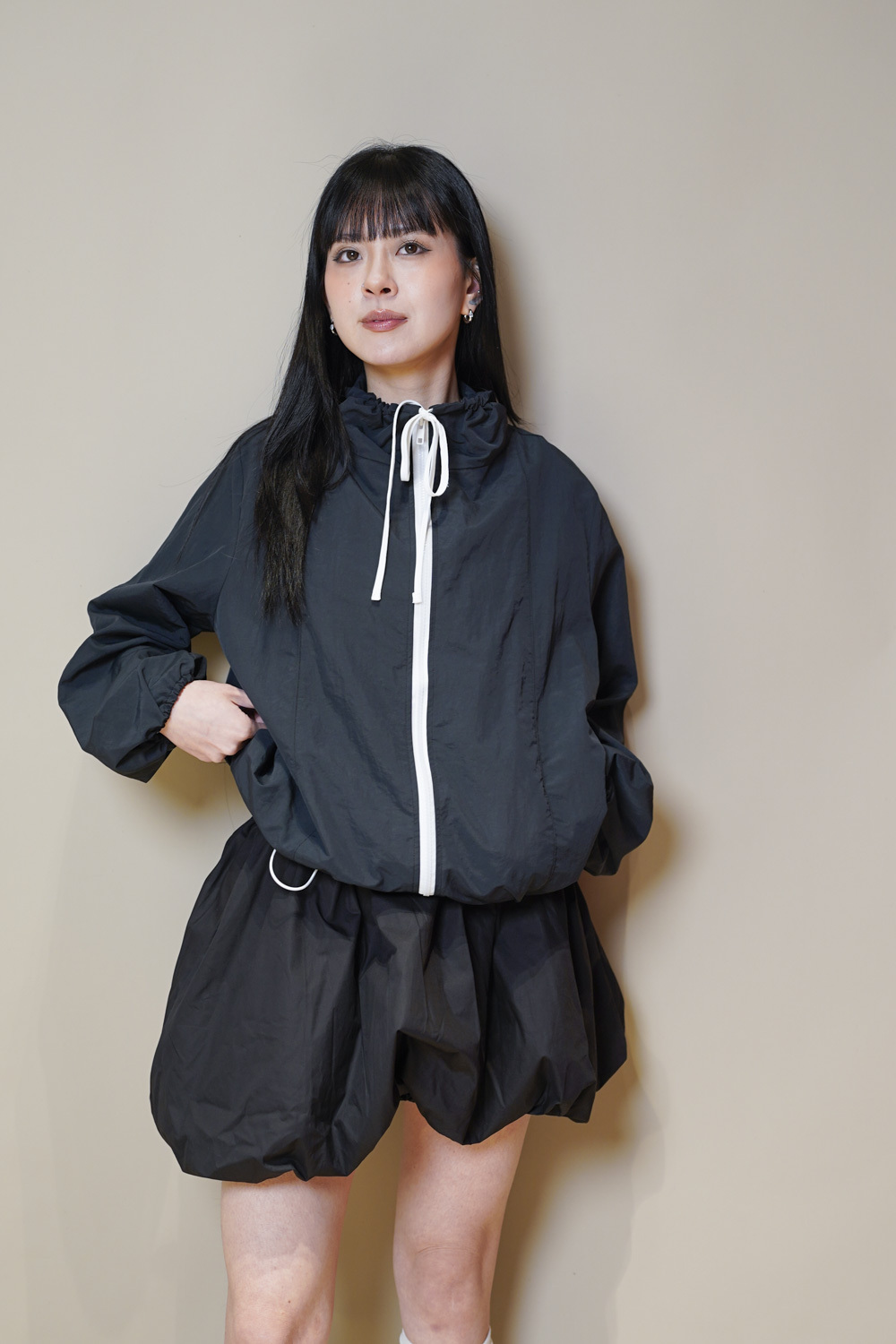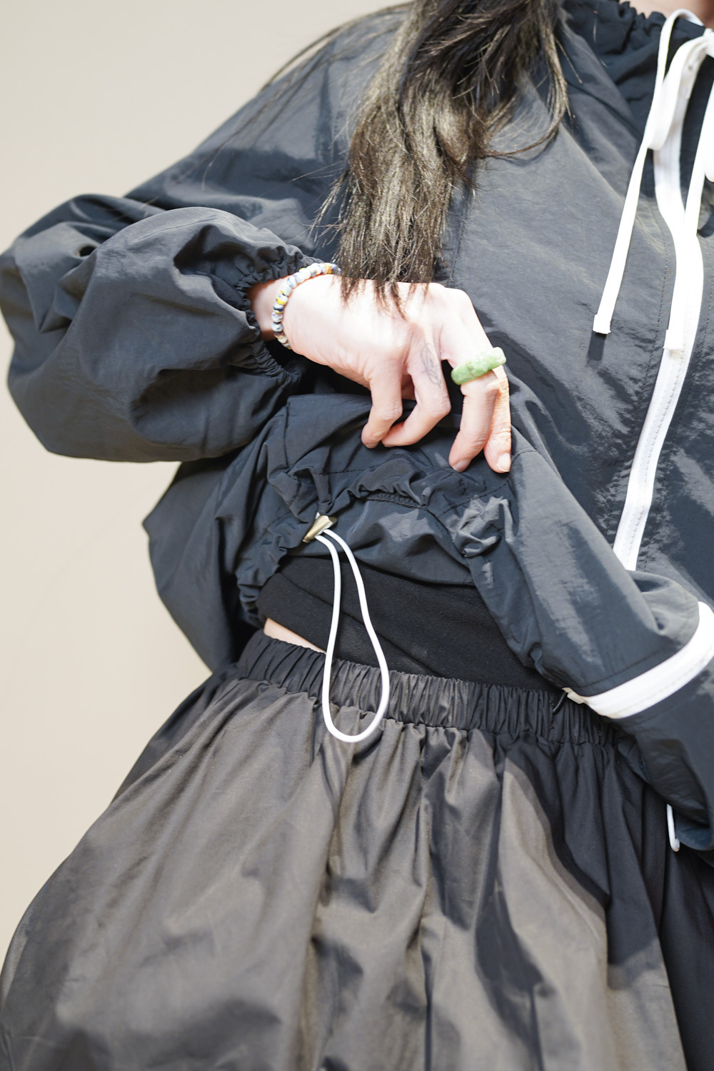 領口及衣擺都有束帶調節鬆緊/