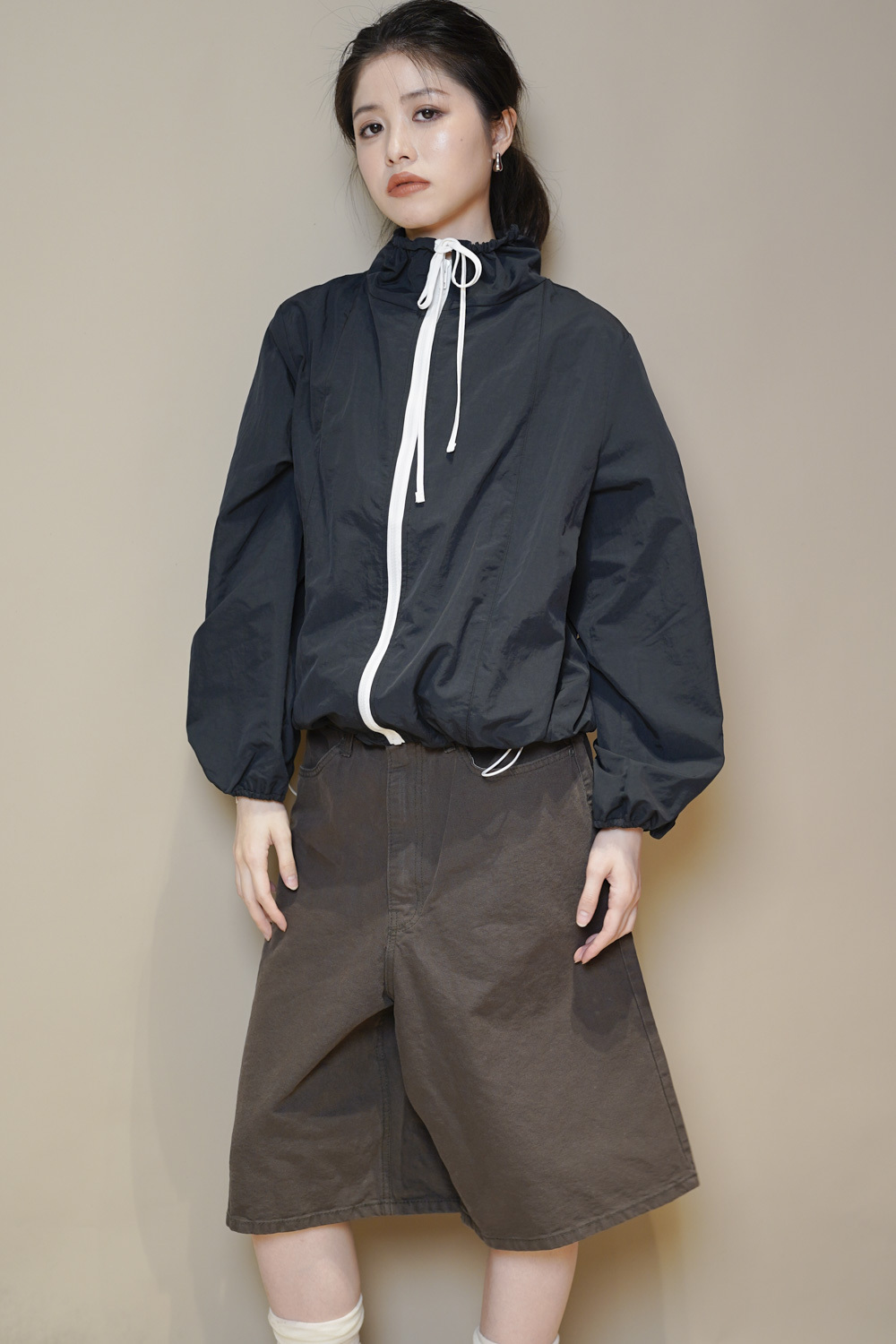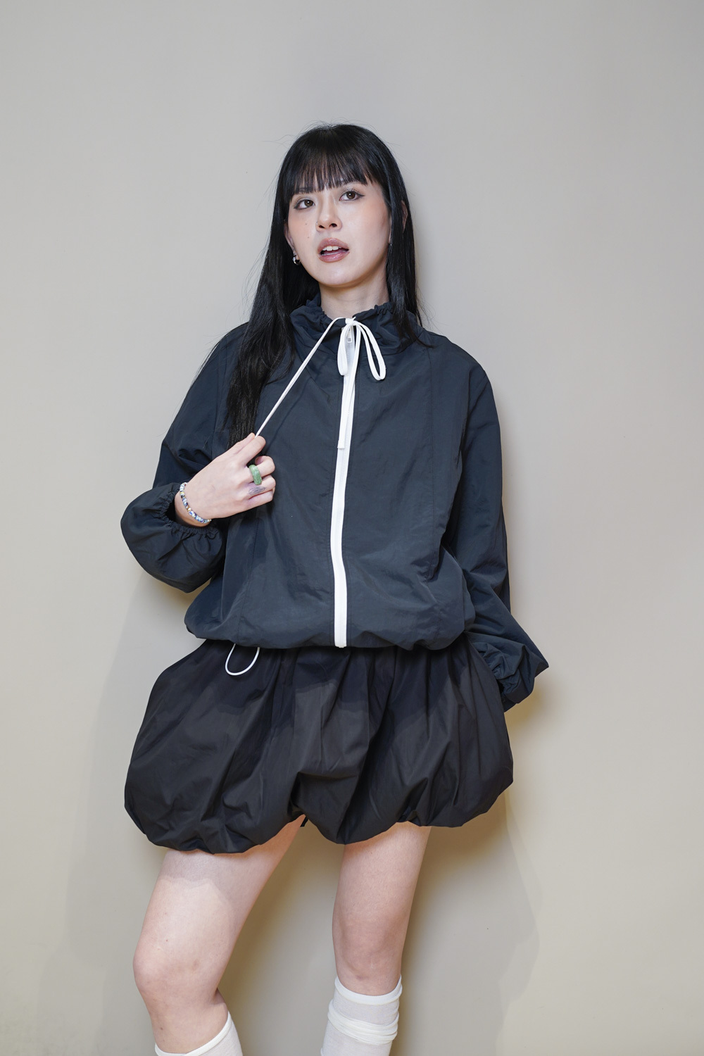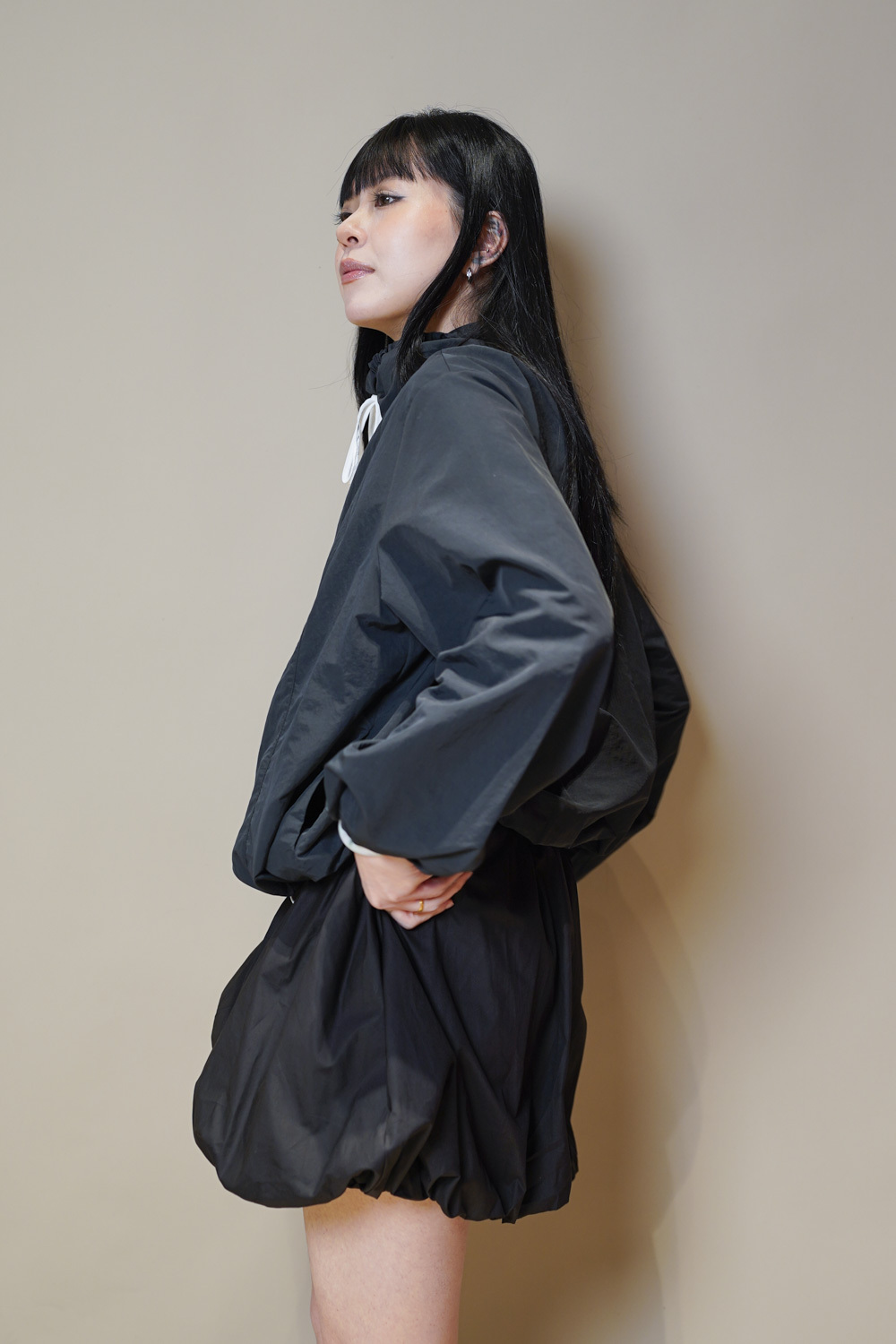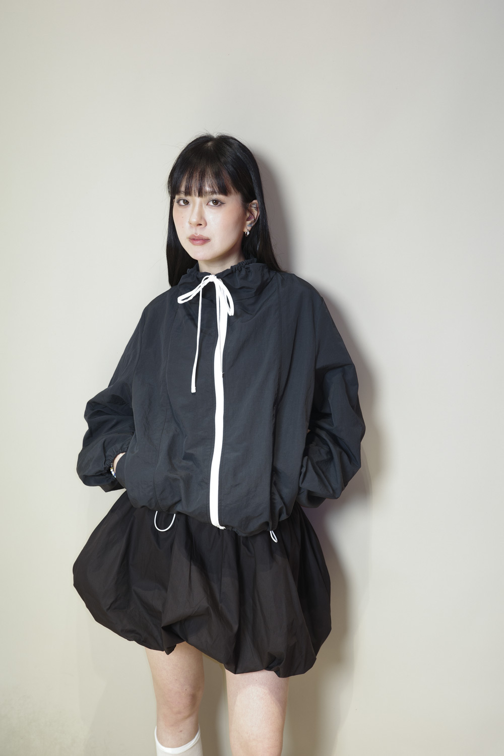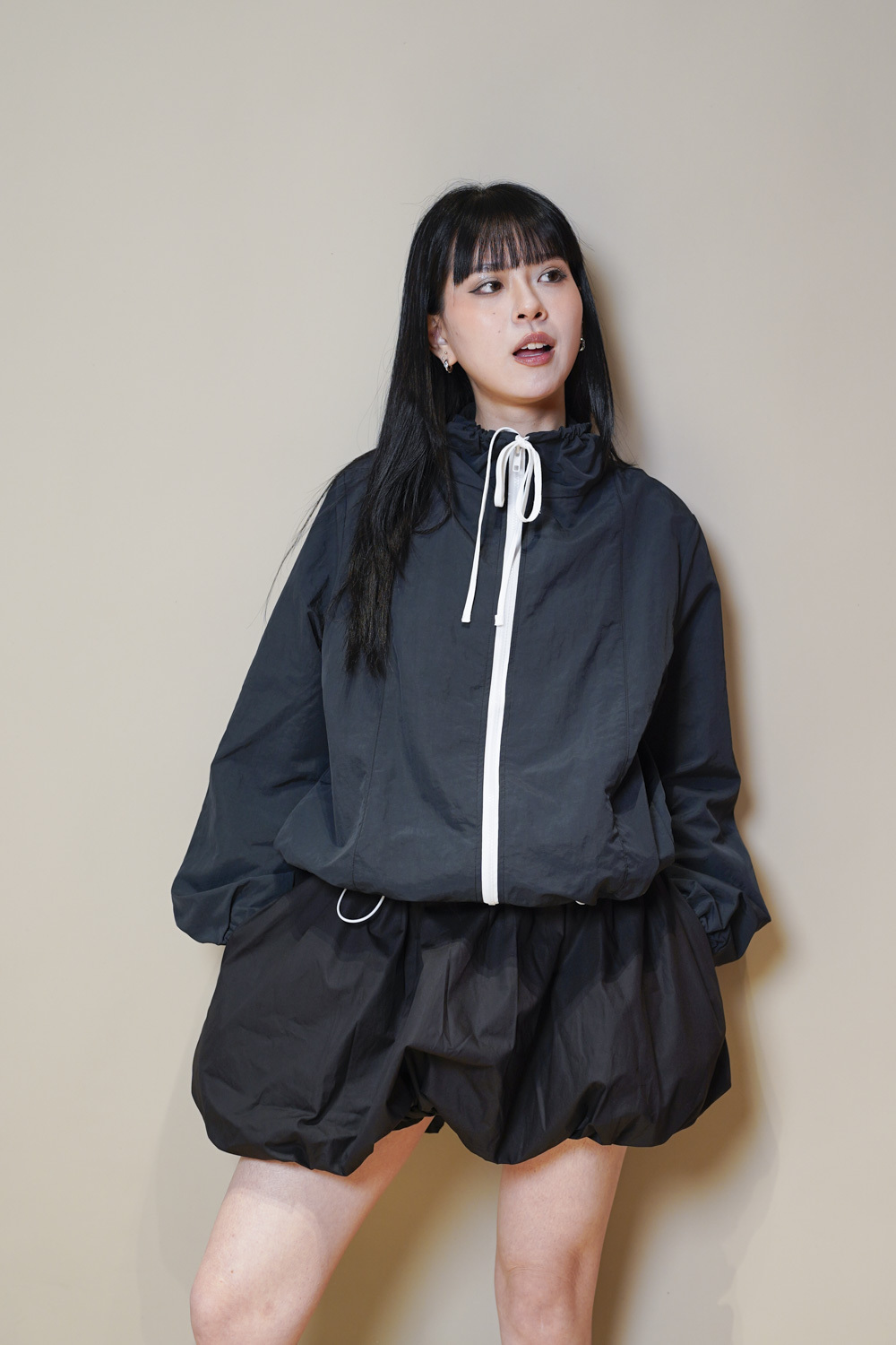 領口及衣擺都有束帶調節鬆緊/
