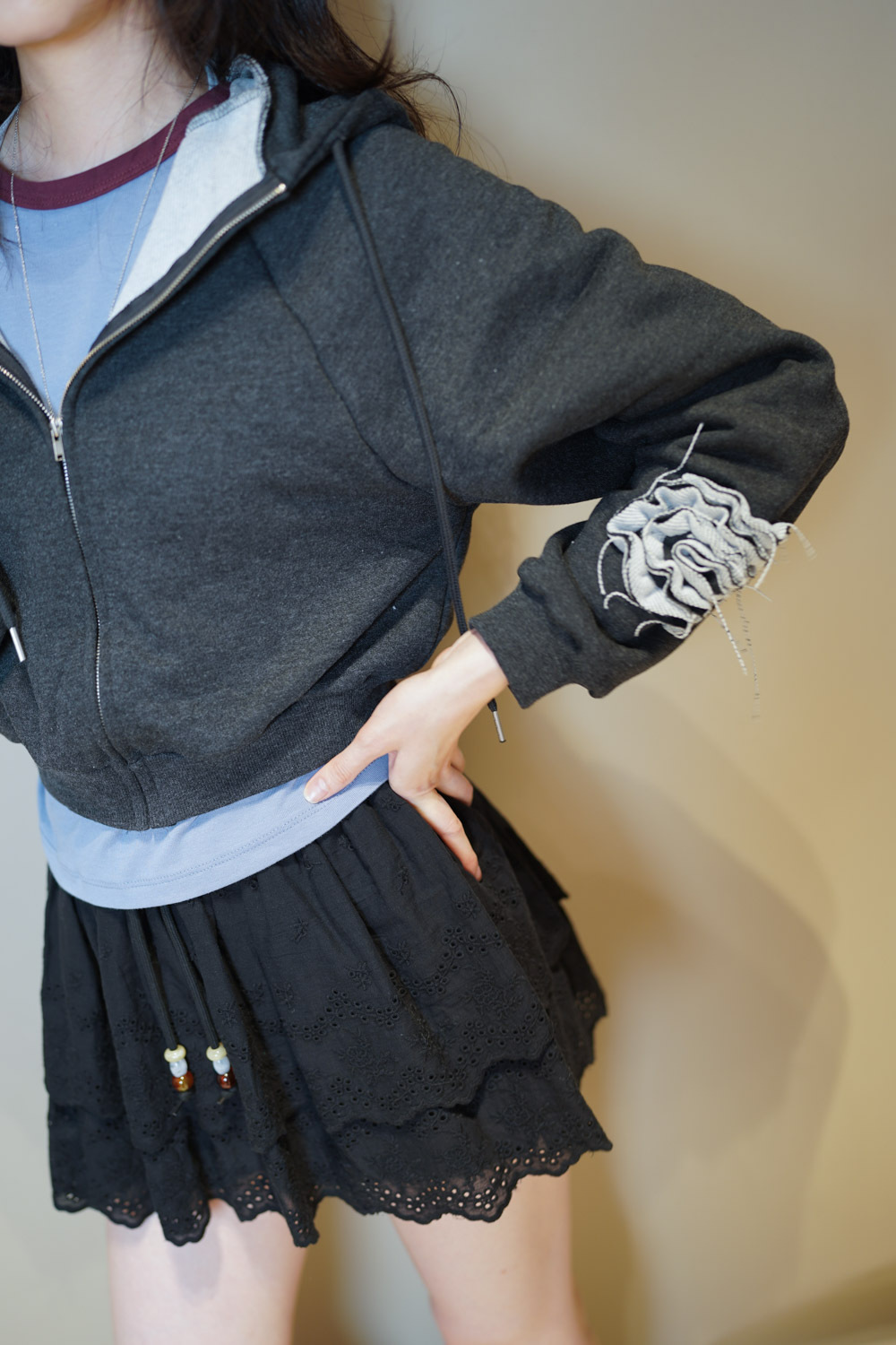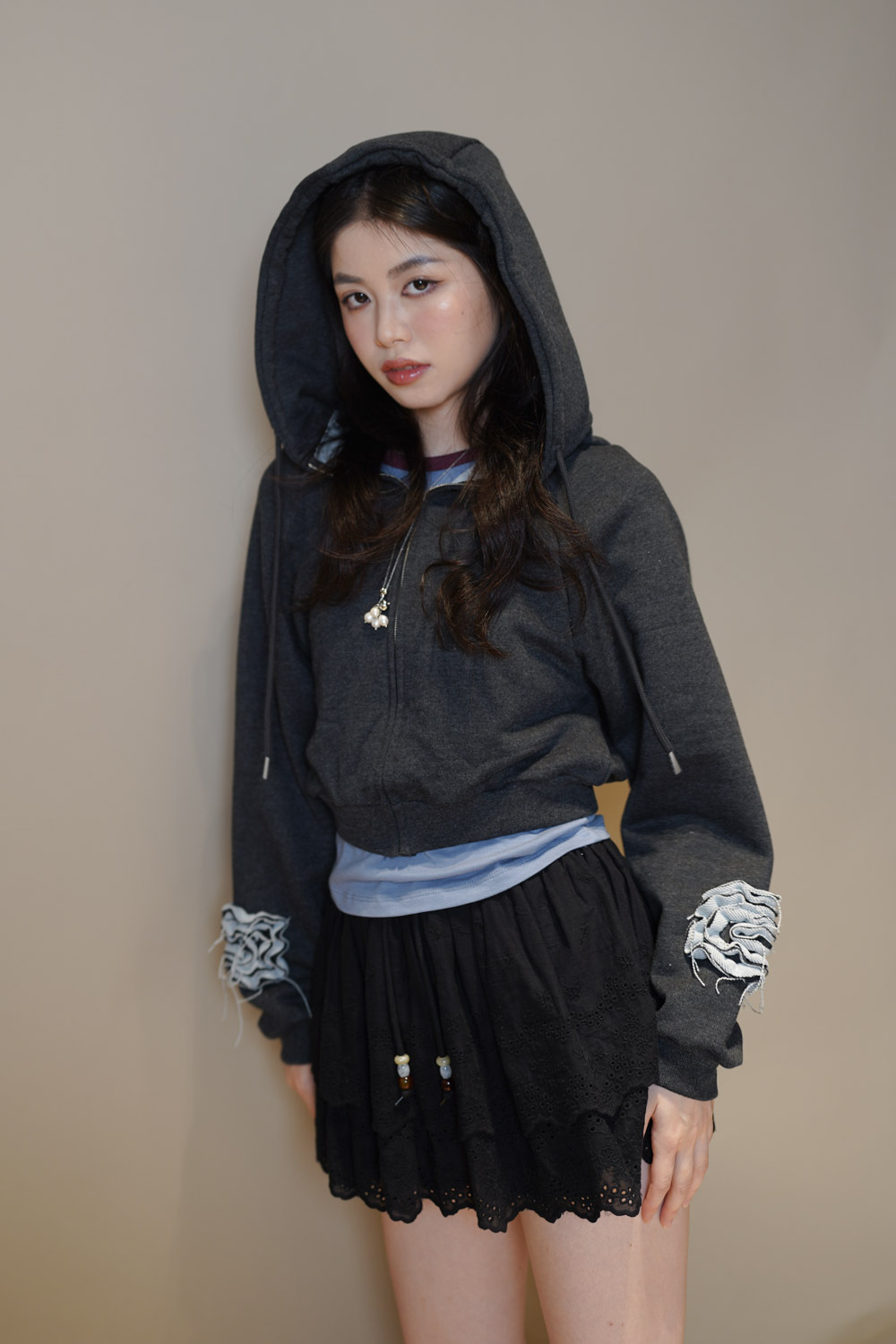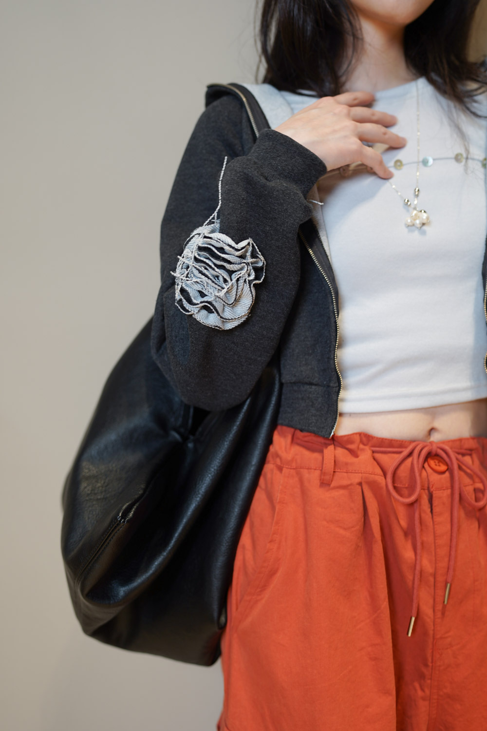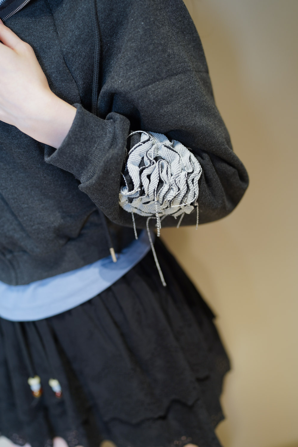 stranger room made: 3D flower sleeve zip up (WHITE/PURPLE/DARK GREY)