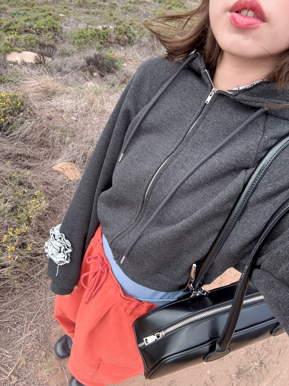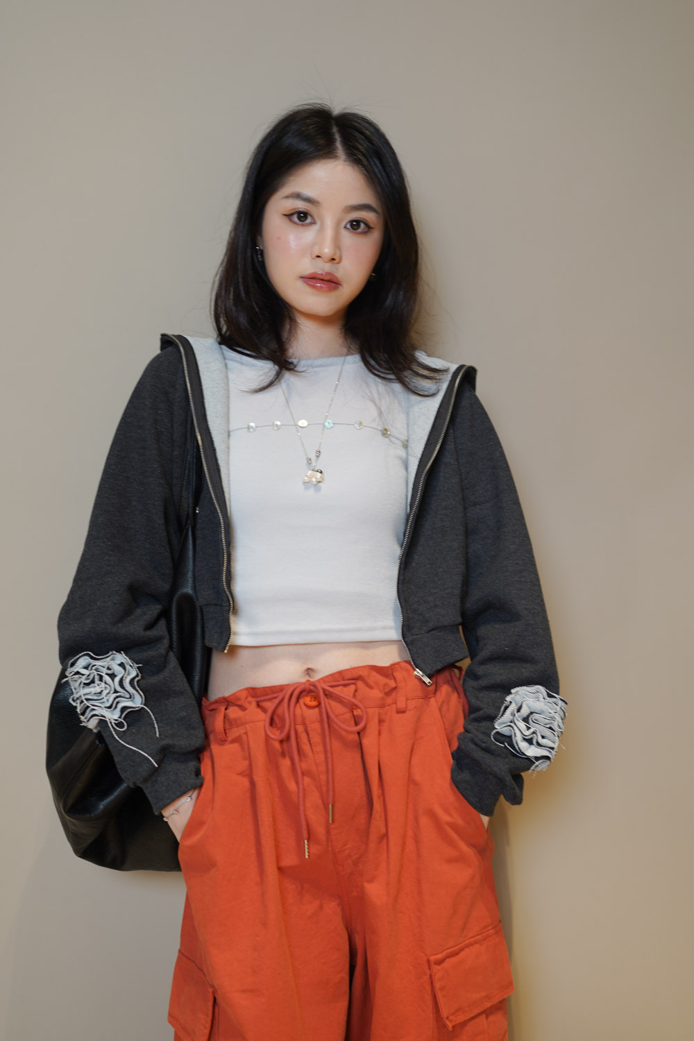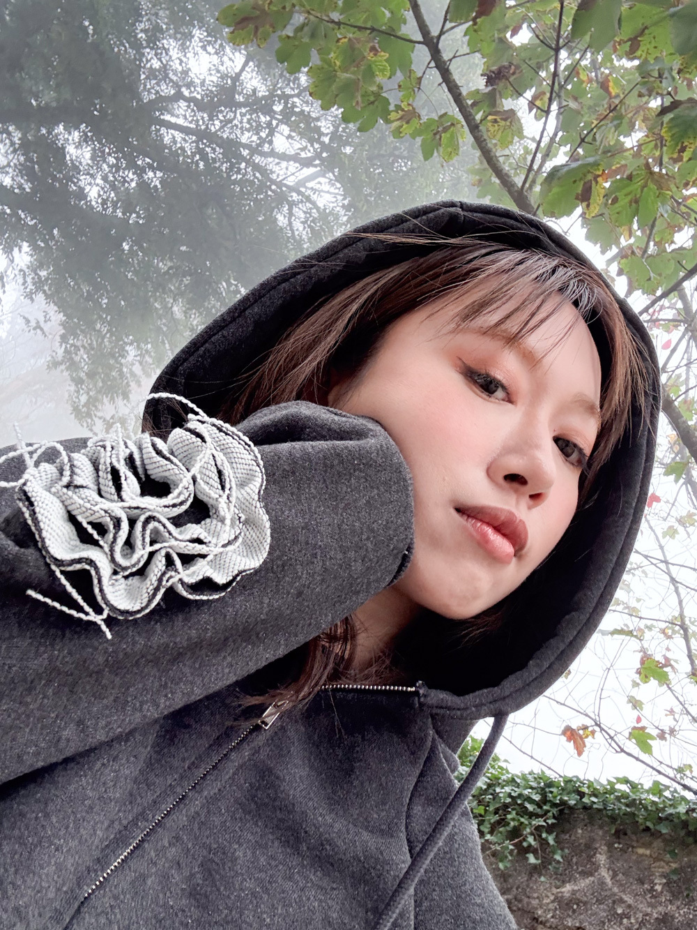stranger room made: 3D flower sleeve zip up (WHITE/PURPLE/DARK GREY)