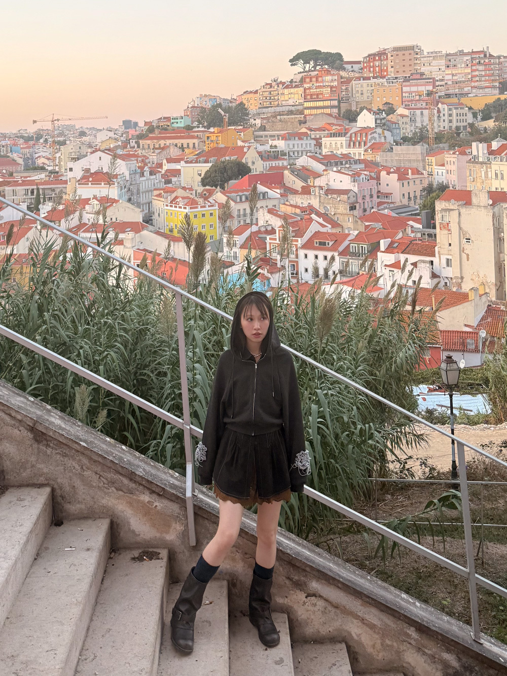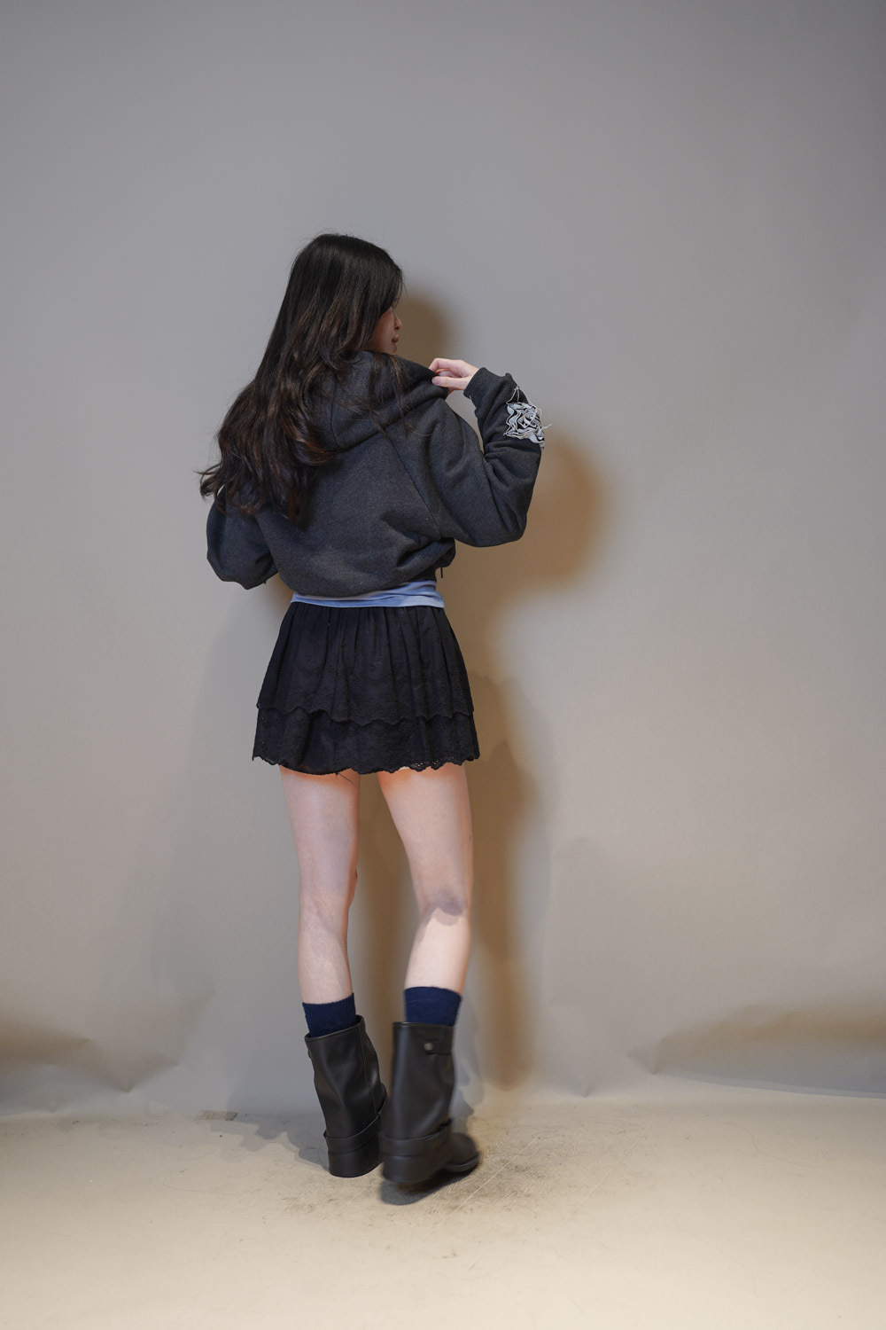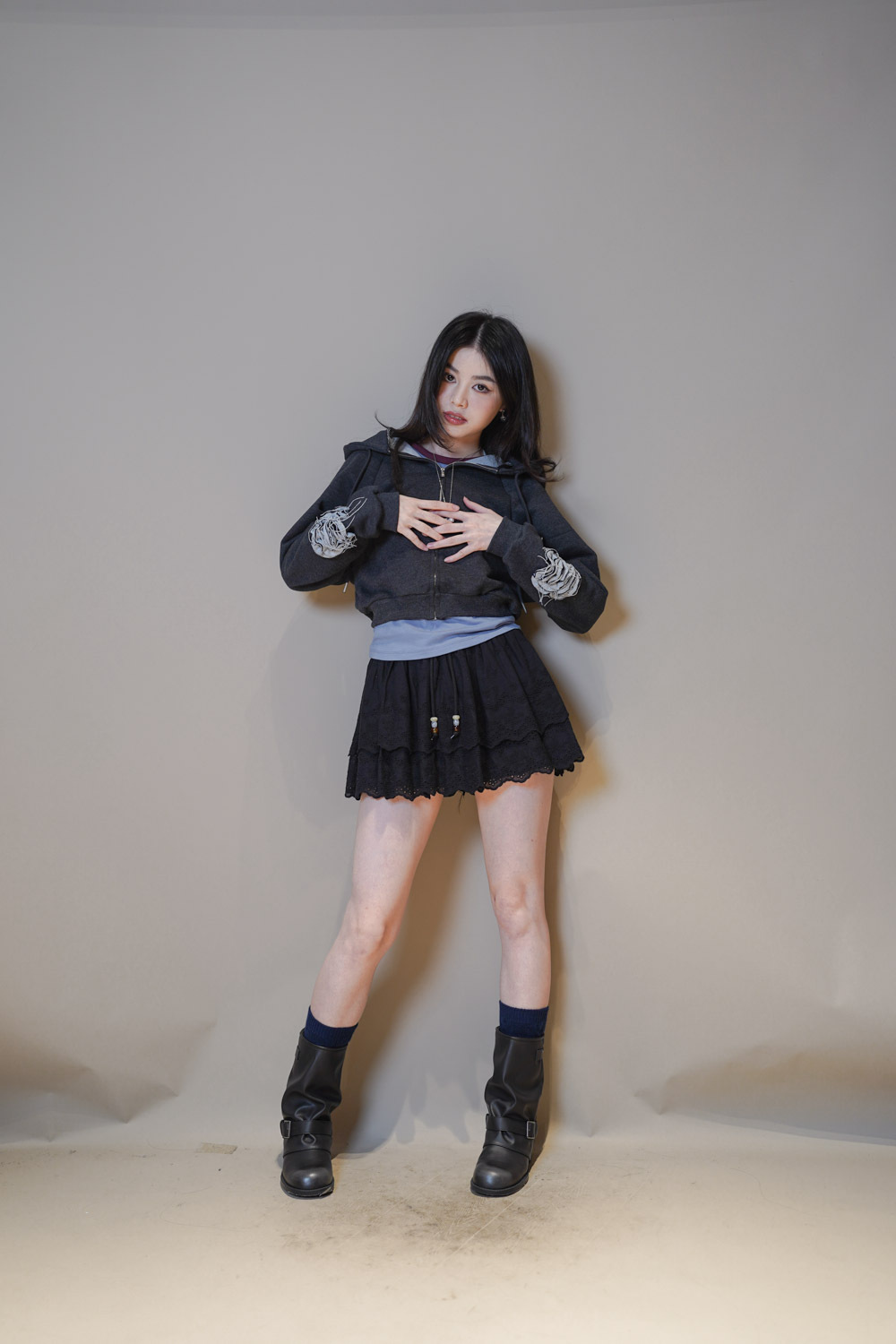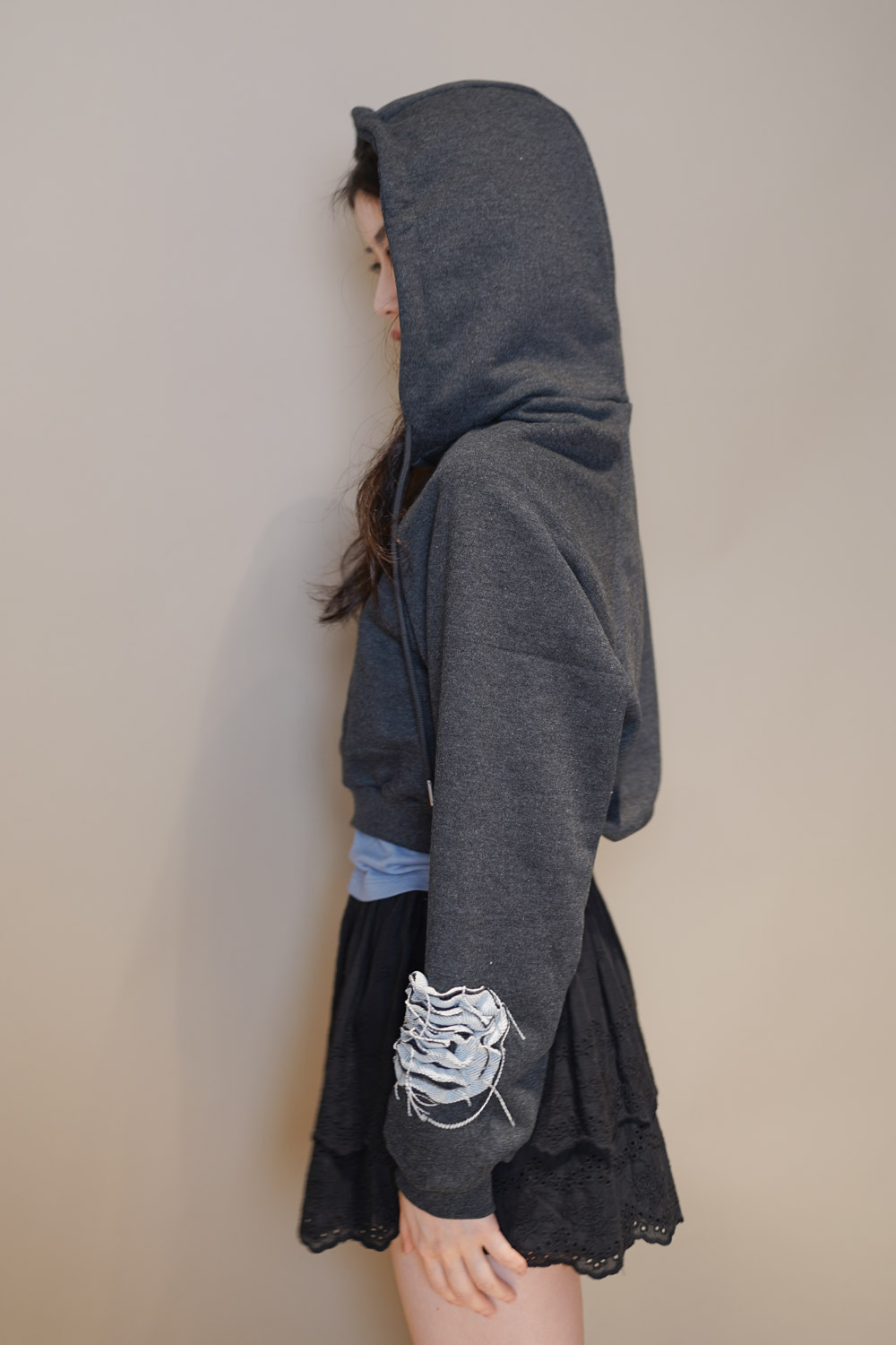 stranger room made: 3D flower sleeve zip up (WHITE/PURPLE/DARK GREY)