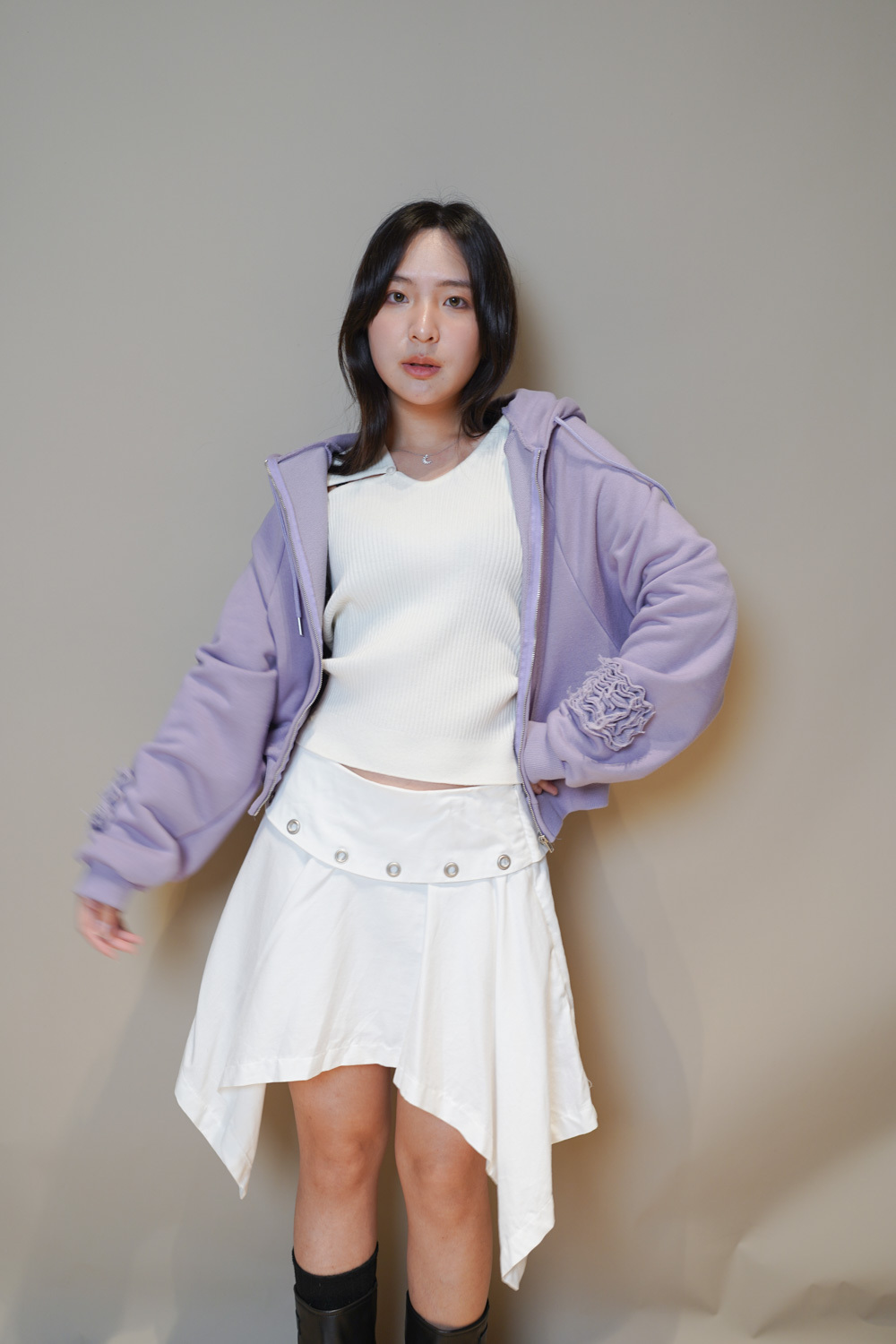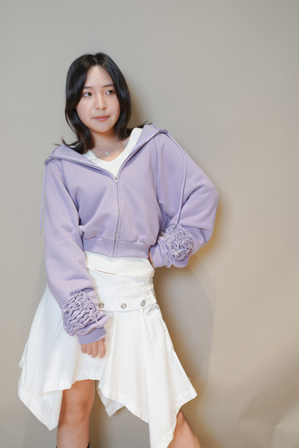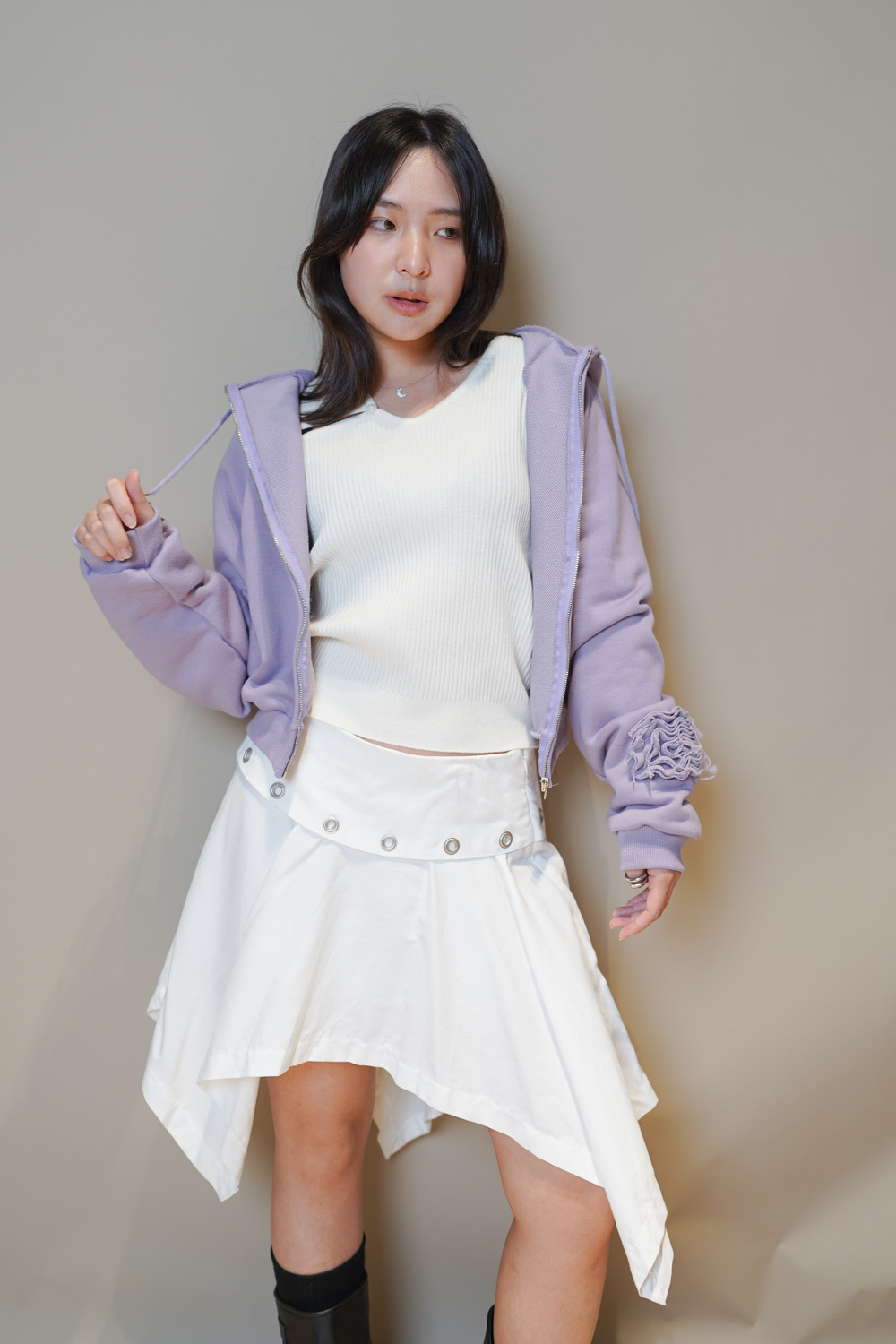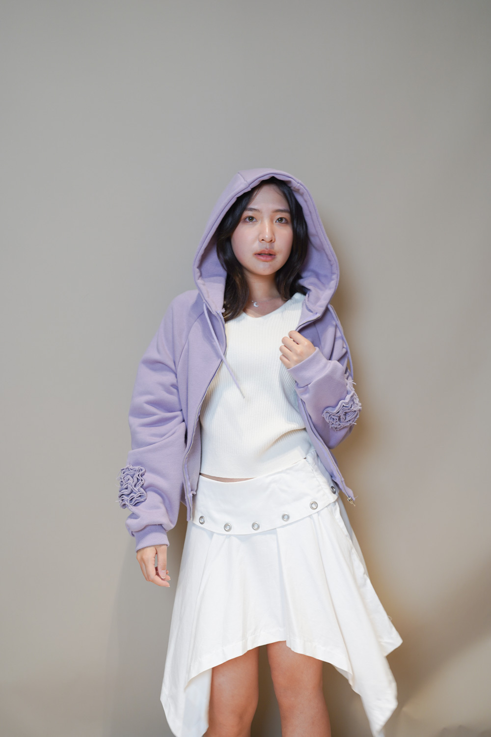 stranger room made: 3D flower sleeve zip up (WHITE/PURPLE/DARK GREY)