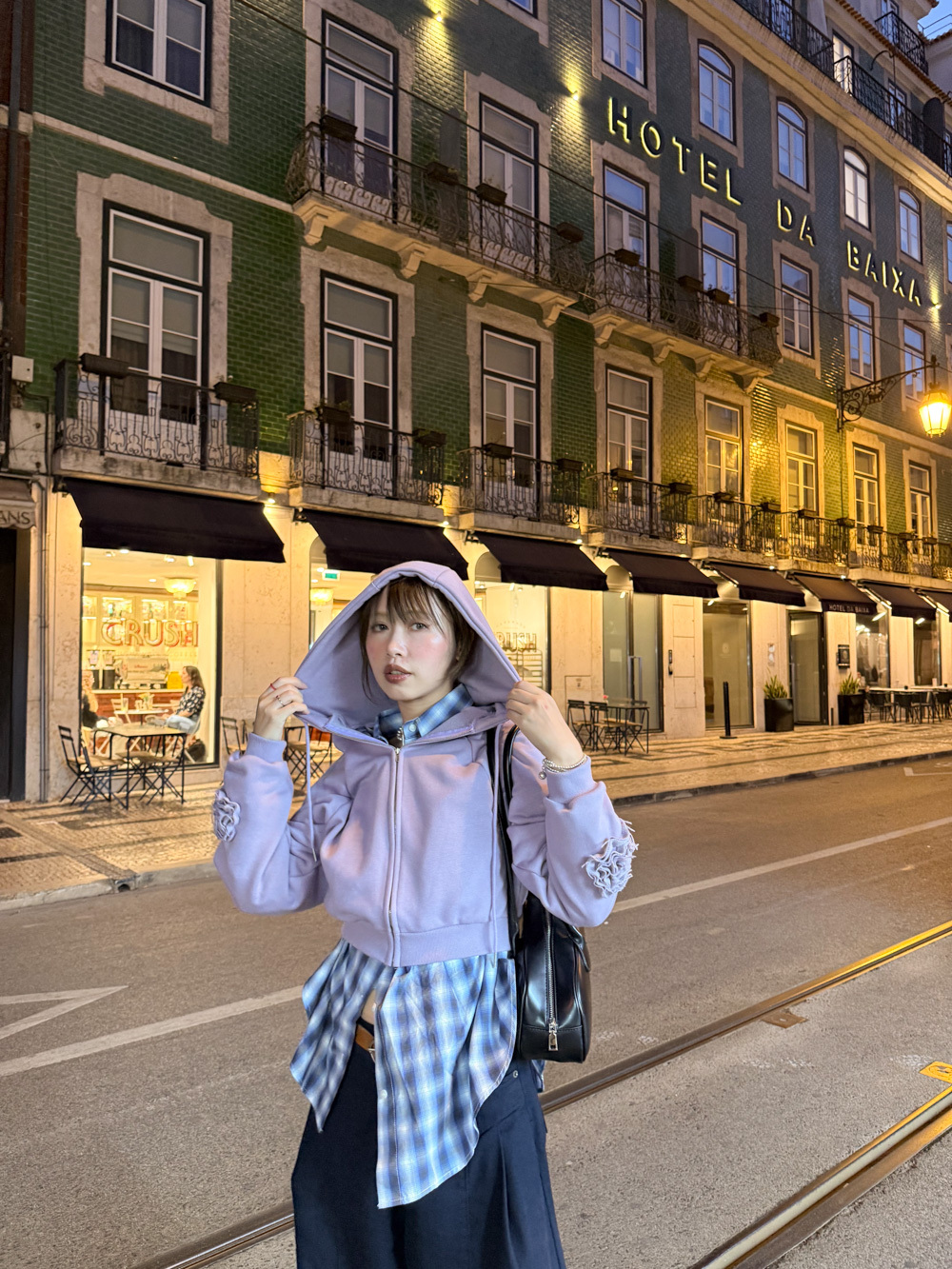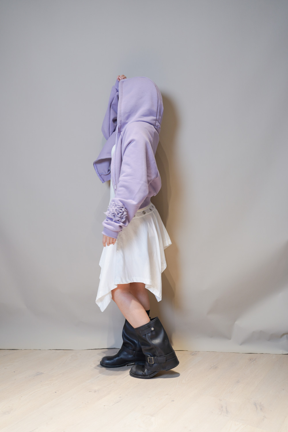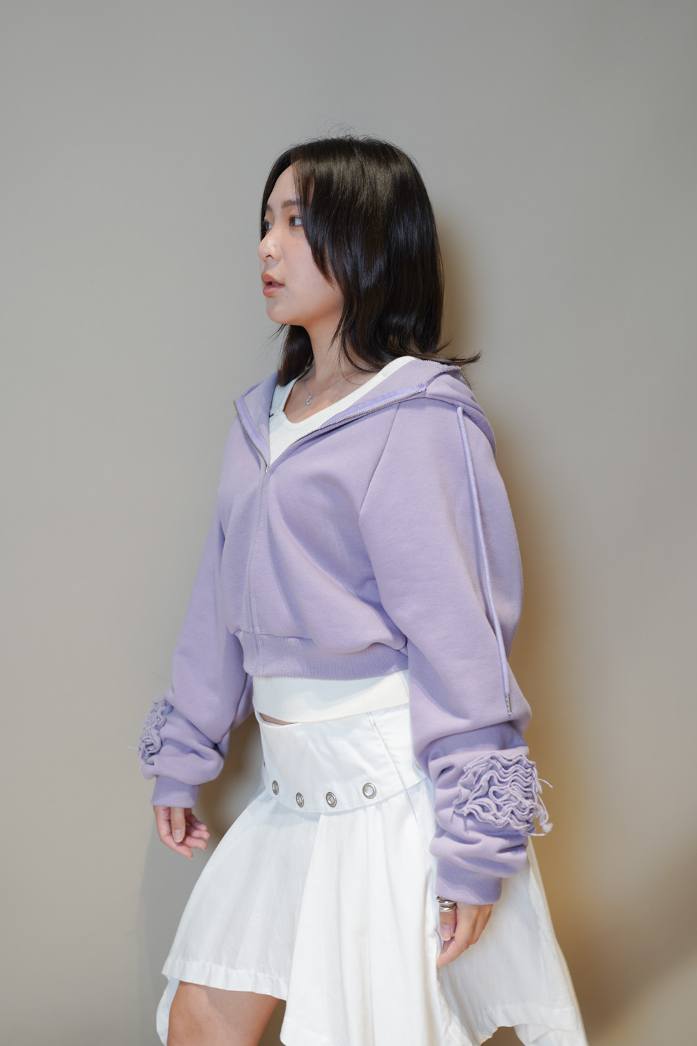 stranger room made: 3D flower sleeve zip up (WHITE/PURPLE/DARK GREY)