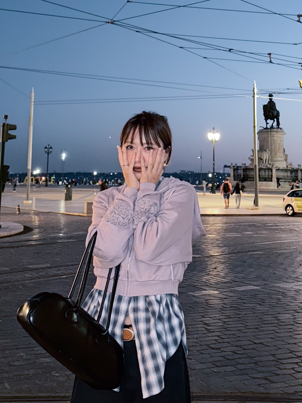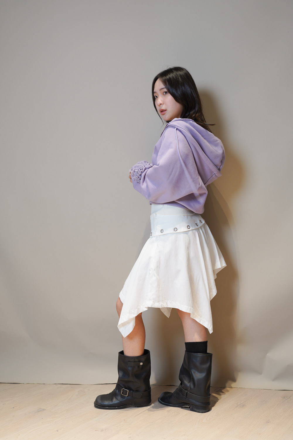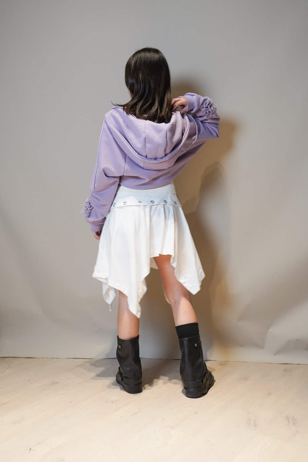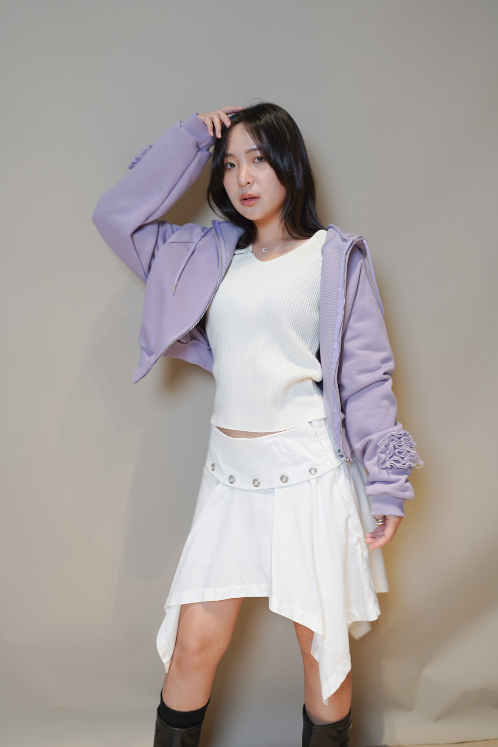 stranger room made: 3D flower sleeve zip up (WHITE/PURPLE/DARK GREY)