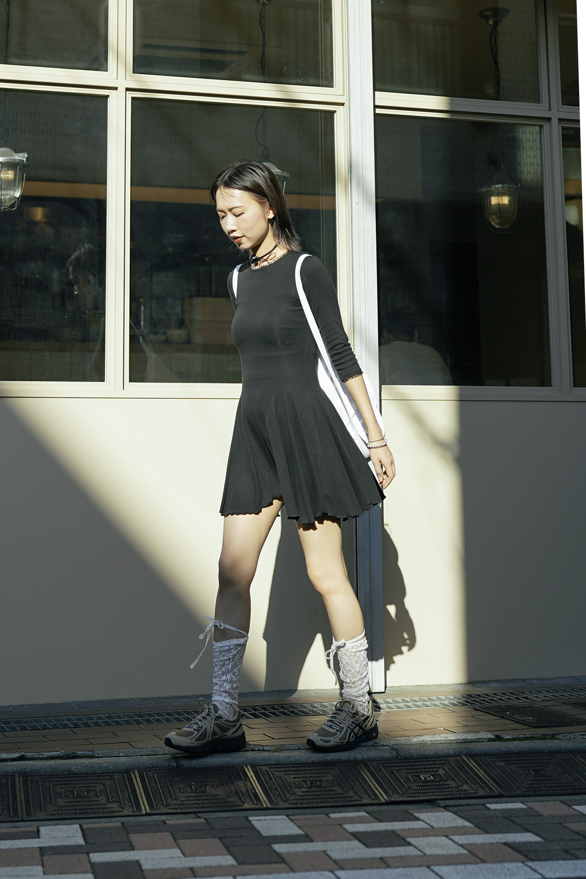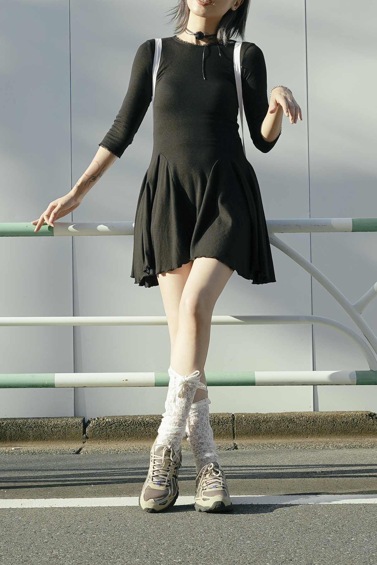 Stranger room made: glossy lace ballet dream dress (GREY/BLACK)