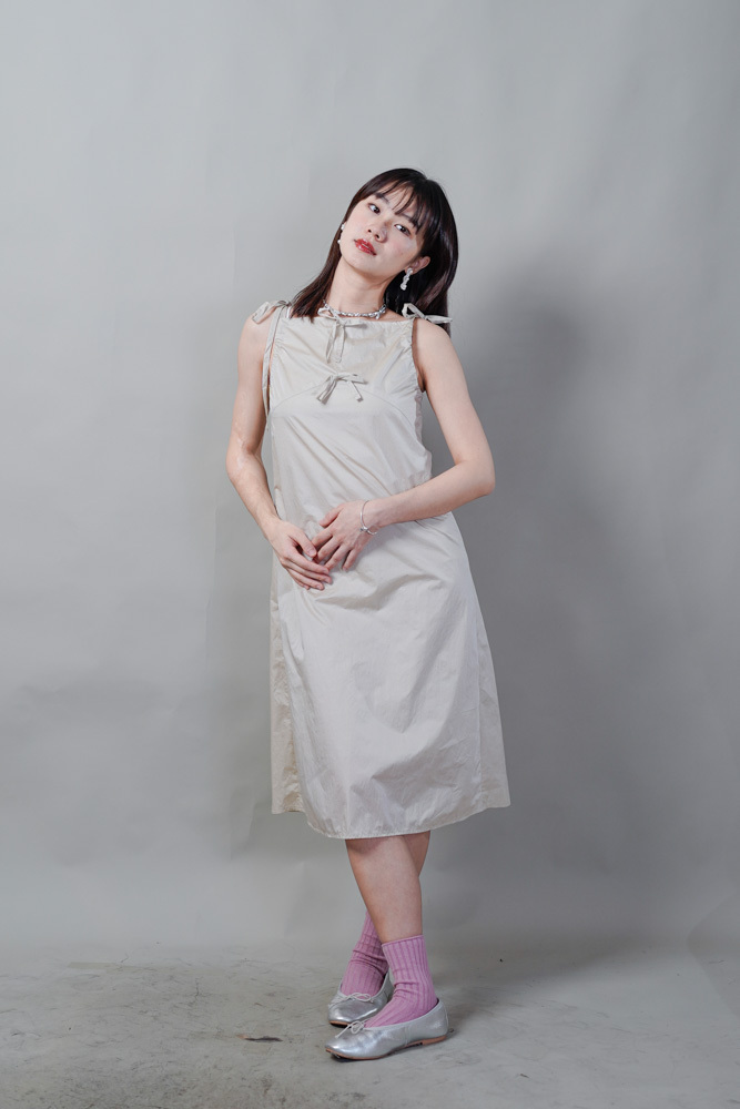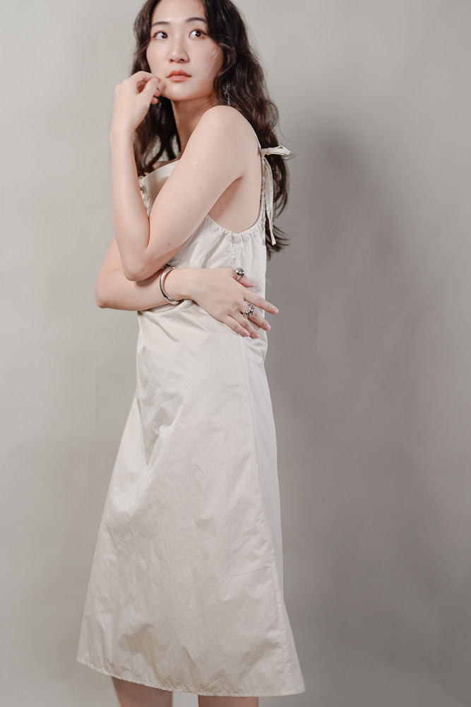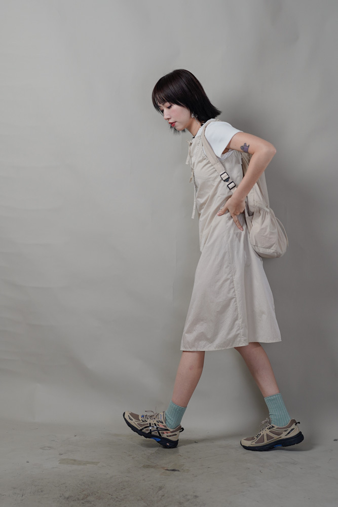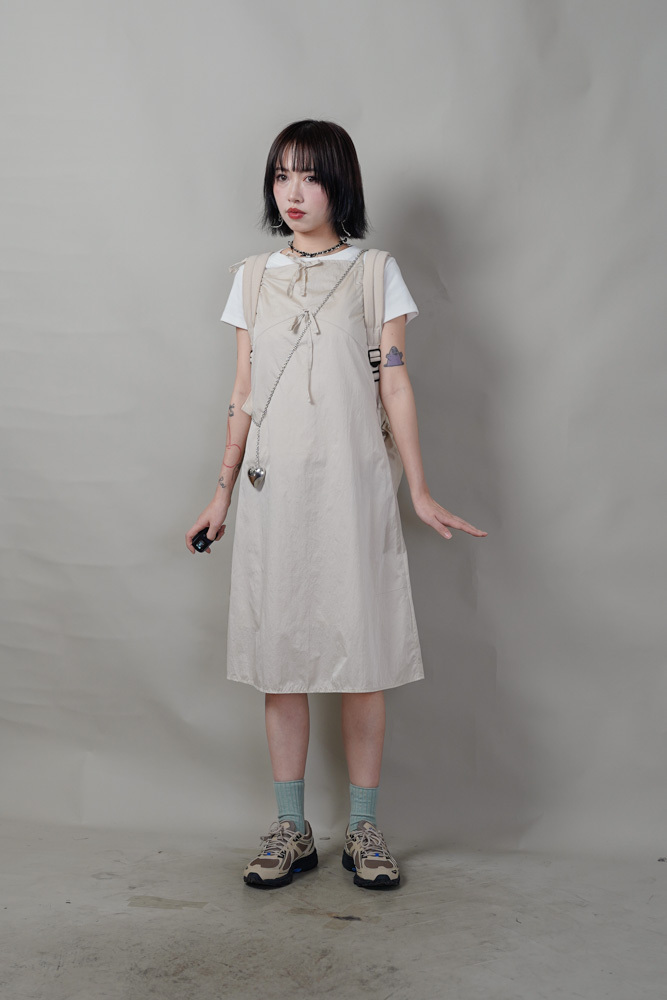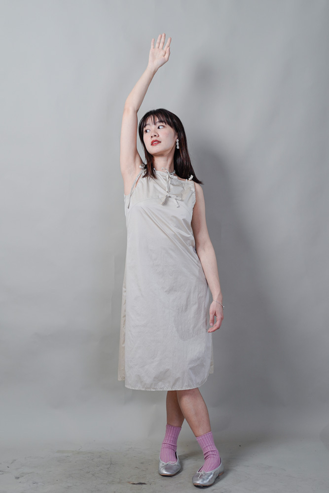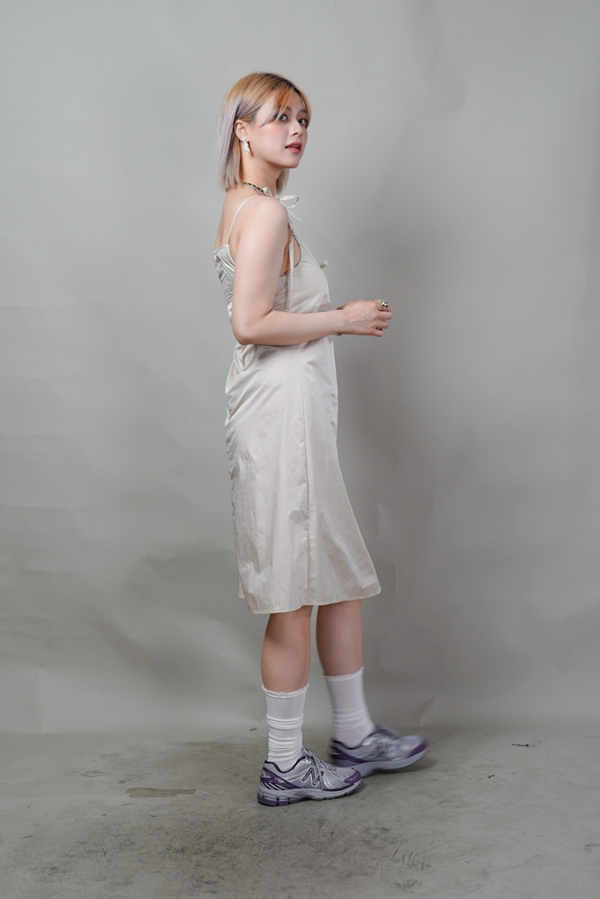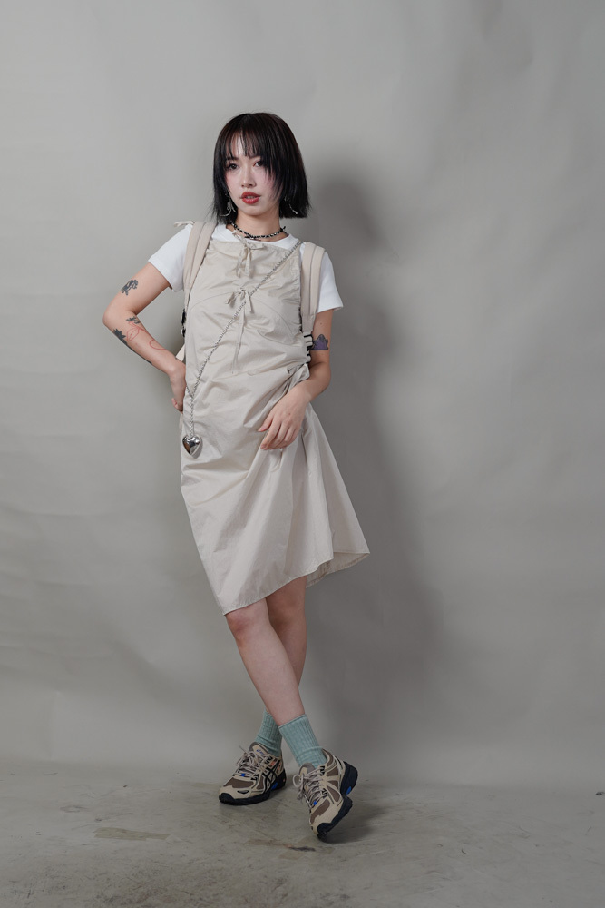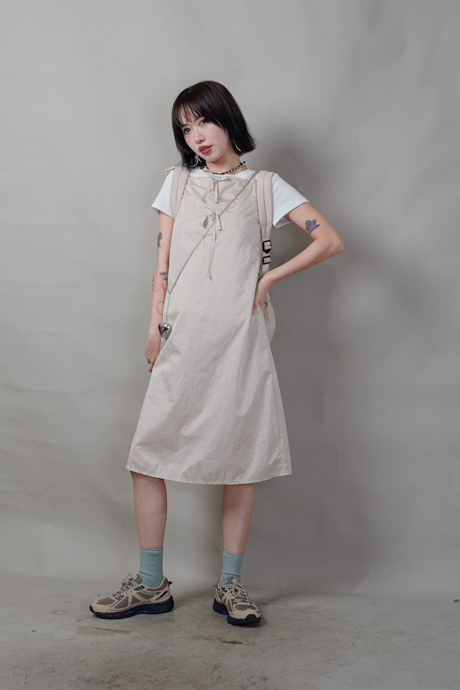 吊帶可自由調教長度鬆緊 適合任何膊頭/ 自帶腰線 有旗袍的修飾身型效果 但不會緊/