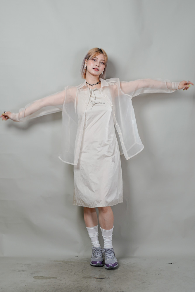 單穿或layering都適合半啞珠光色系 日常亦適合穿著 / 不同光線下有不同色彩 / 半透為肌膚帶來光澤感