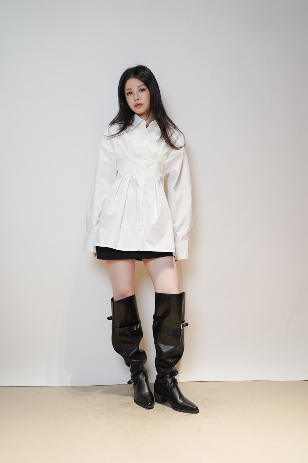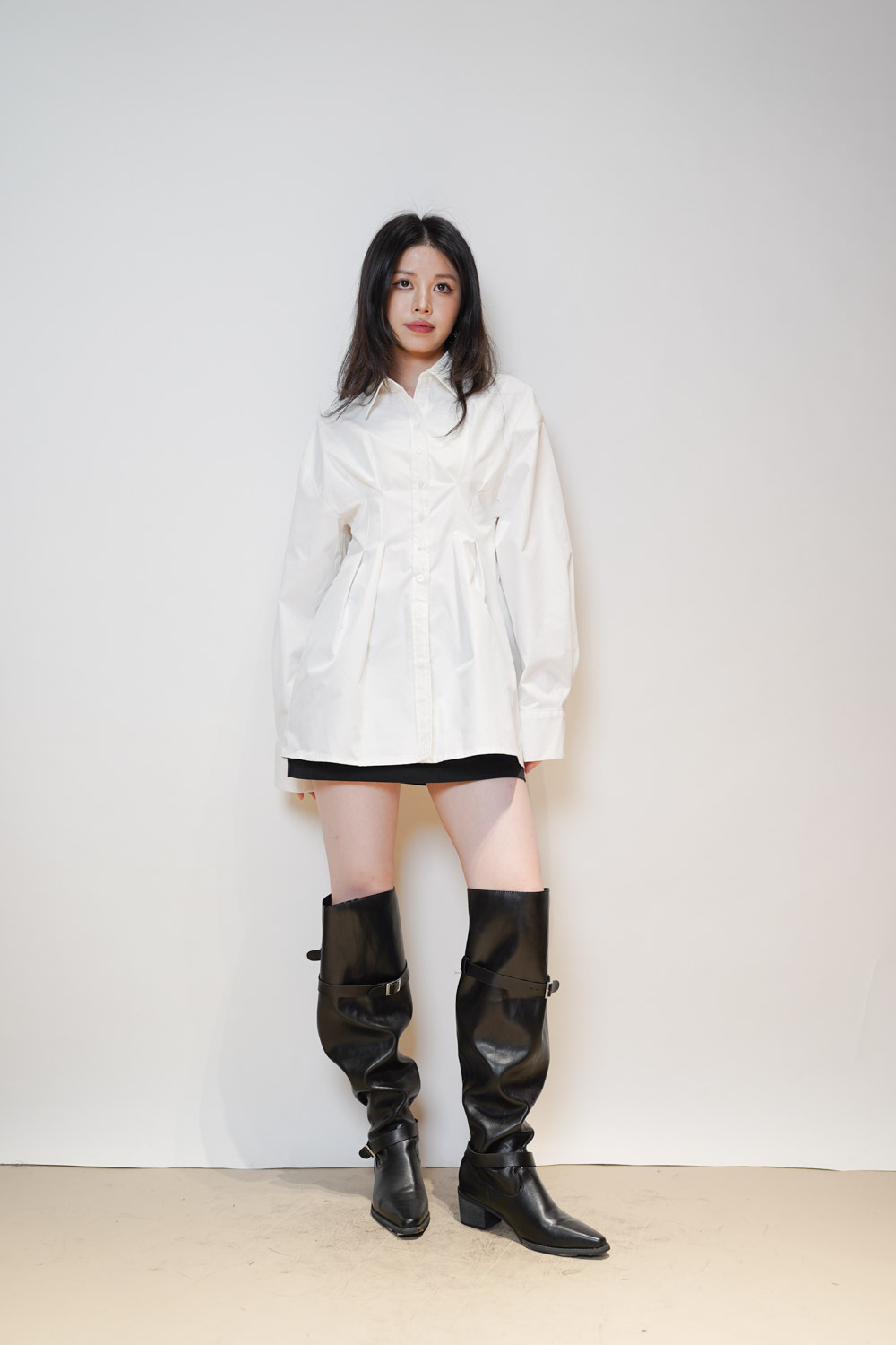 前後腰間打摺設計 仿腰封設計 自帶腰身/