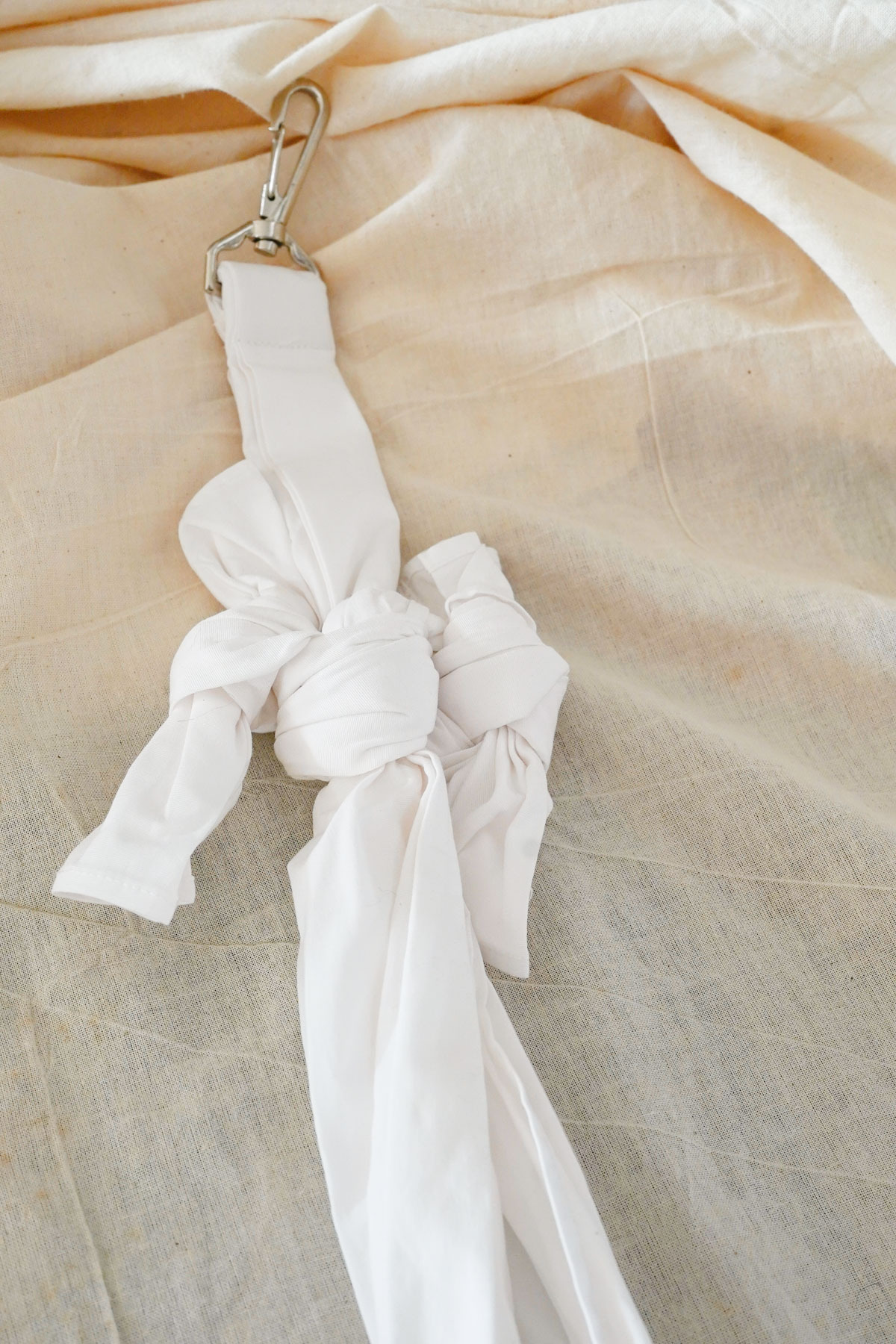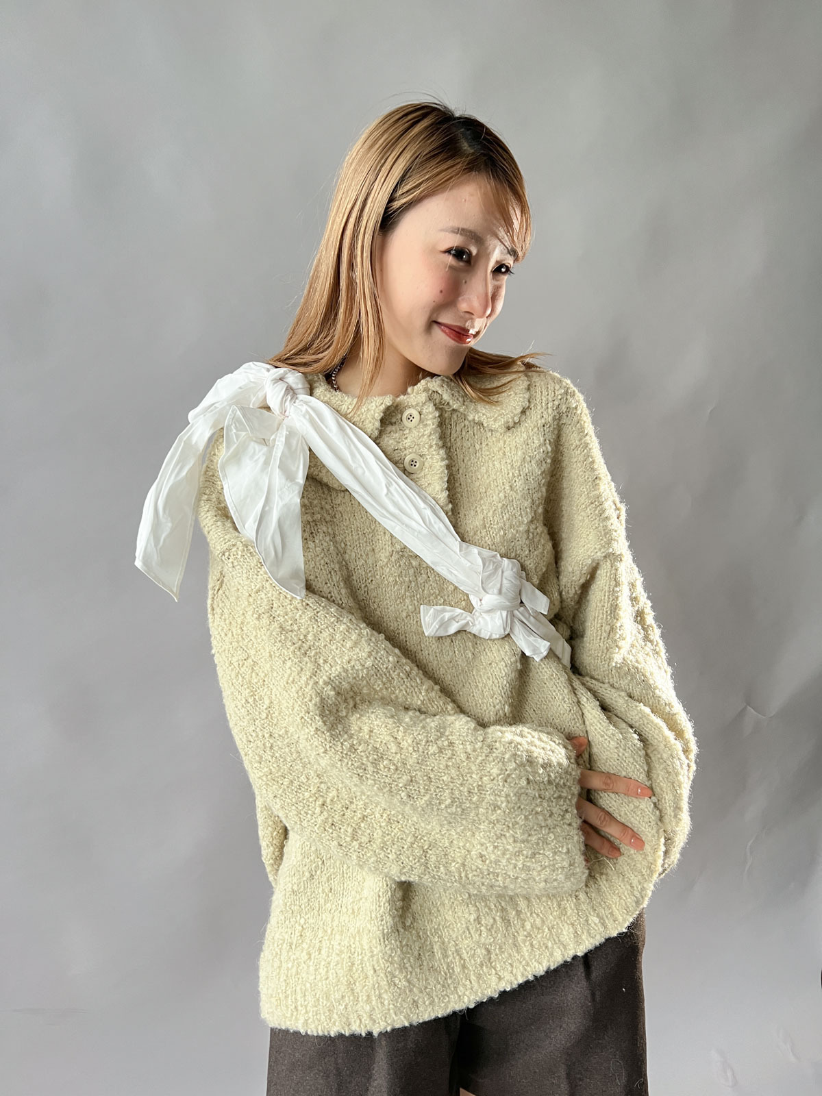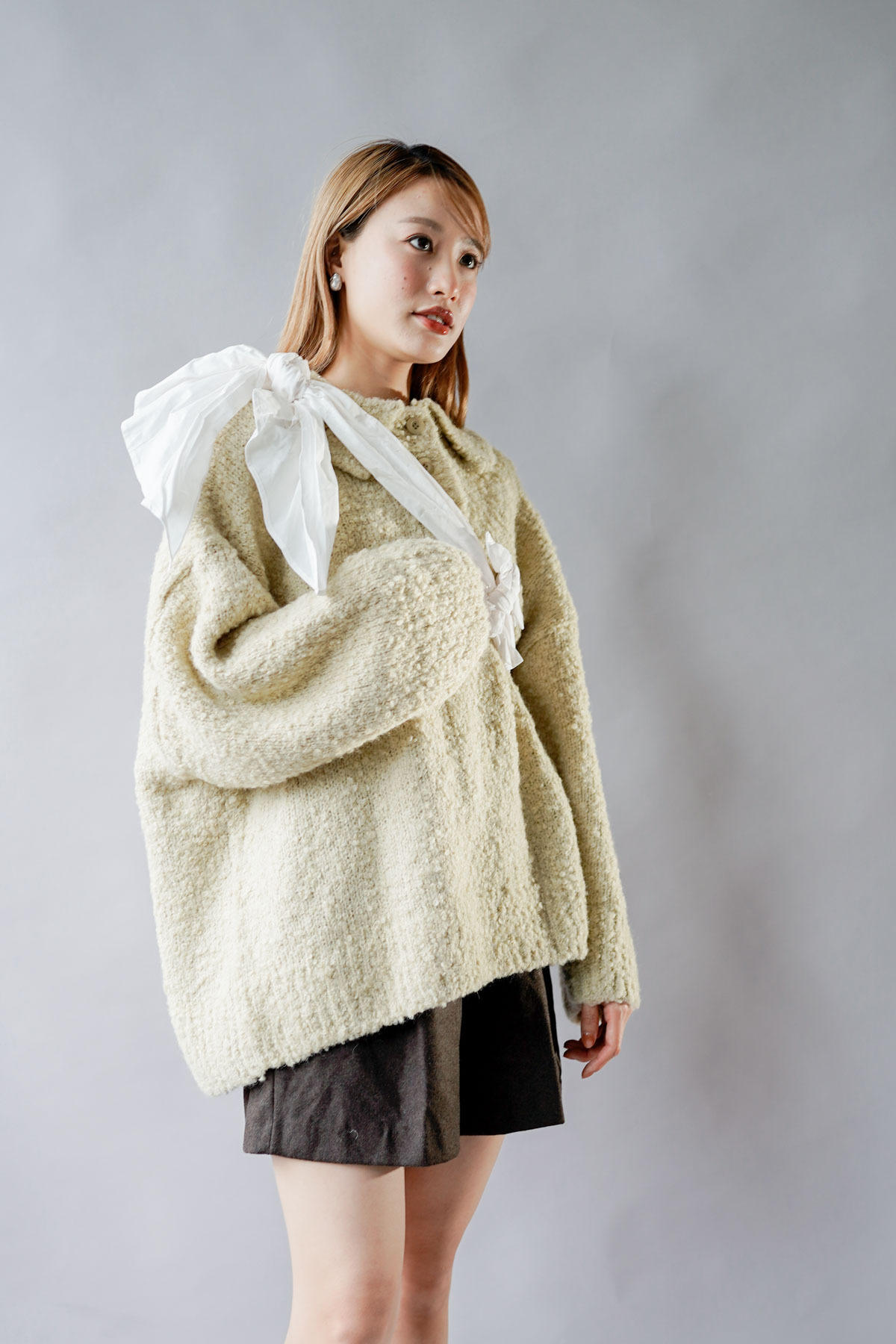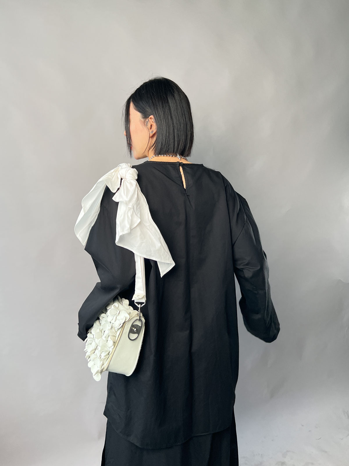 前面已固定十字糖結不可拆除,後面立體尖尾蝴蝶結,可拆開改變長度。