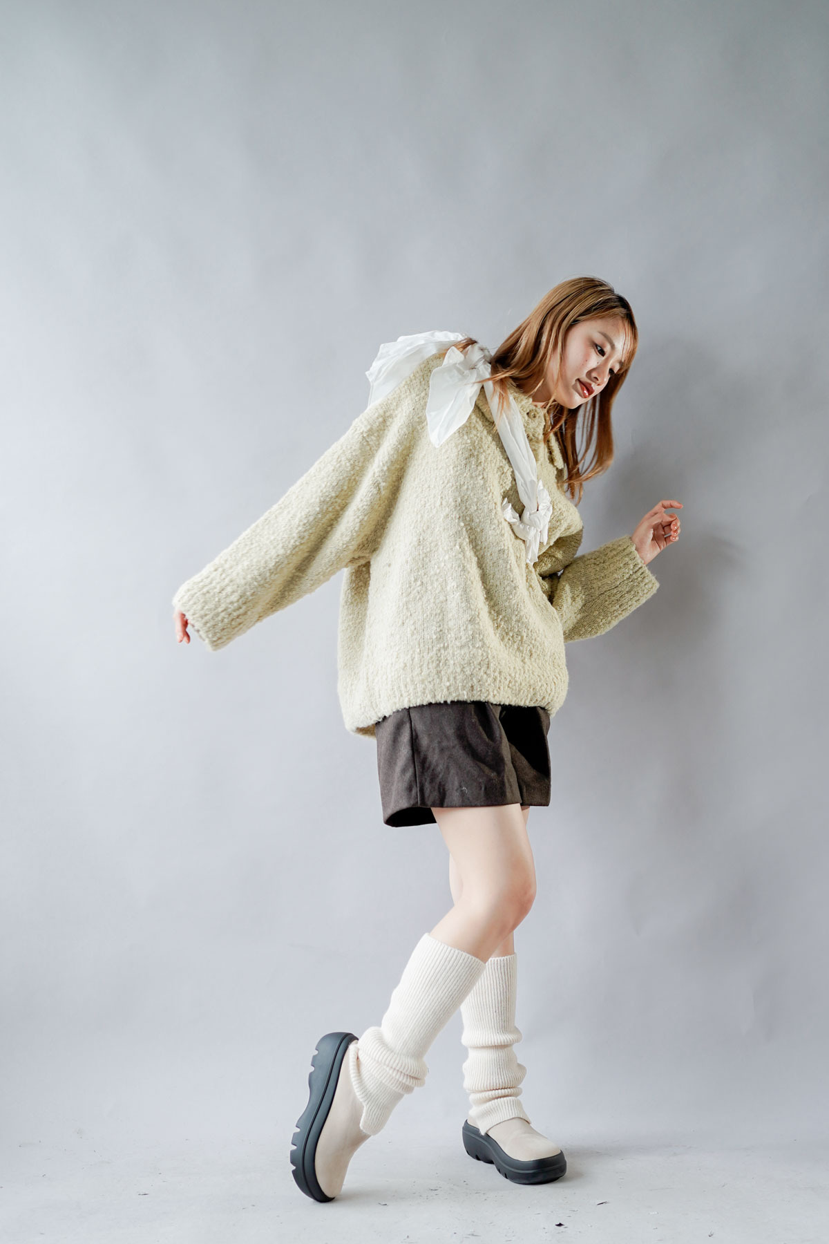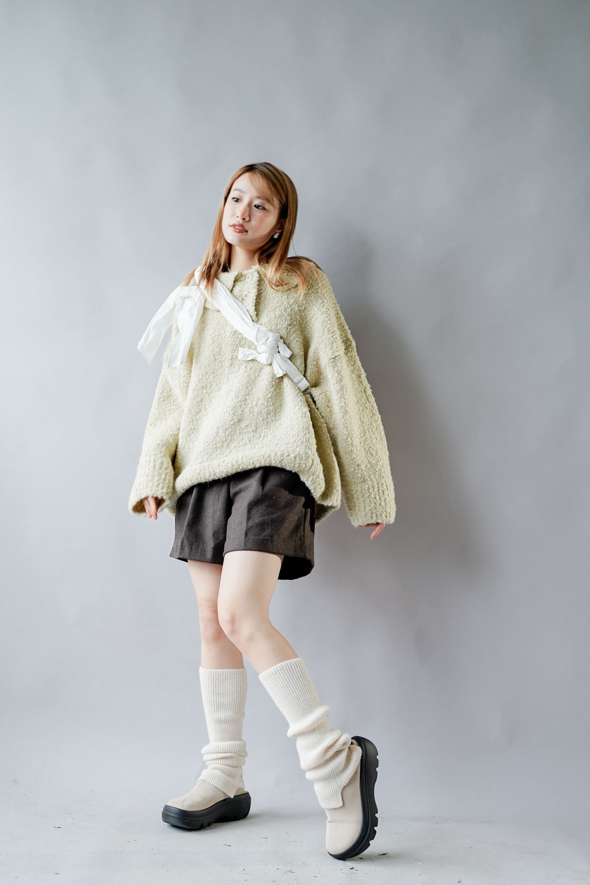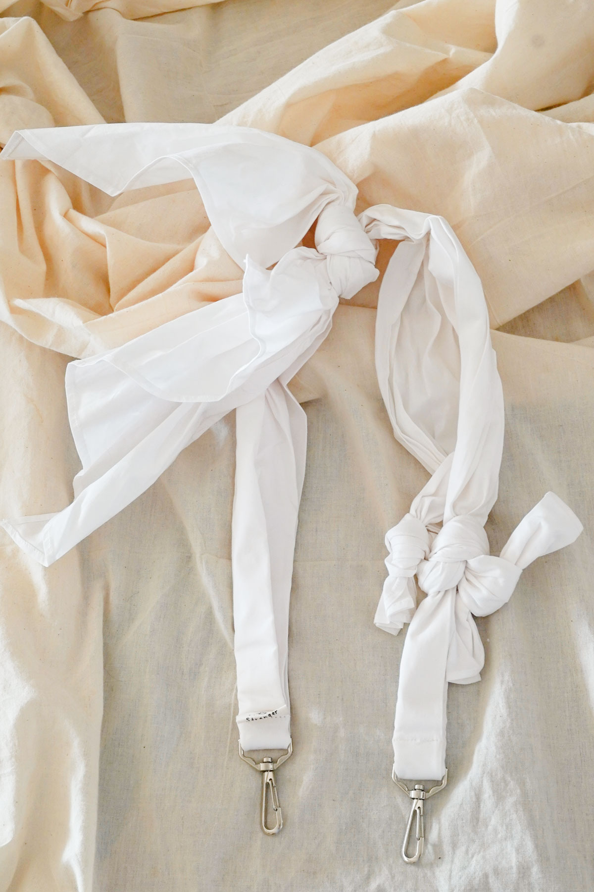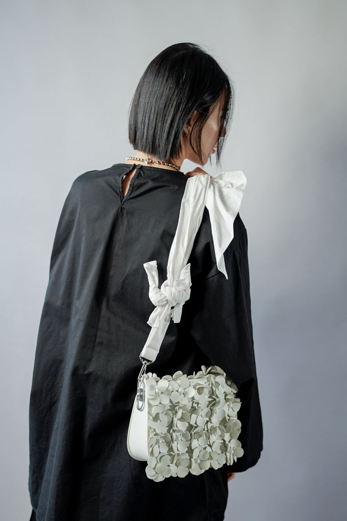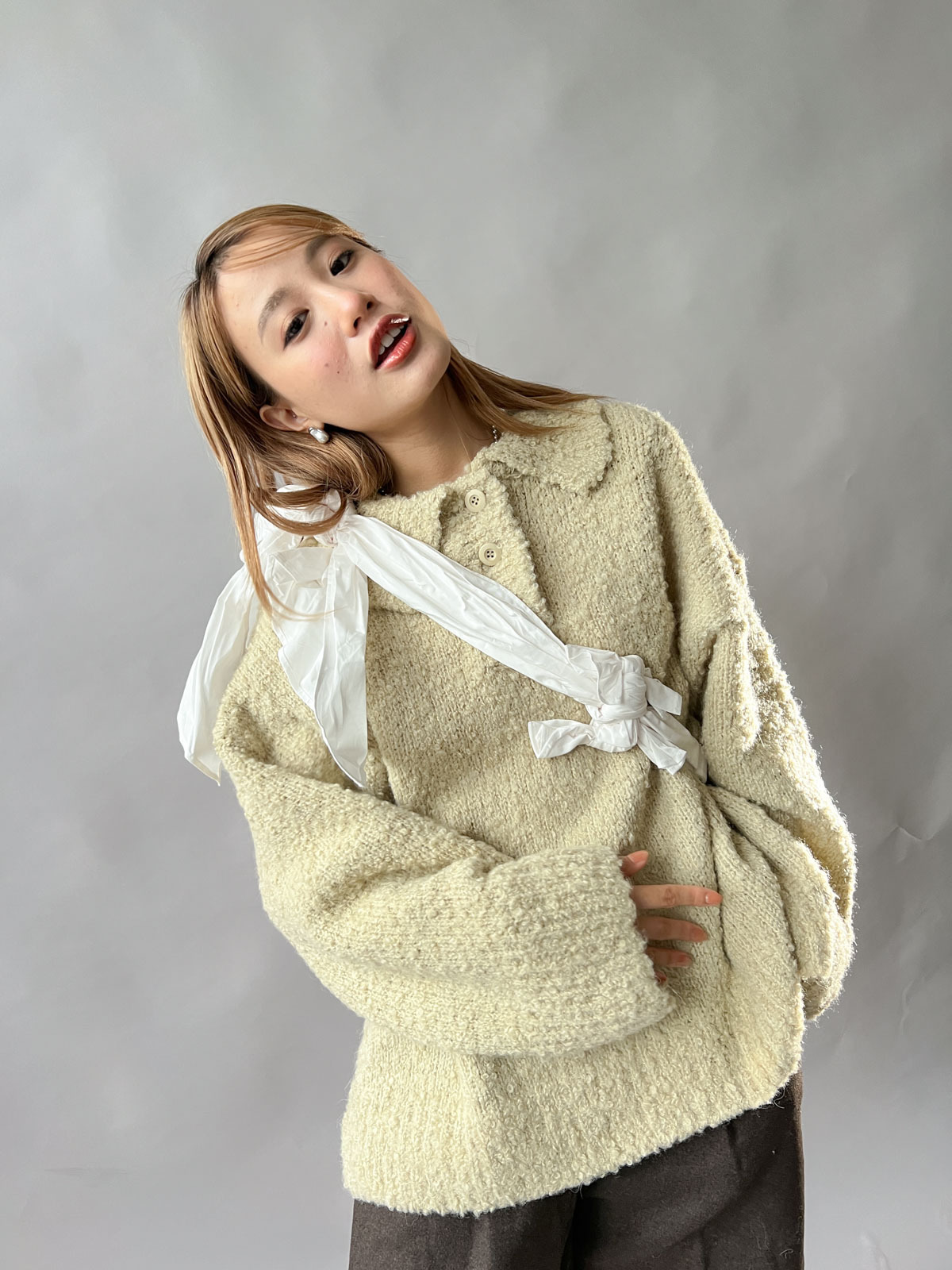 前面已固定十字糖結不可拆除,後面立體尖尾蝴蝶結,可拆開改變長度。