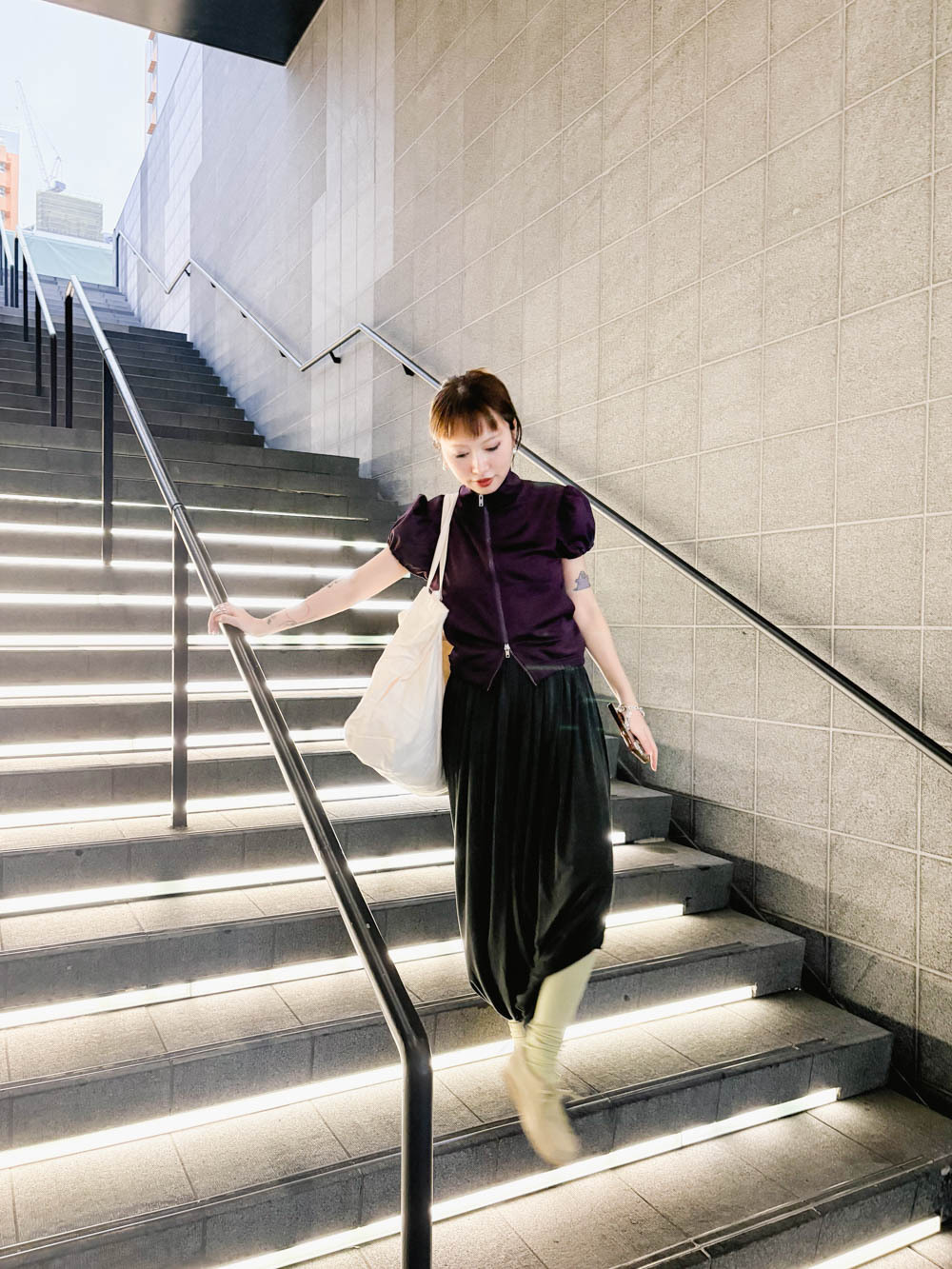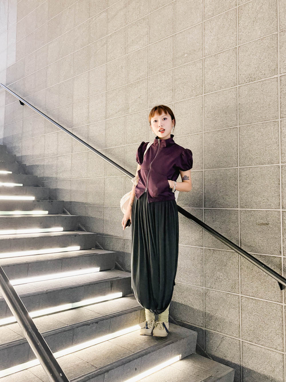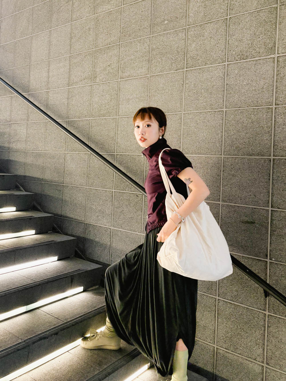 /層次感 LOOK:搭配一個皮質 Tote Bag 同一對銀色 Flat Shoes 提升整體造型嘅精緻度。