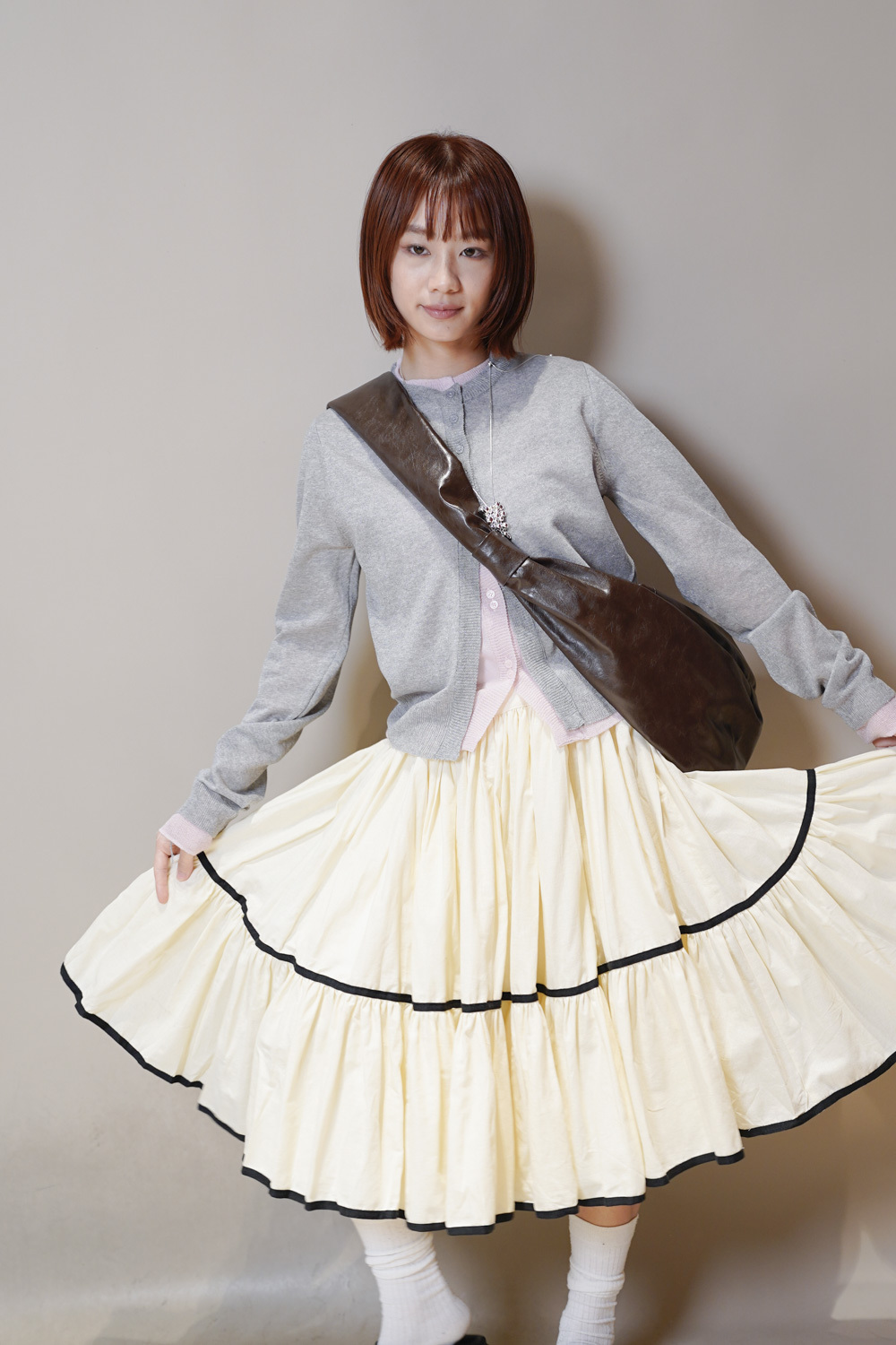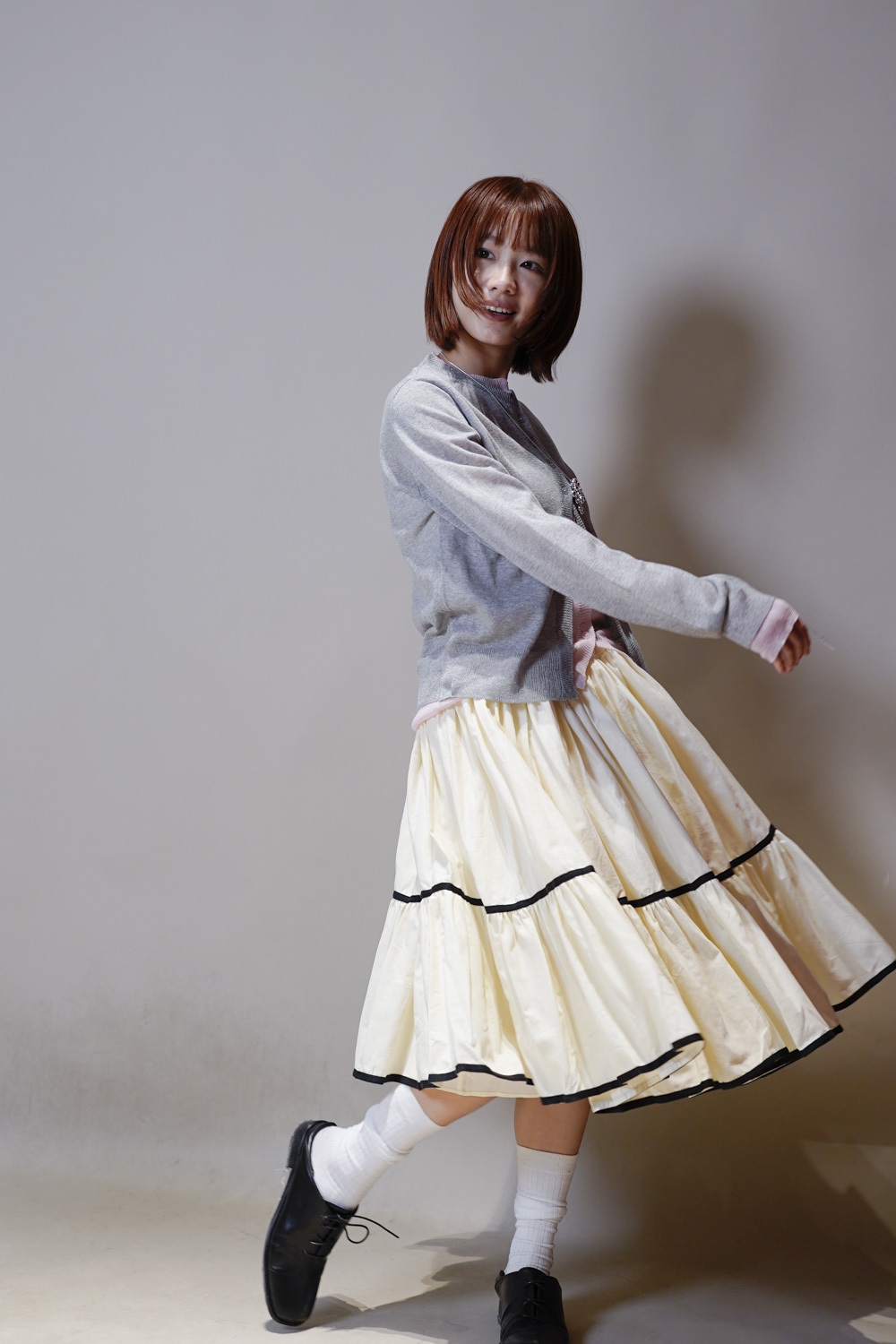 行路時裙擺隨風飄舞/