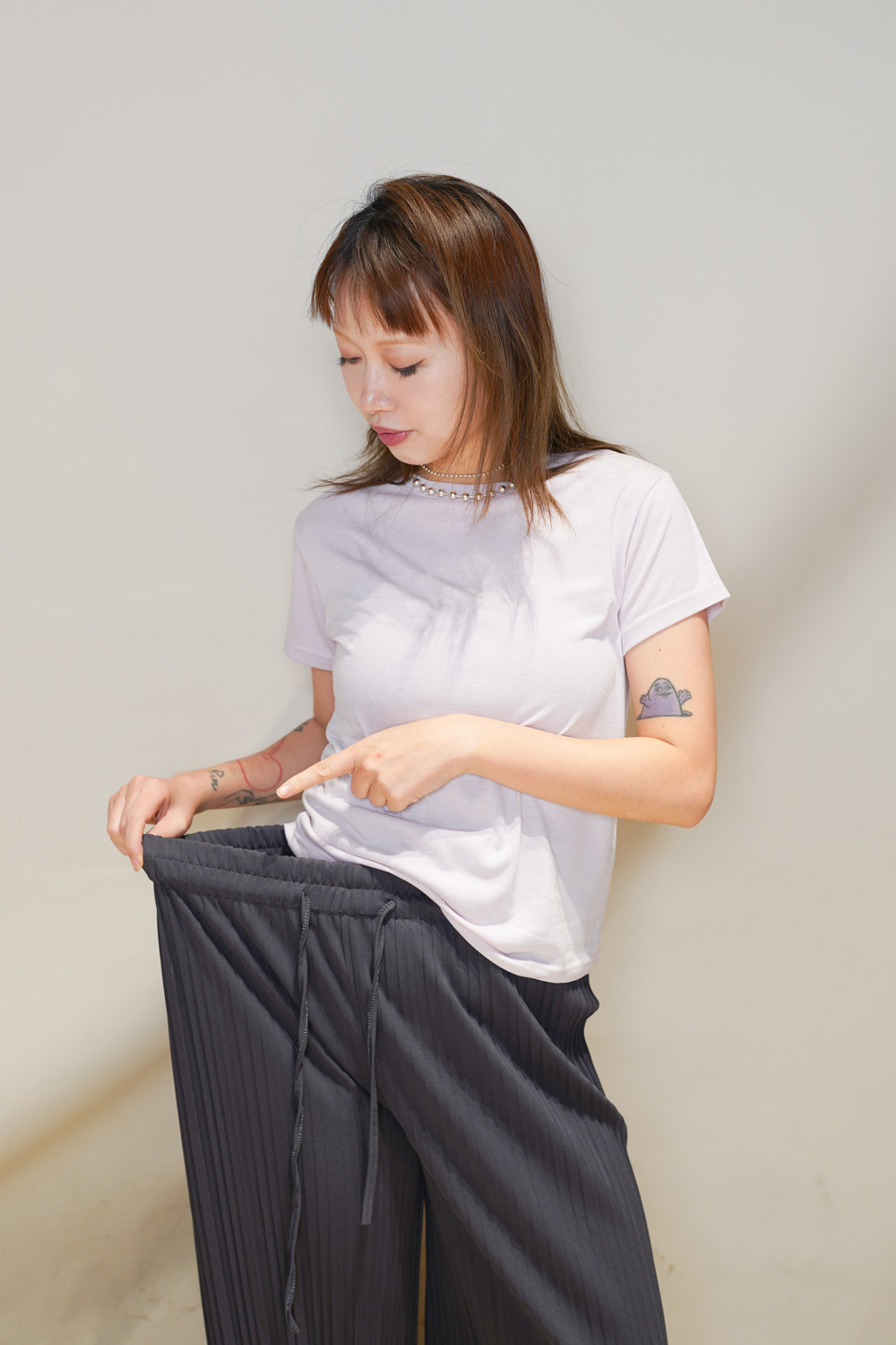 ② 隱形修飾腹部 雖然是全橡筋腰帶 但褶皺分布均勻 不會讓腰部顯得臃腫 對身形包容力極大
