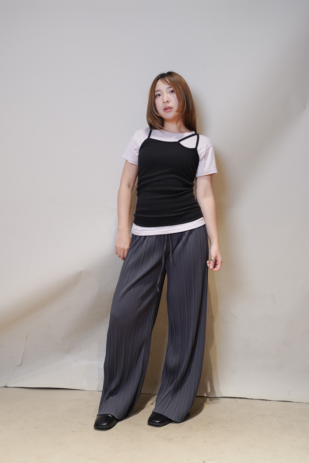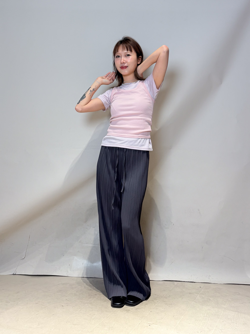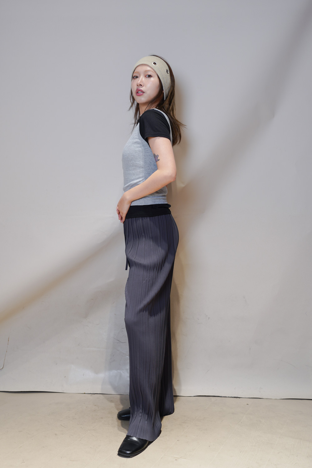 ① 物理拉長比例 垂直的細褶在視覺上形成縱向線條 讓下半身看起來更修長 顯高效果明顯