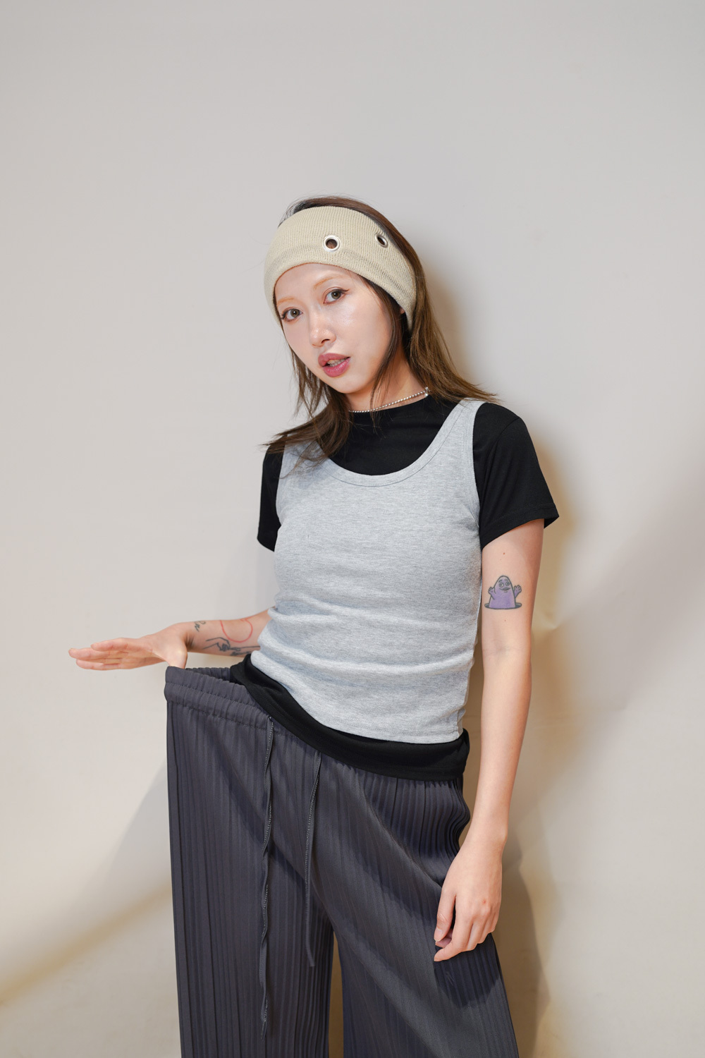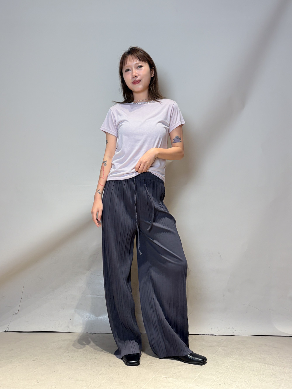 配上一件淡紫色的 Essential good length tee 利用深淺色調平衡 展現溫柔卻有氣場的質感
