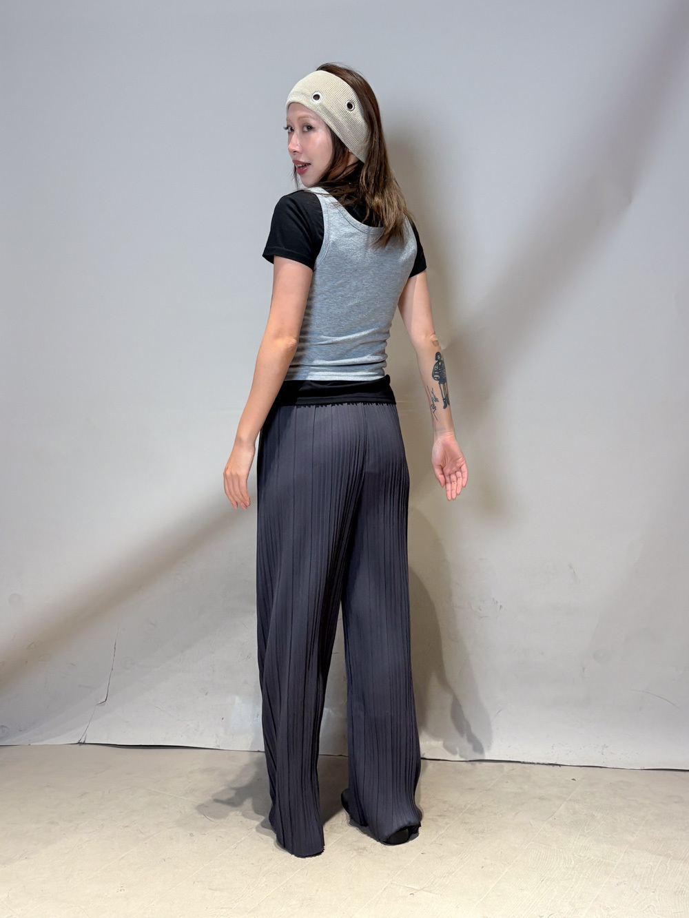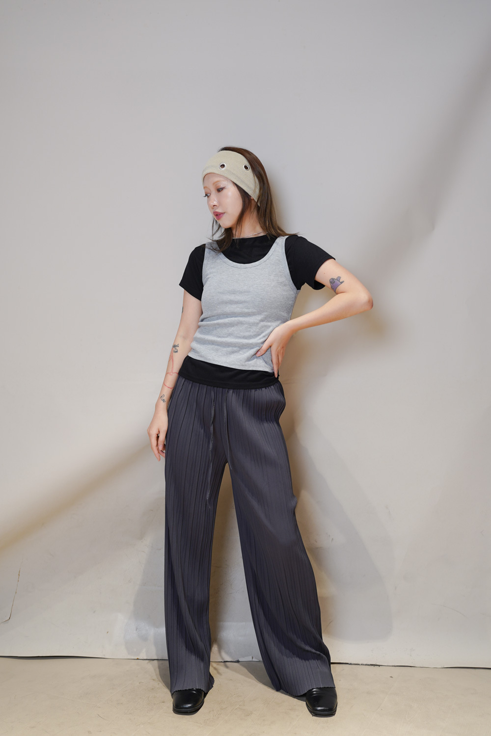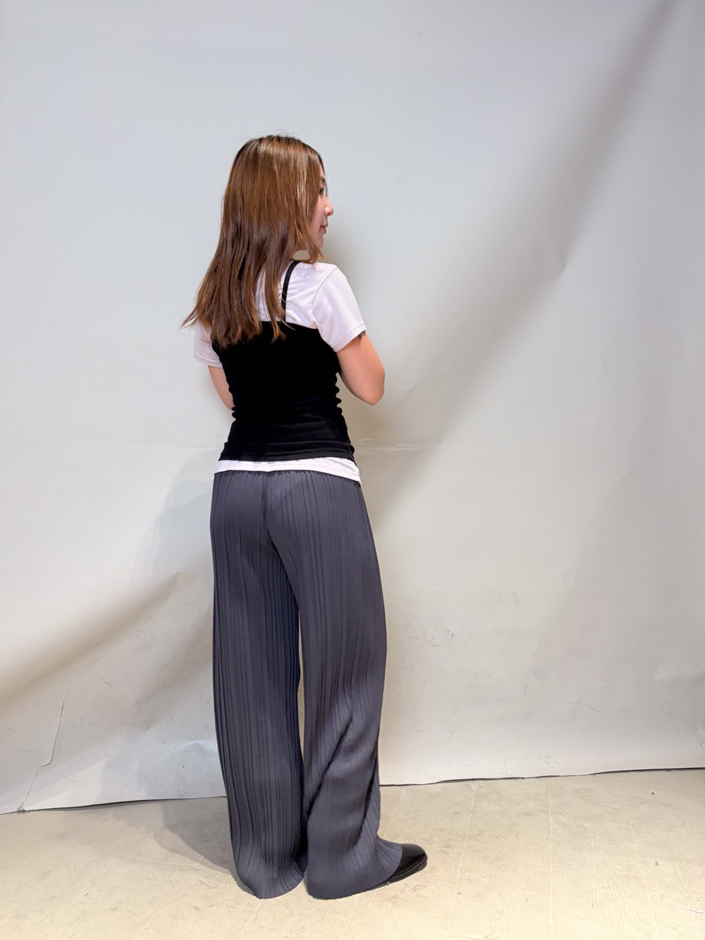 Textured easy long leg pants (IVORY/GREY/BLACK)
