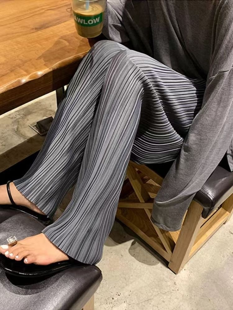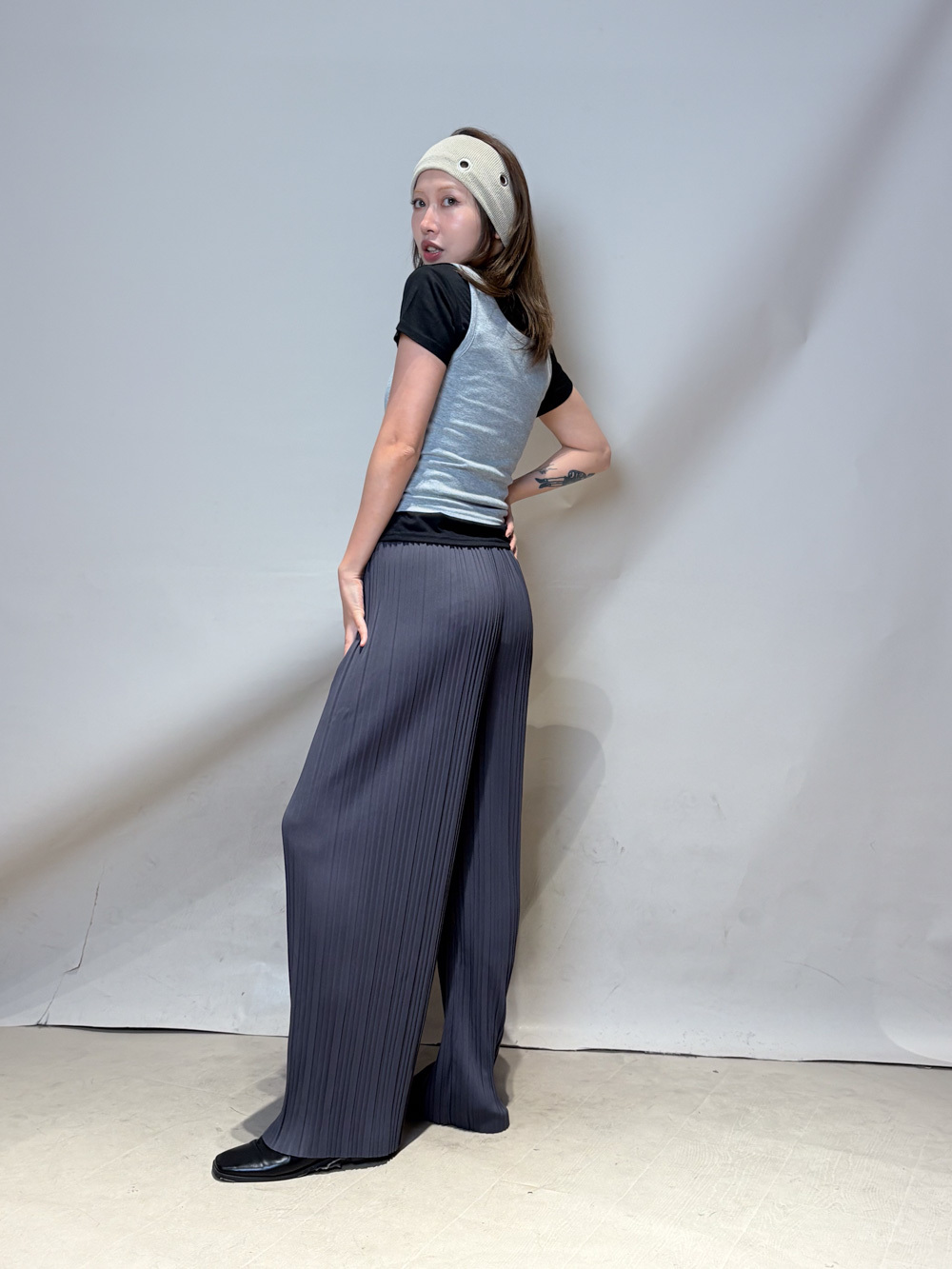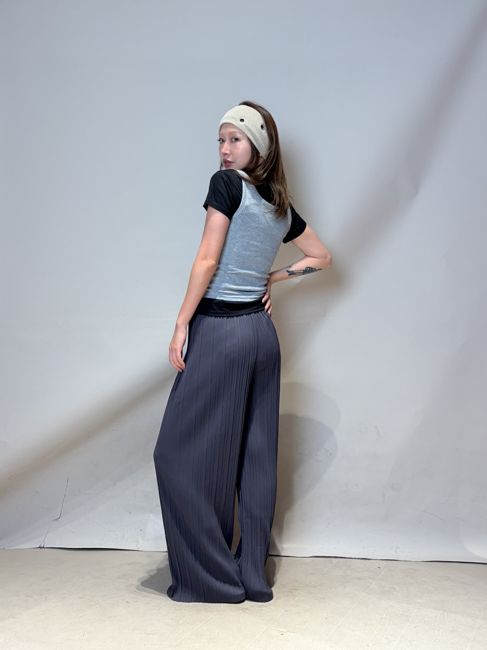 Textured easy long leg pants (IVORY/GREY/BLACK)