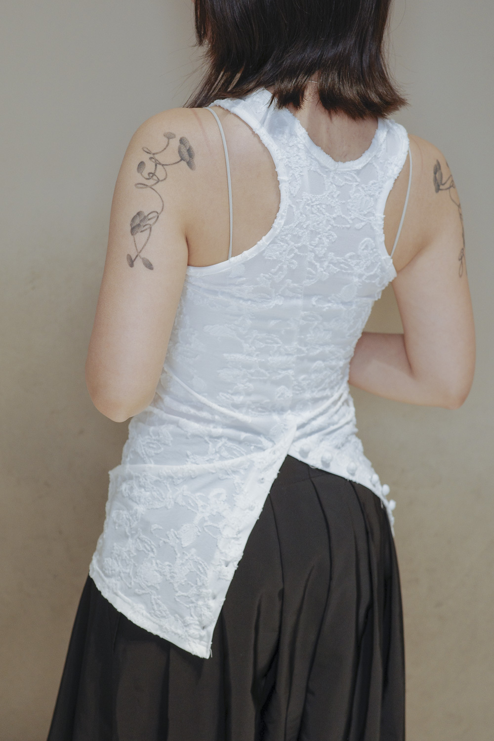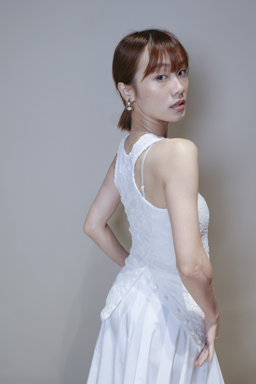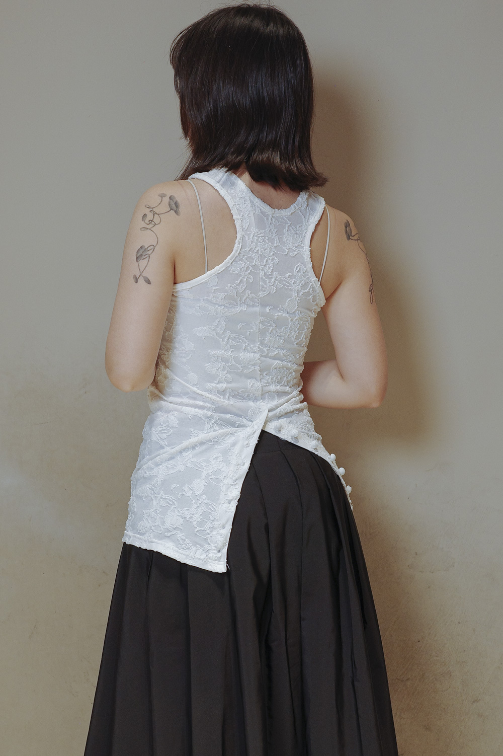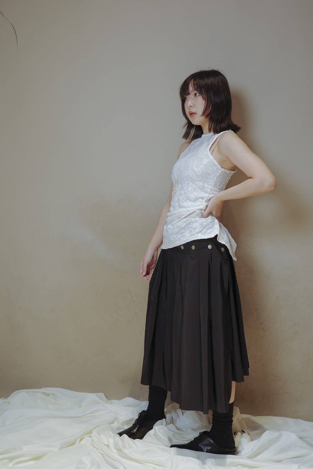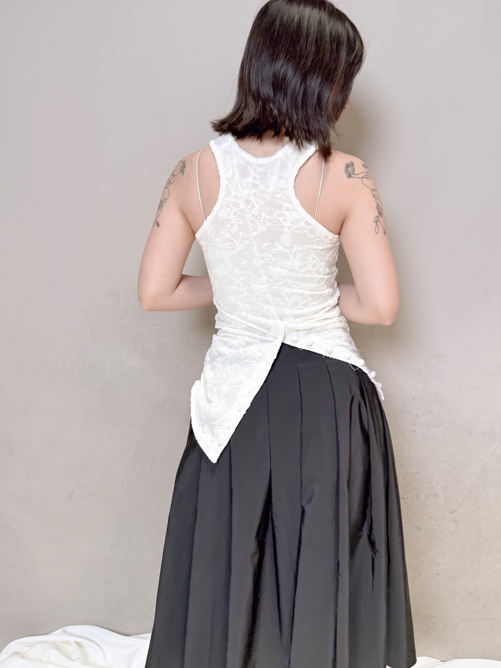 衣擺開叉剪裁 錯視修腰效果/