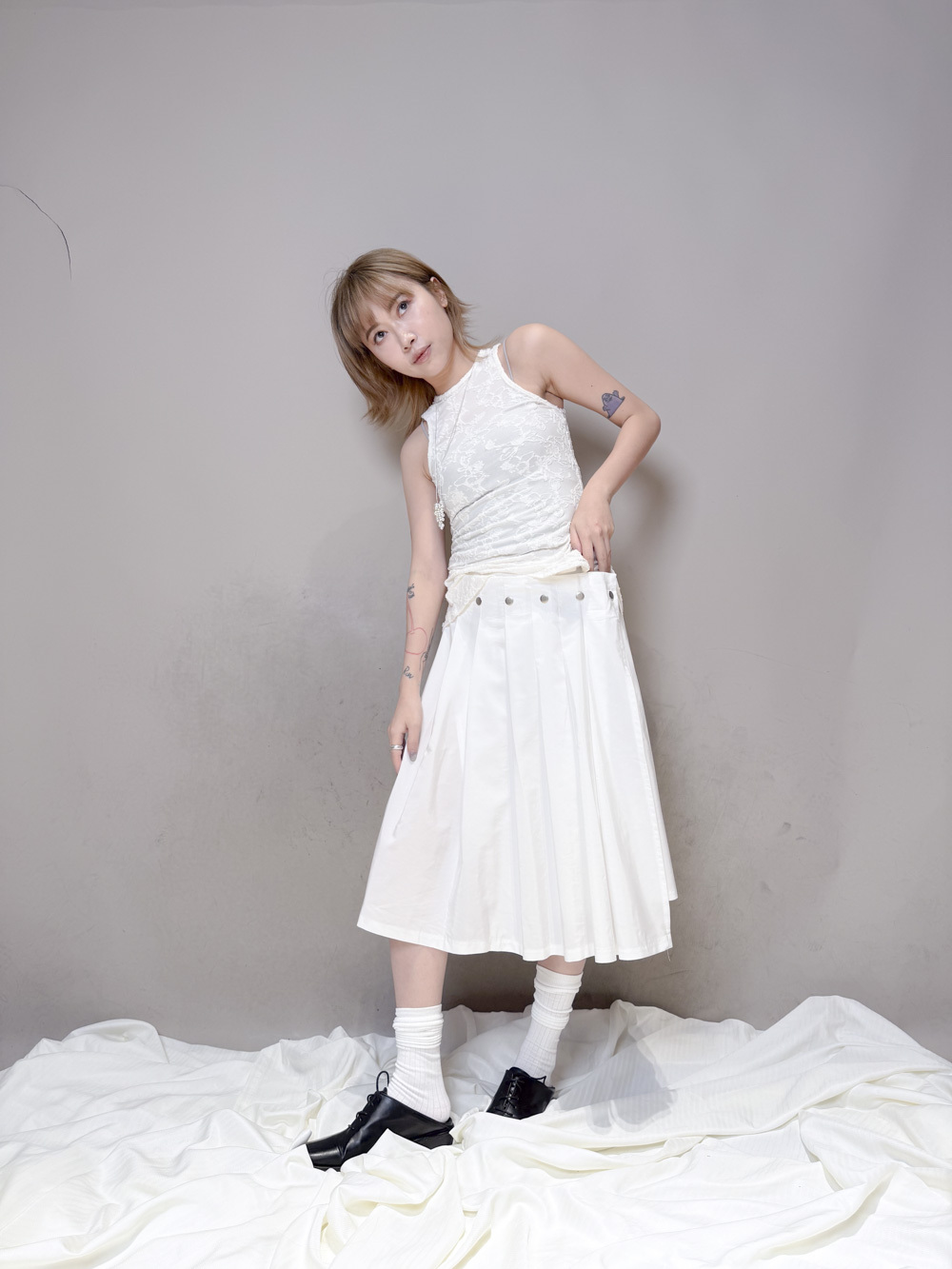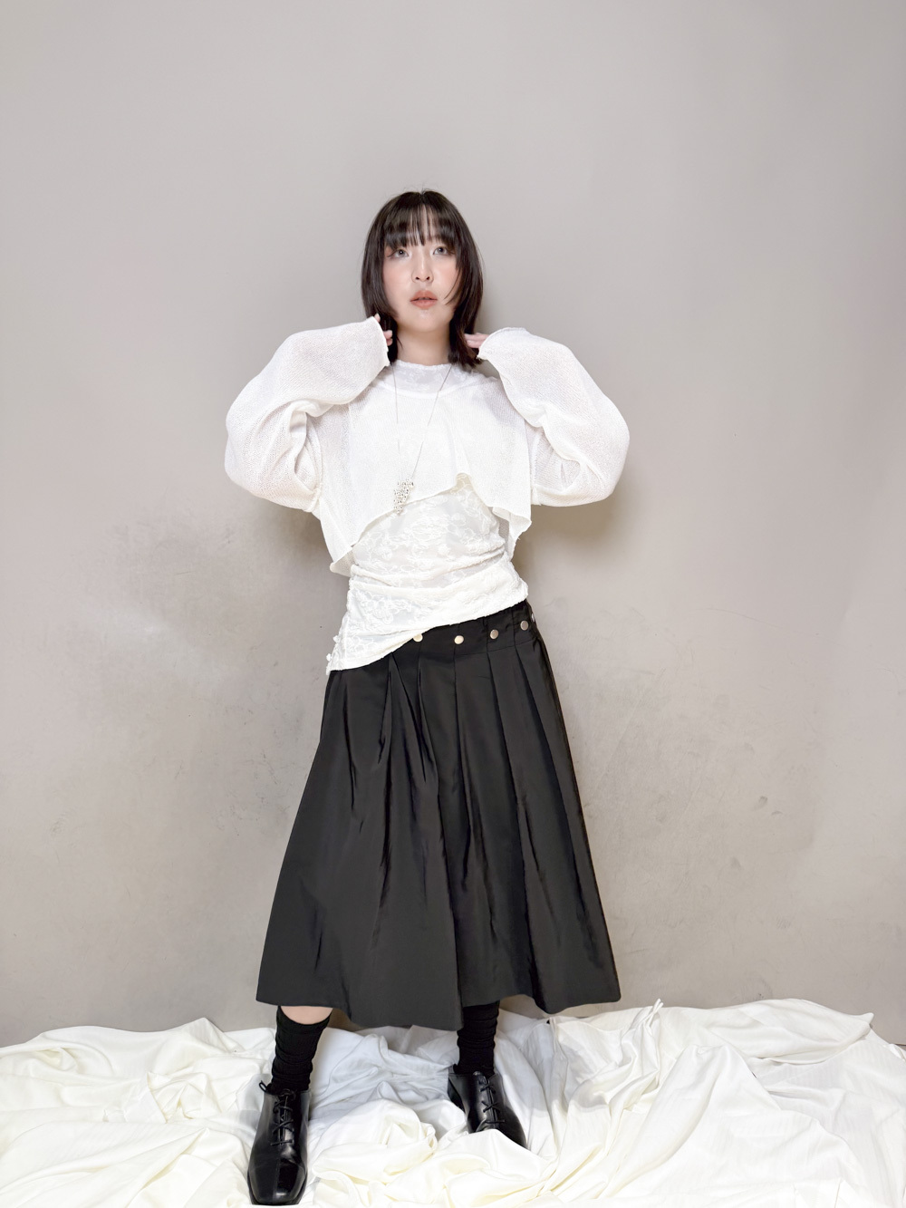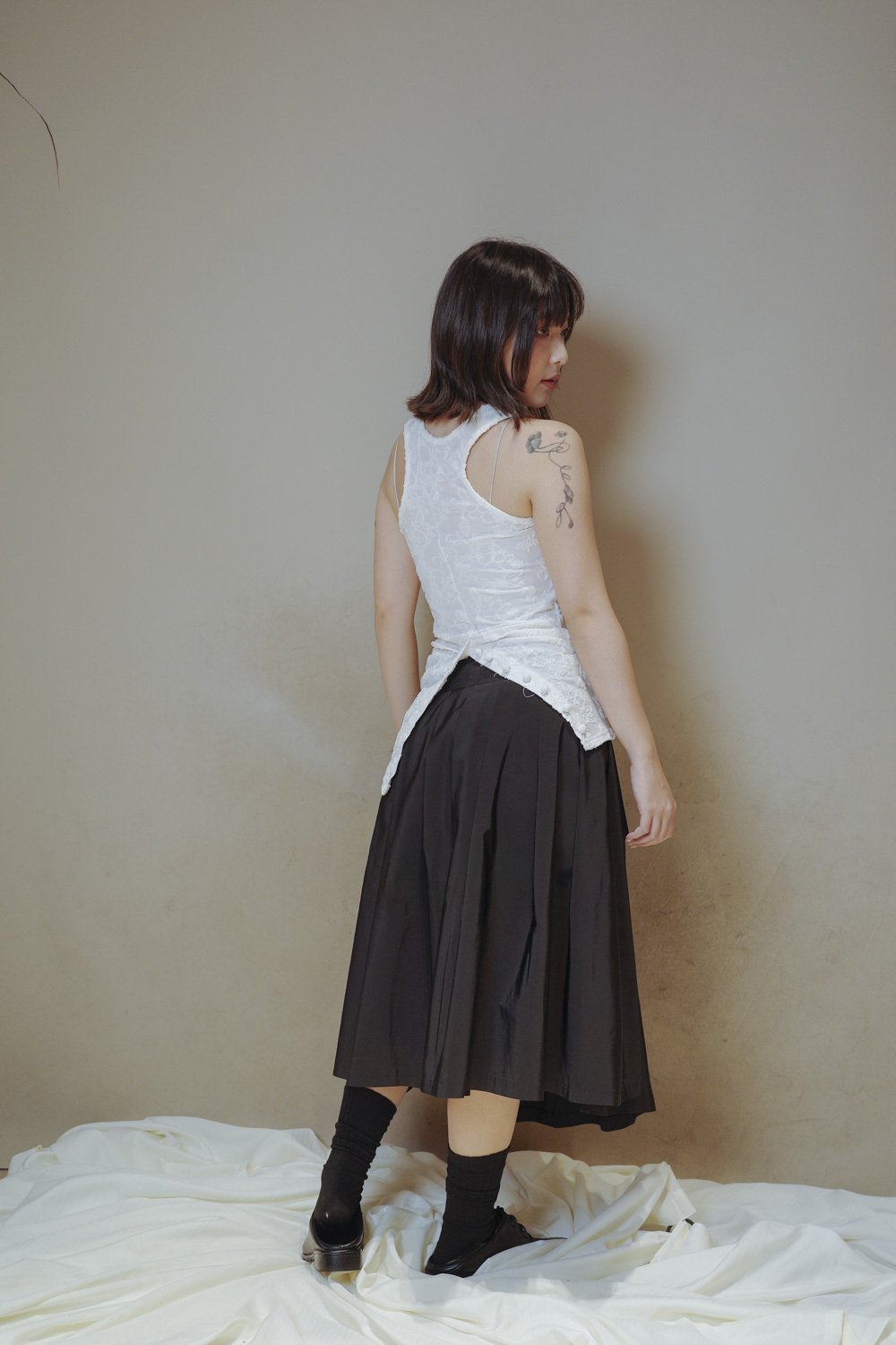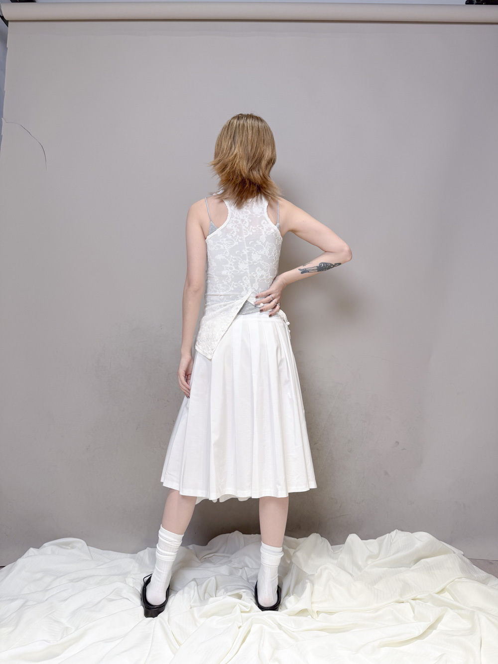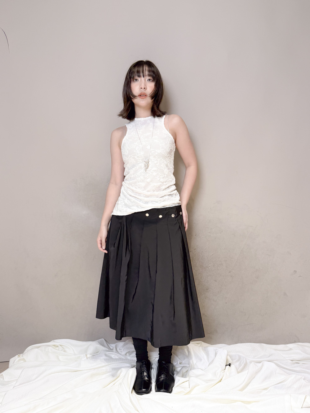 衣擺開叉剪裁 錯視修腰效果/