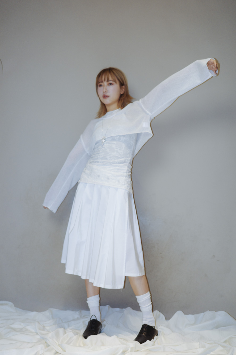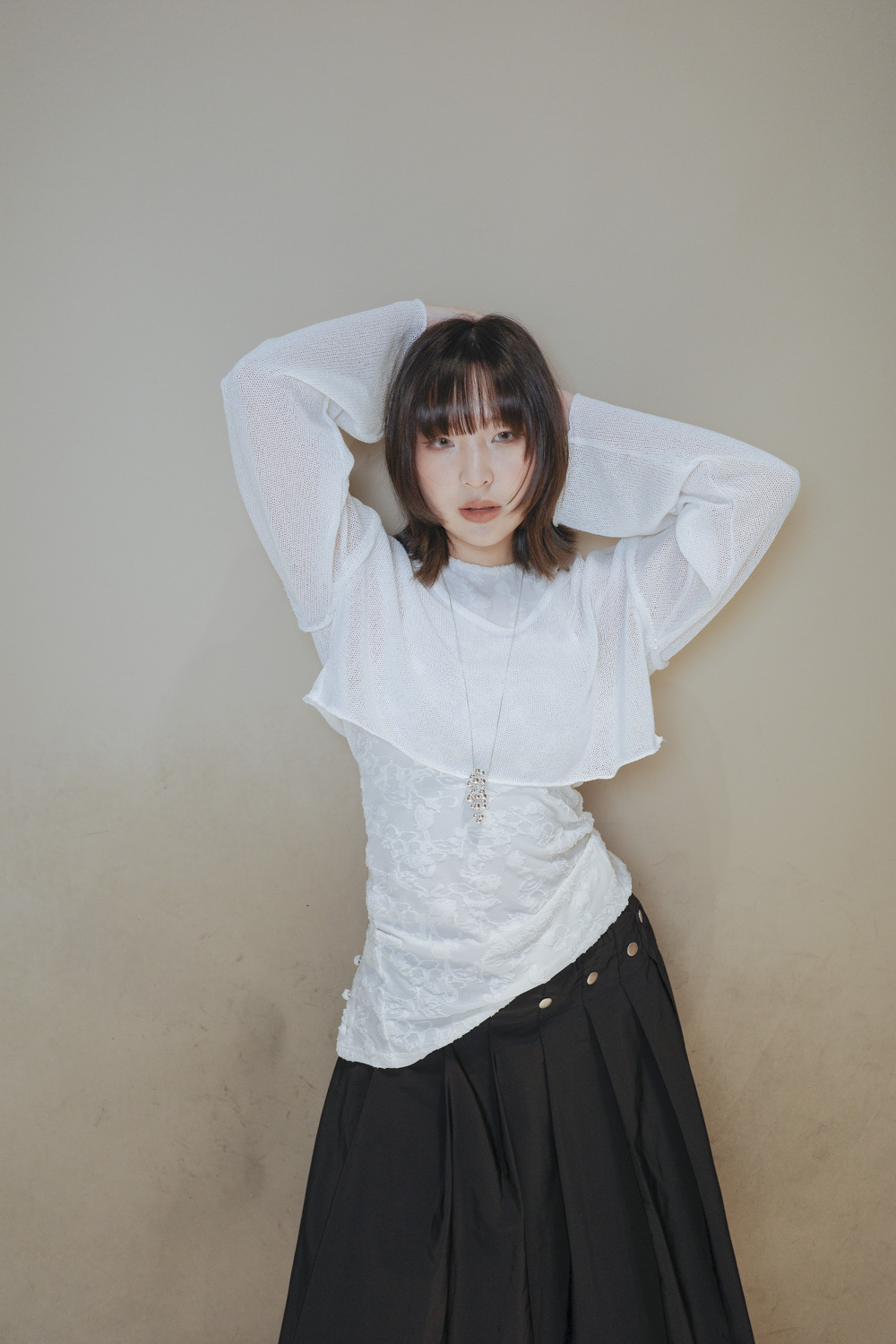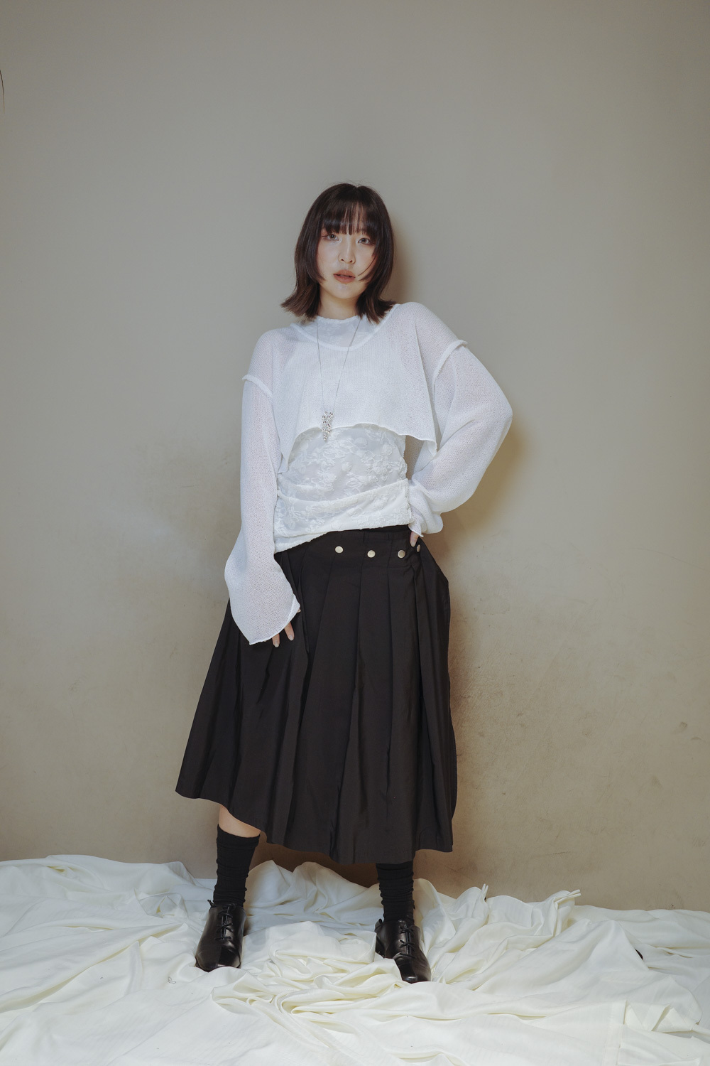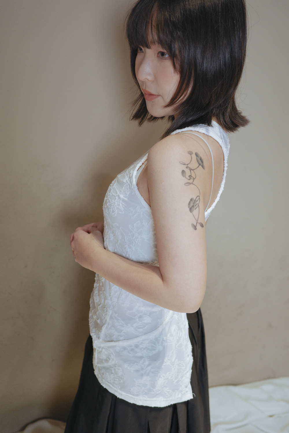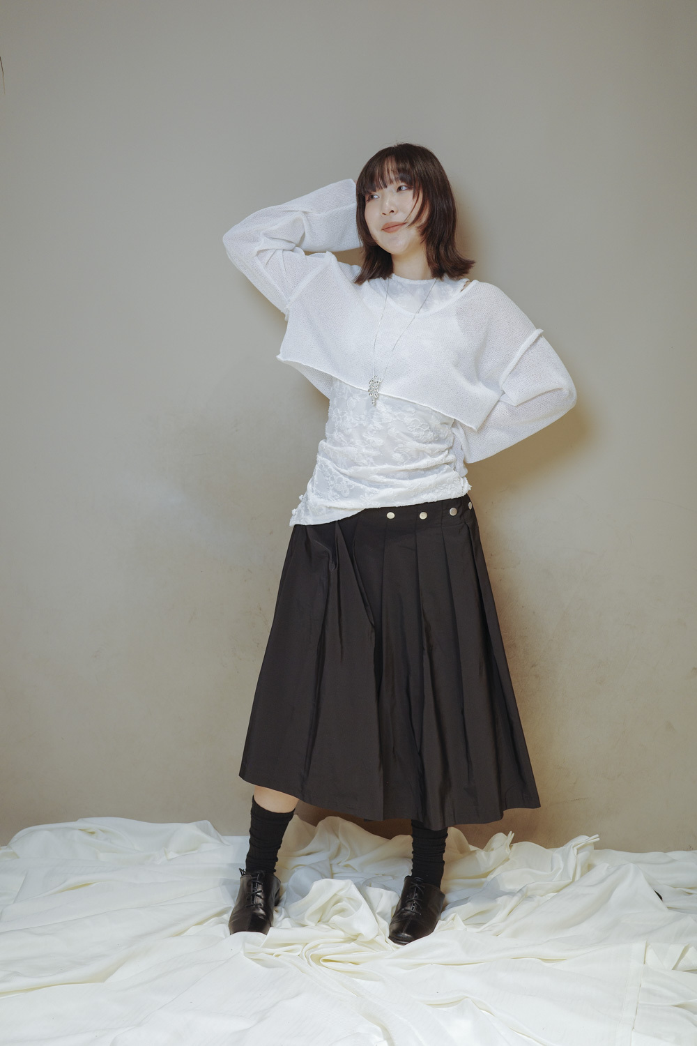 衣擺開叉剪裁 錯視修腰效果/