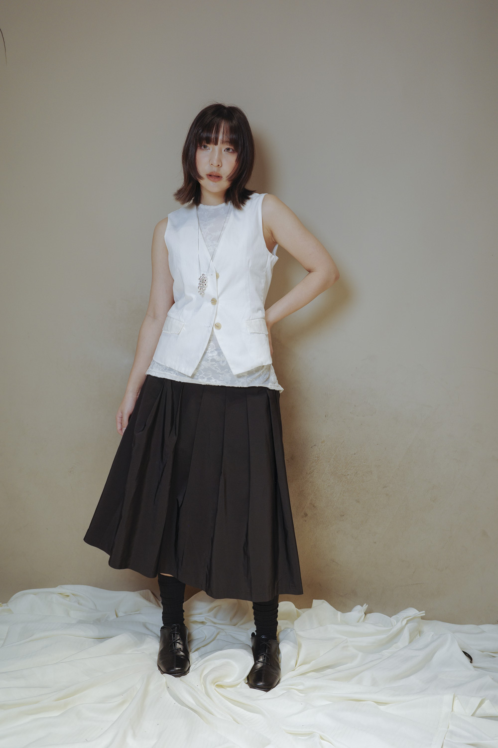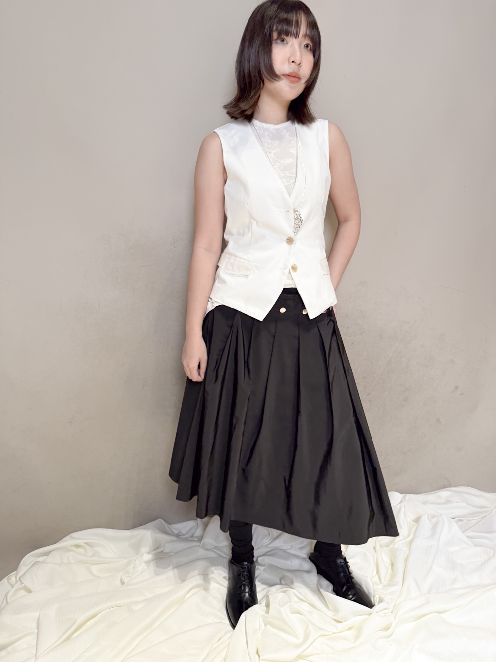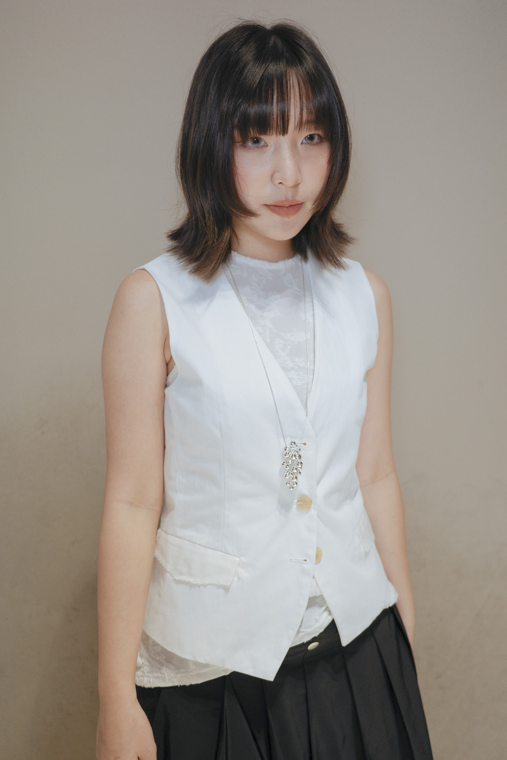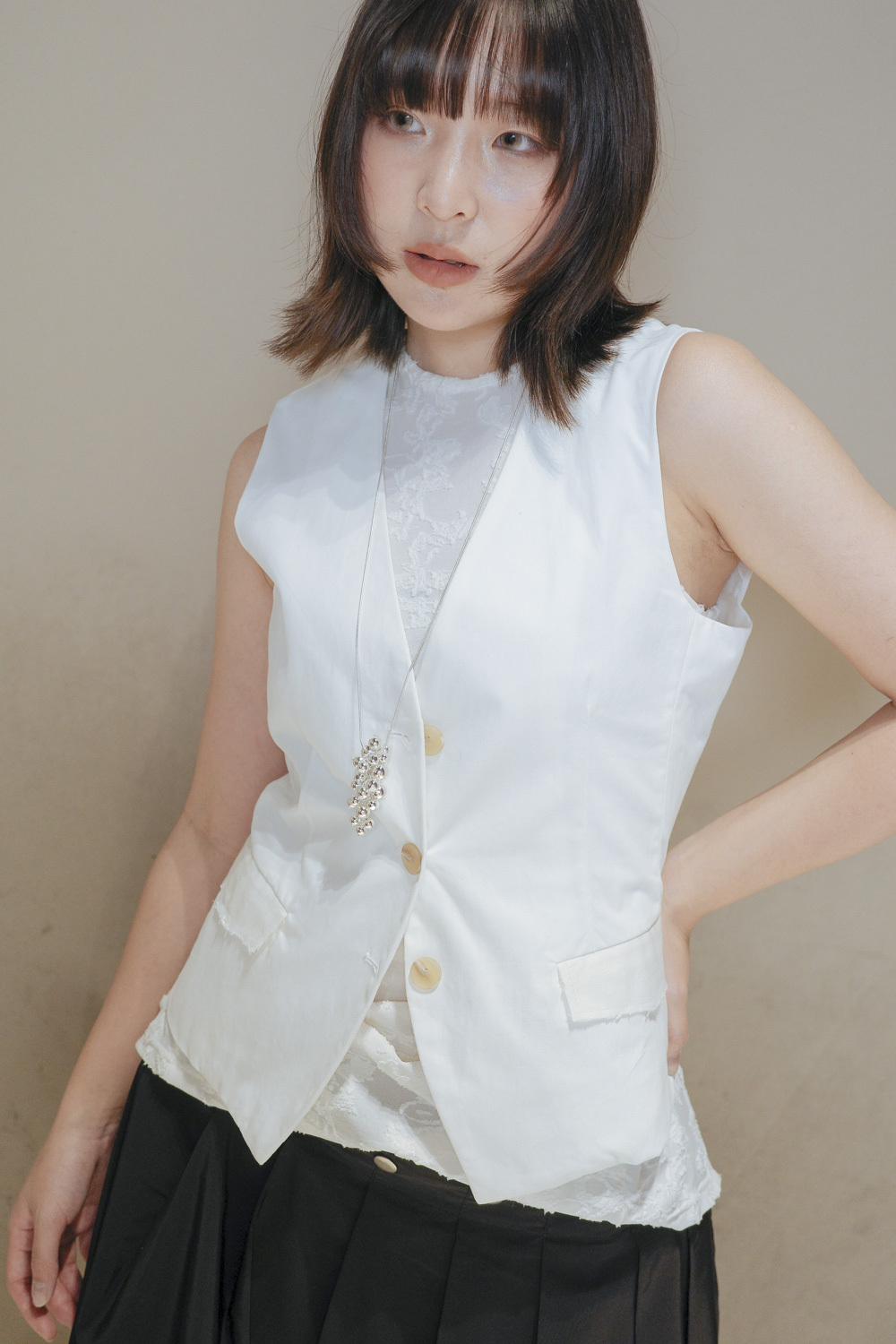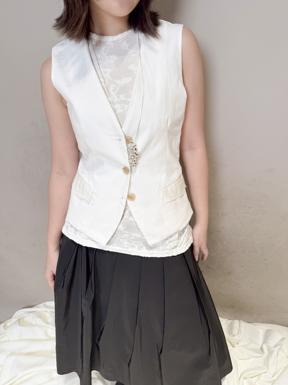 Textured multiple button vest (WHITE/BLACK)