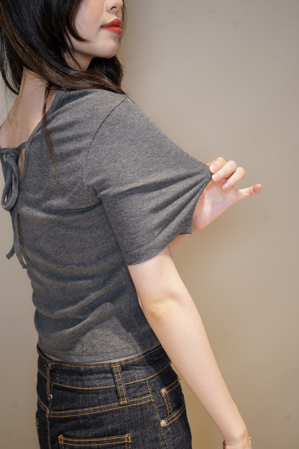 綁帶著前面 優雅氣質蝴蝶結/ 綁帶著後面 美背設計/