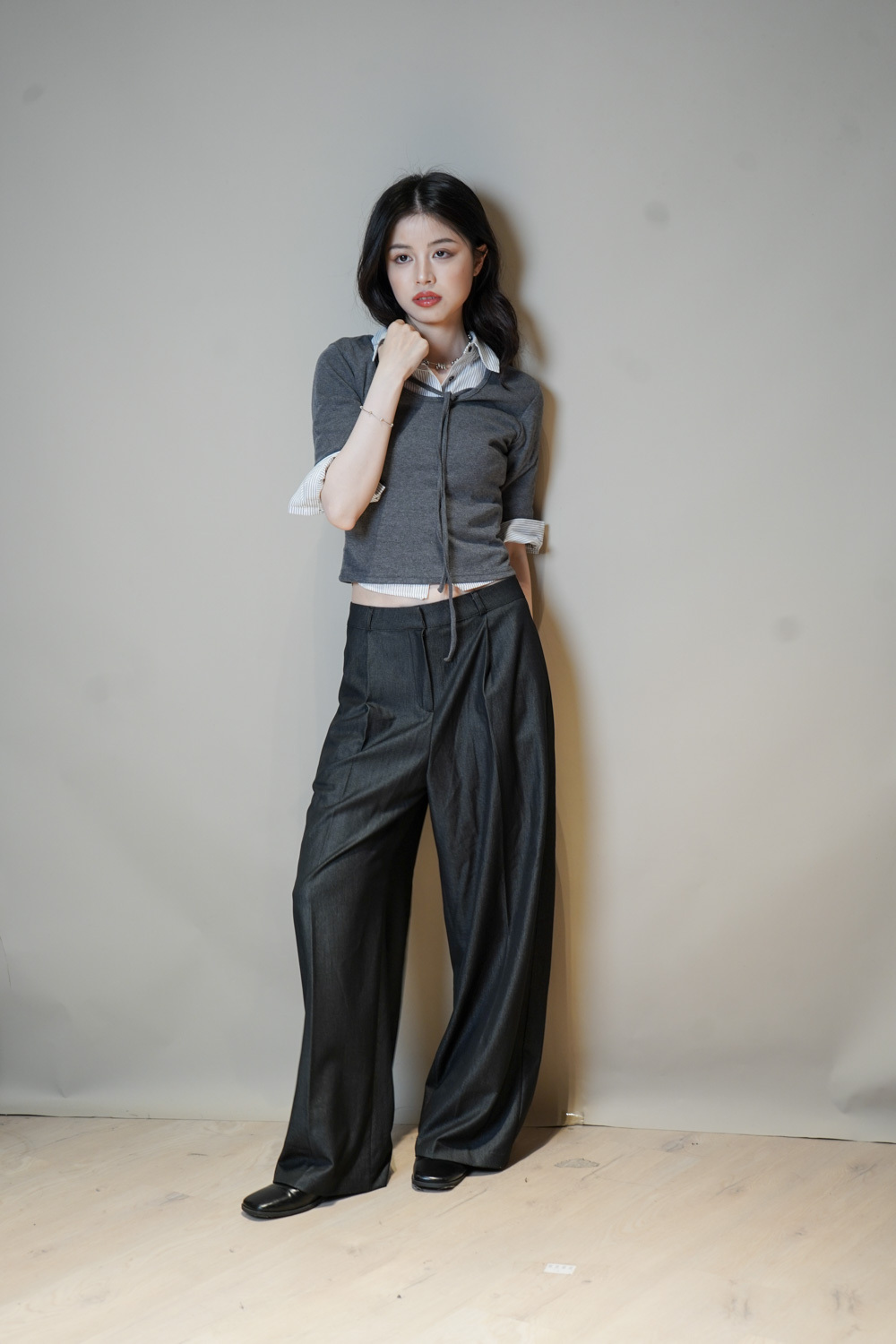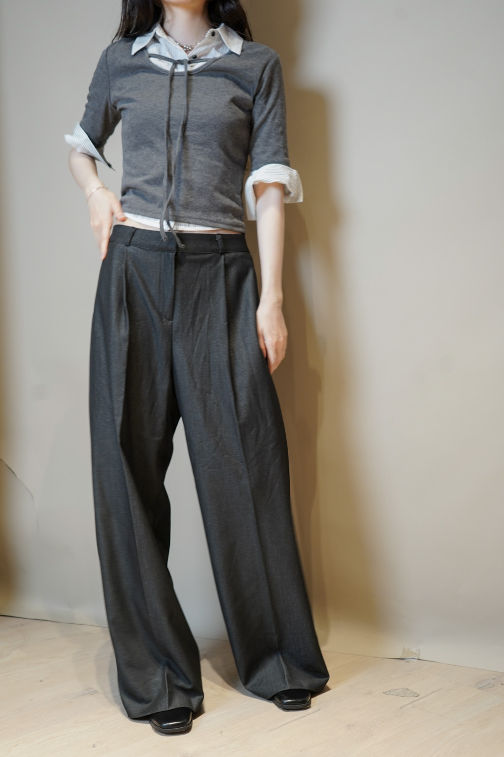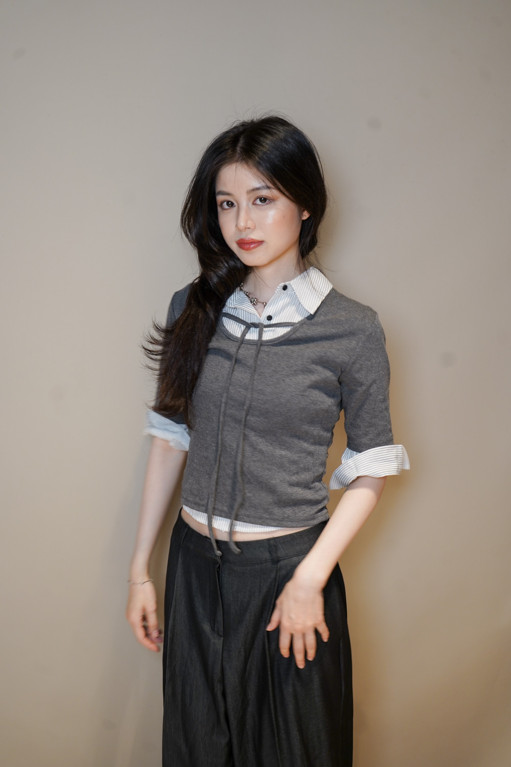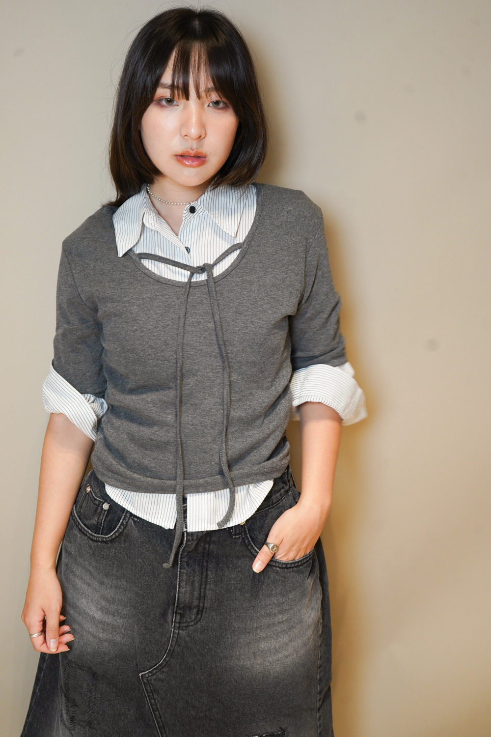 Tie-Front layering top (CHARCOAL/BLACK)
