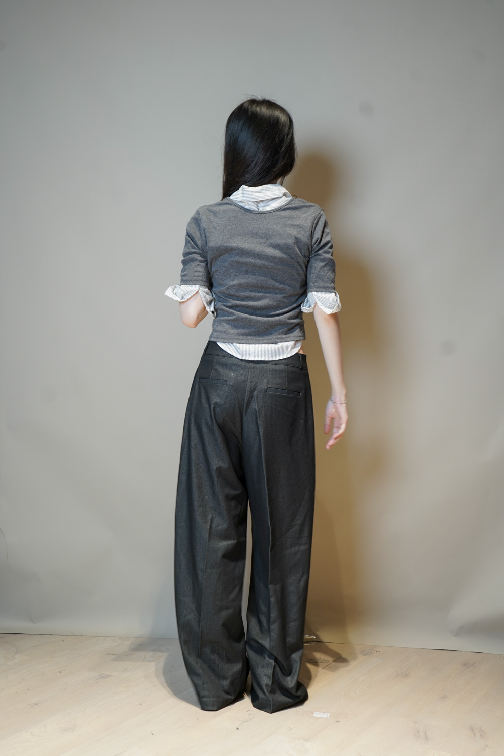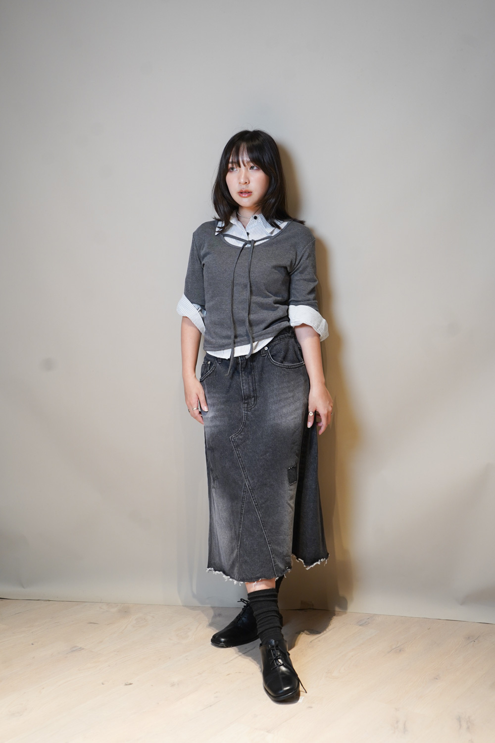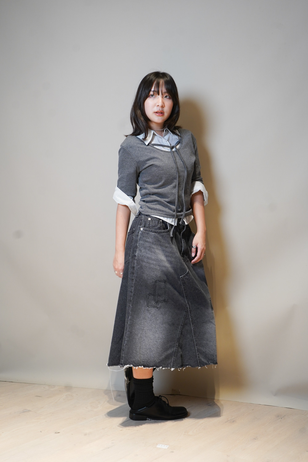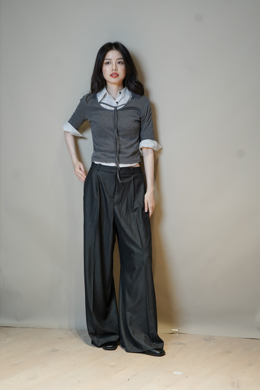 Tie-Front layering top (CHARCOAL/BLACK)