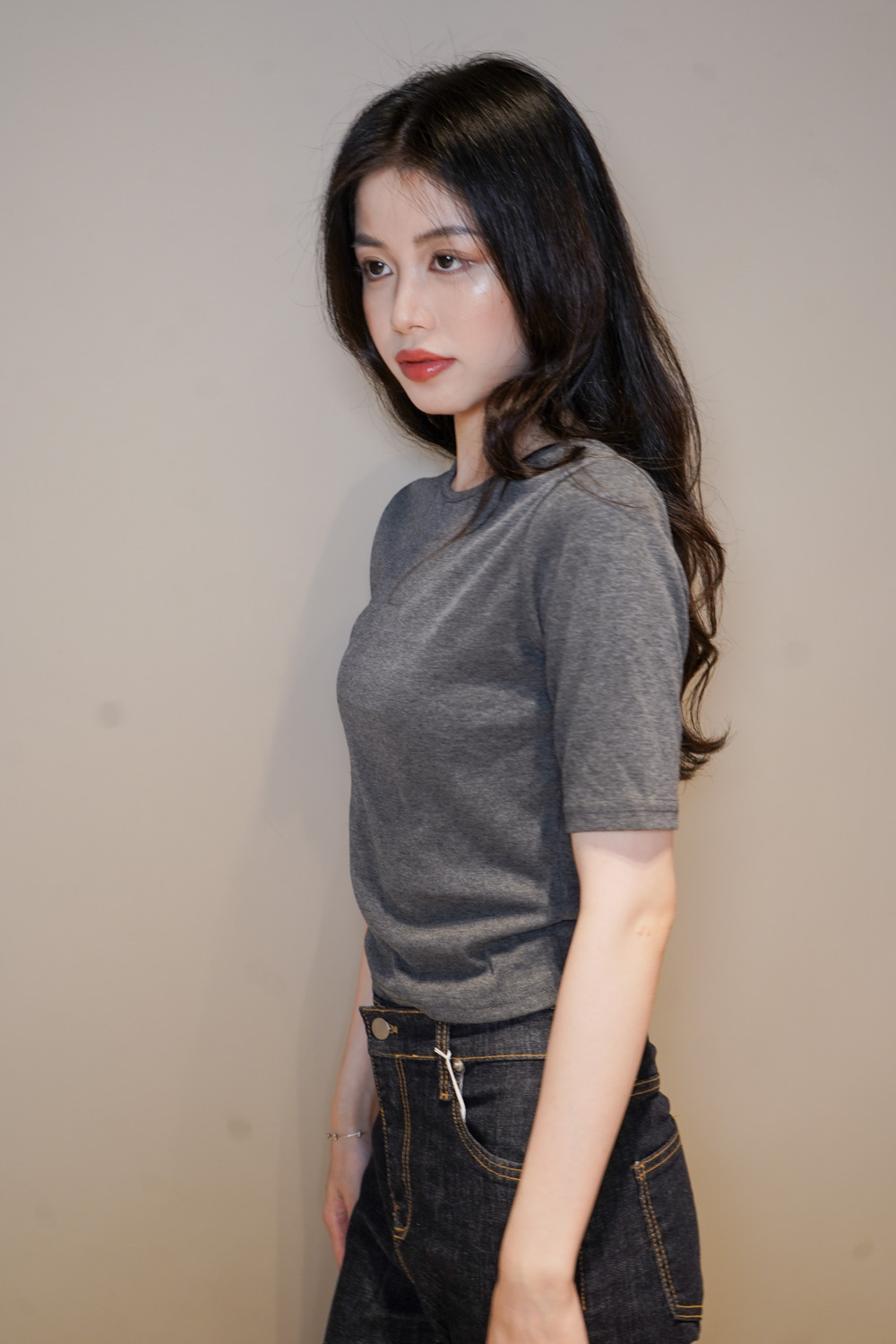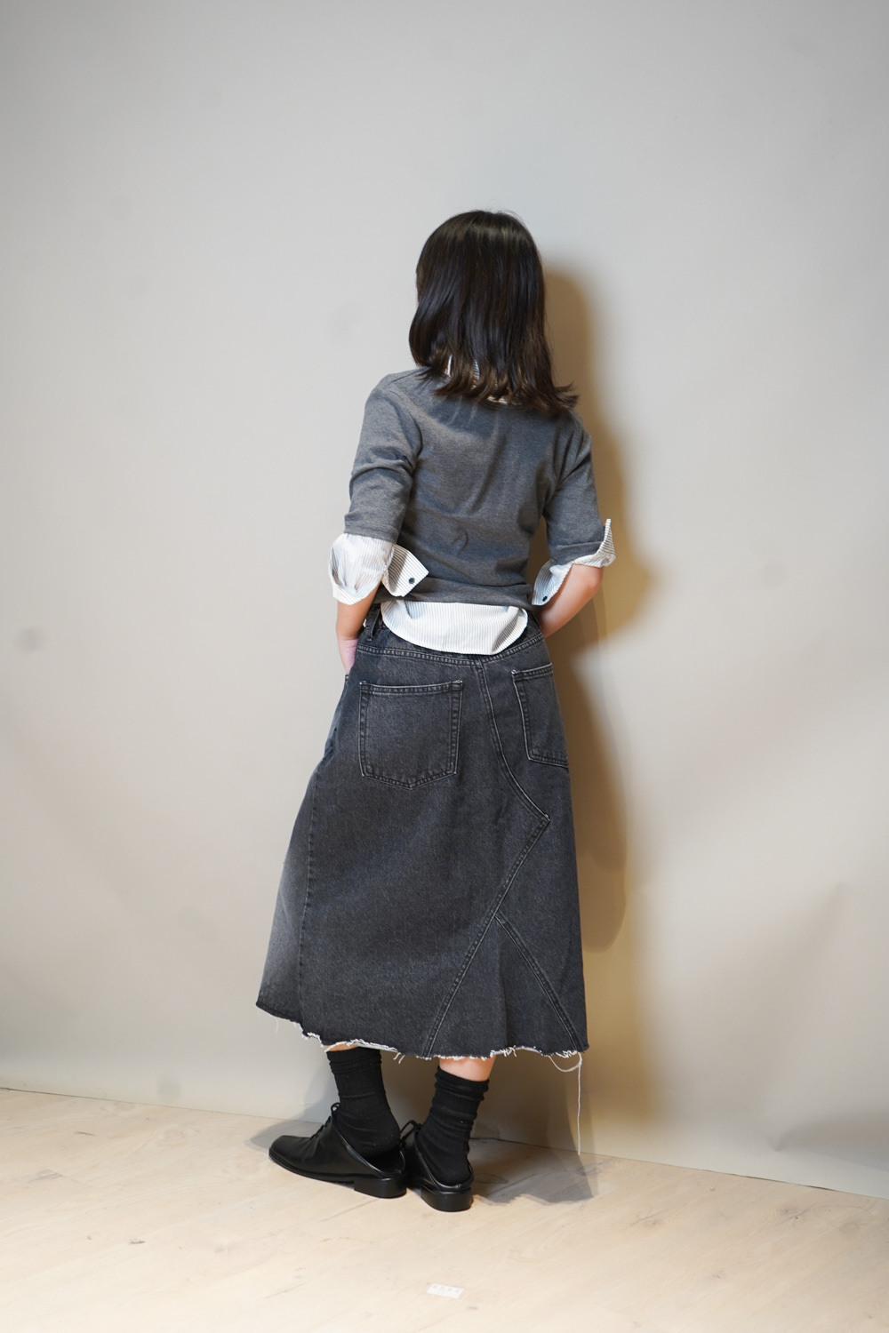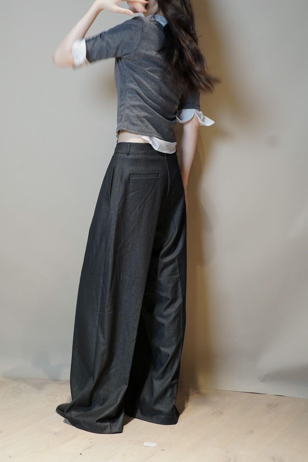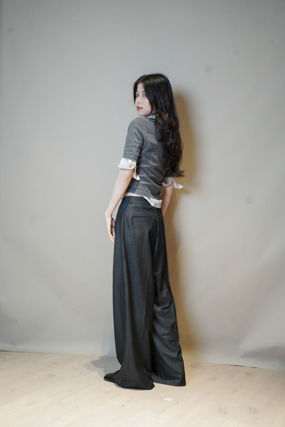 Tie-Front layering top (CHARCOAL/BLACK)