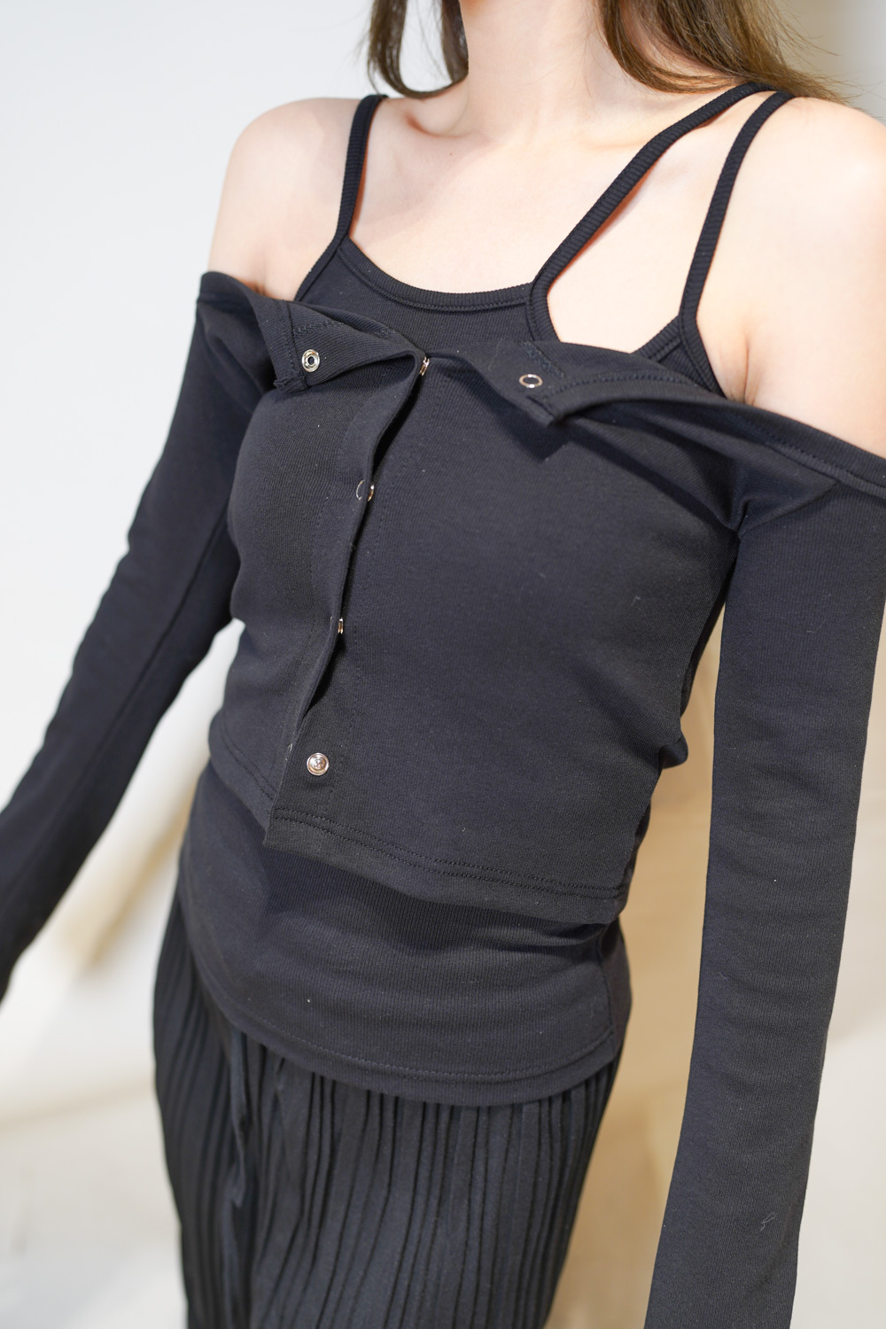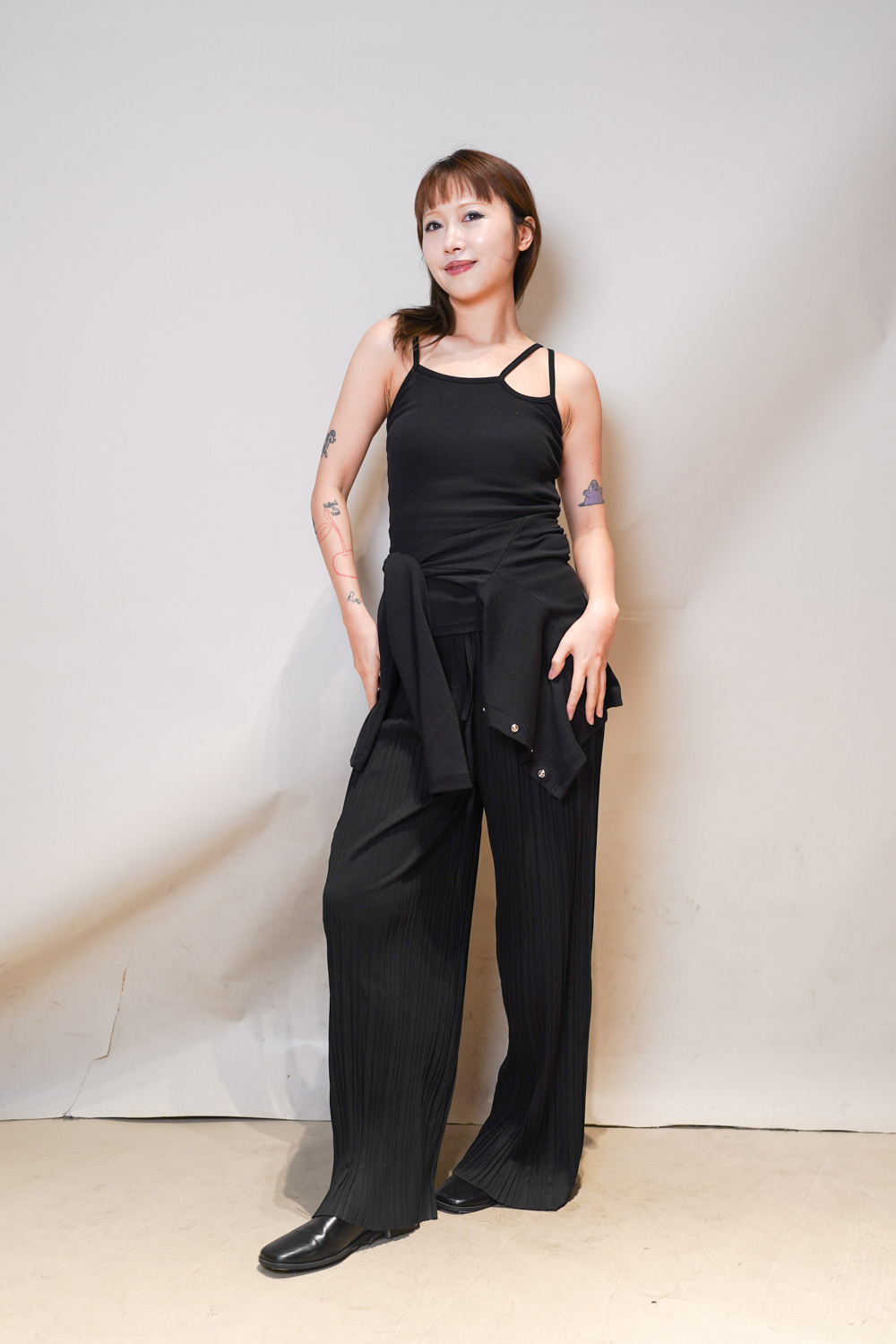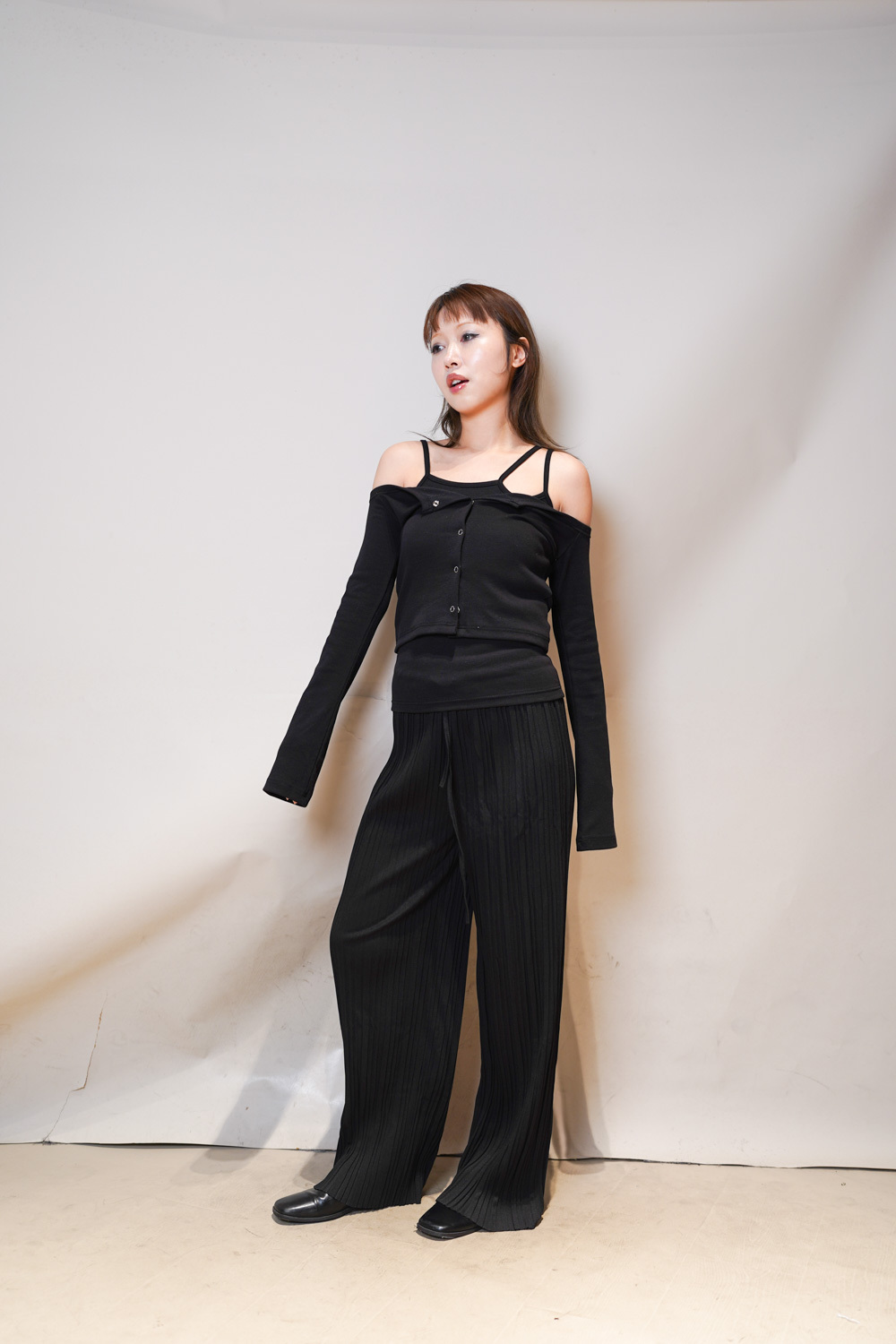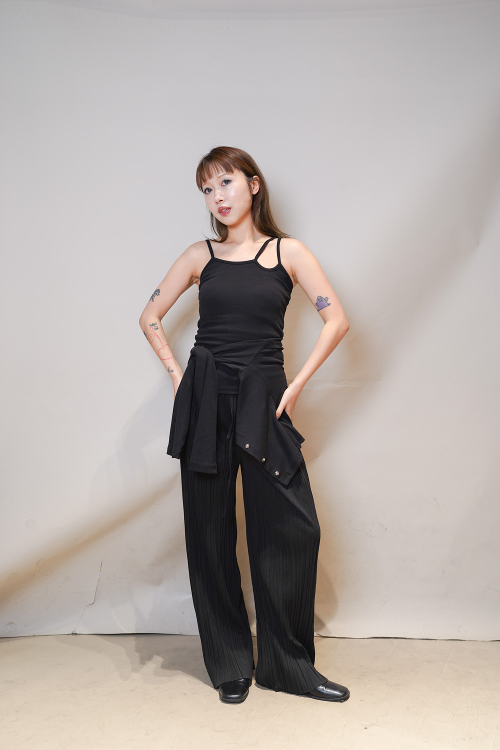 領口位置剛好露出鎖骨與肩膀線條 呈現一種內斂卻有設計感的女性美學