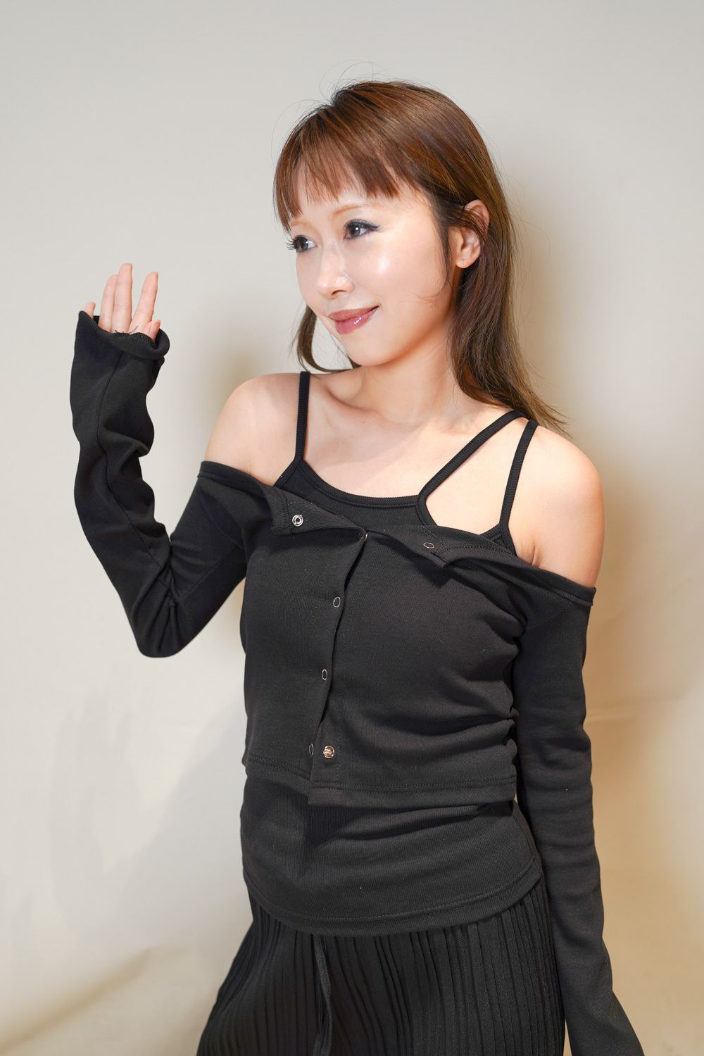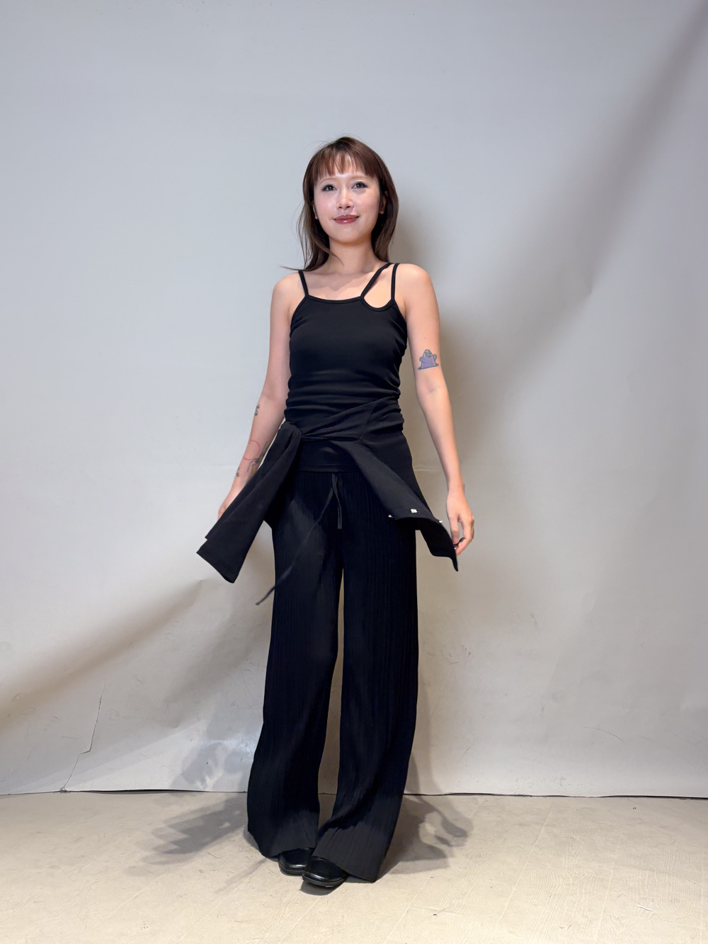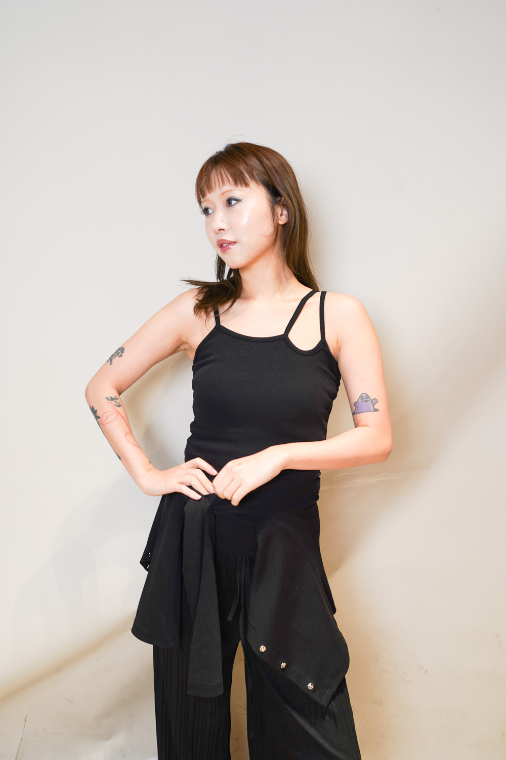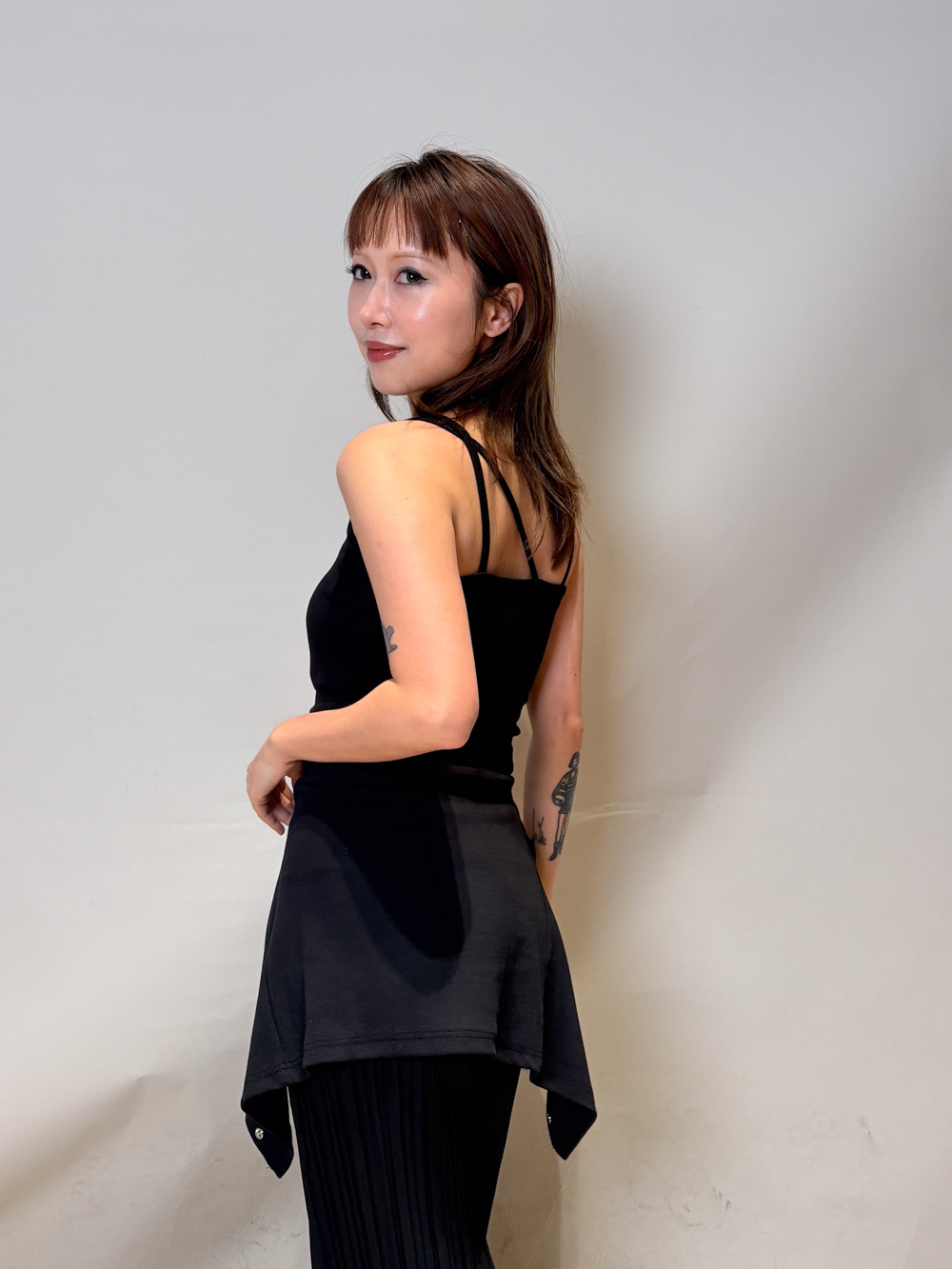 領口位置剛好露出鎖骨與肩膀線條 呈現一種內斂卻有設計感的女性美學