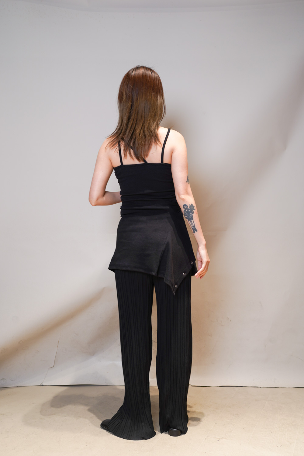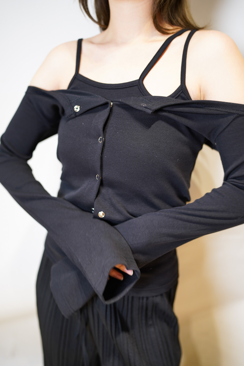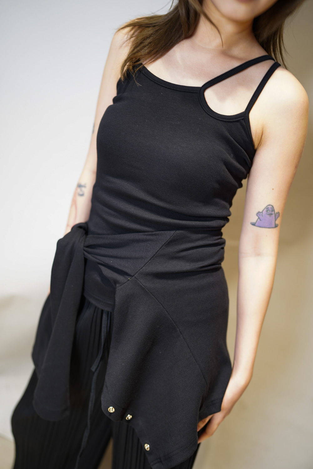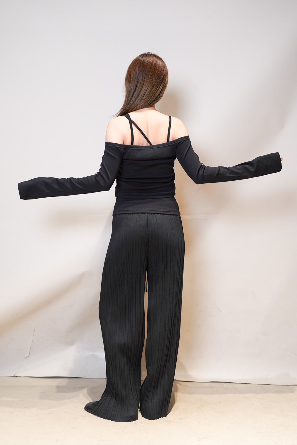 領口位置剛好露出鎖骨與肩膀線條 呈現一種內斂卻有設計感的女性美學