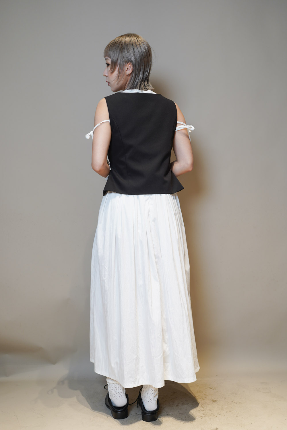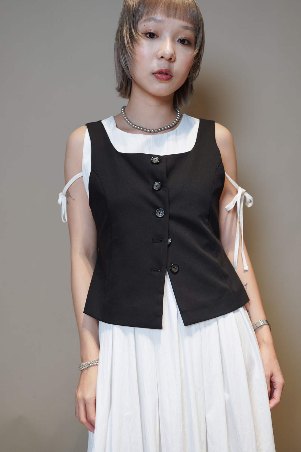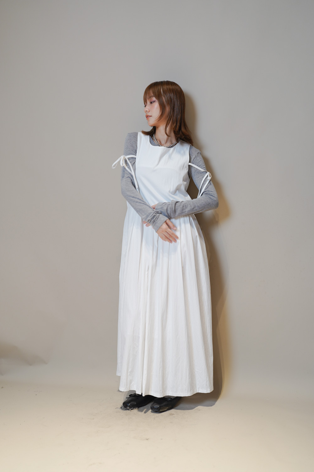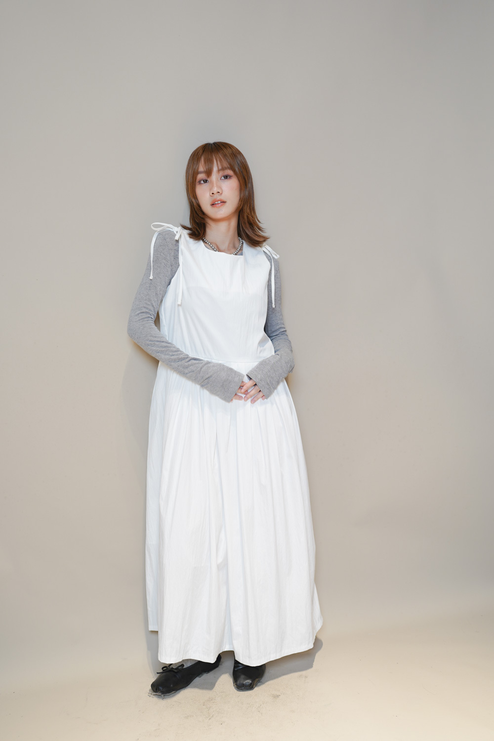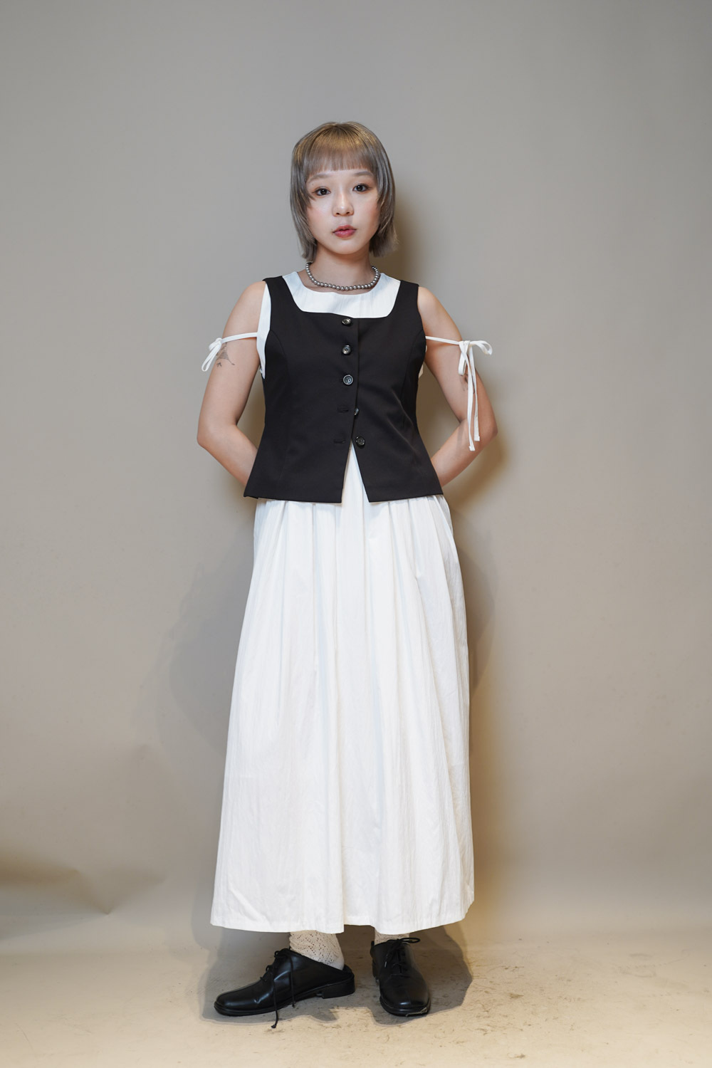 肩膀設有蝴蝶結綁帶 營造飄逸垂墜感/