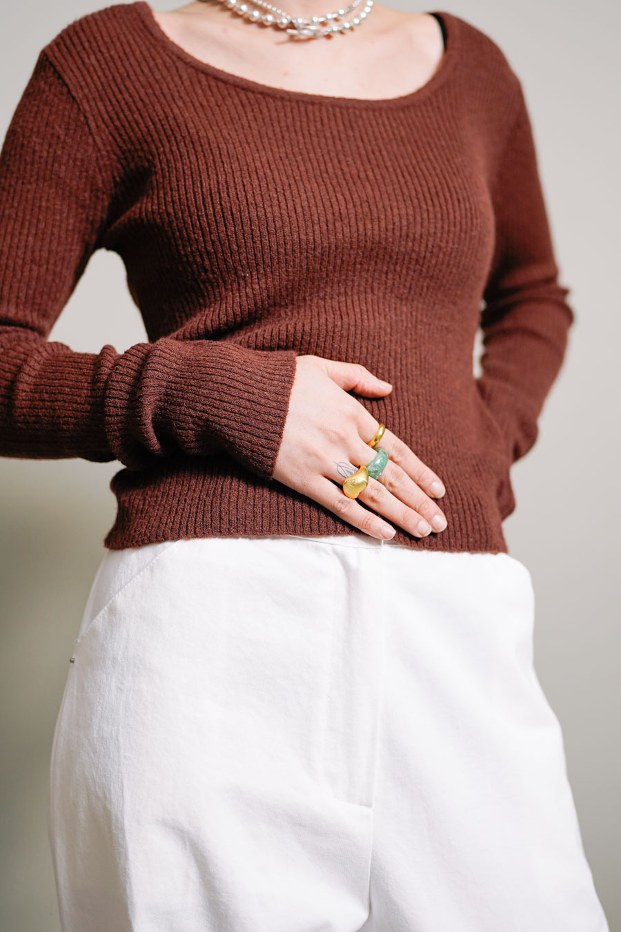 直坑紋 顯纖瘦感 / 紅色顯好氣色 / 燕麥色顯白