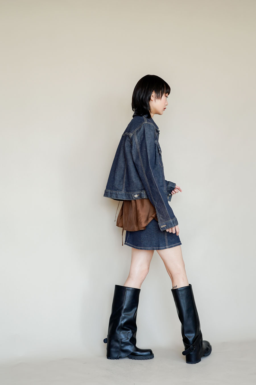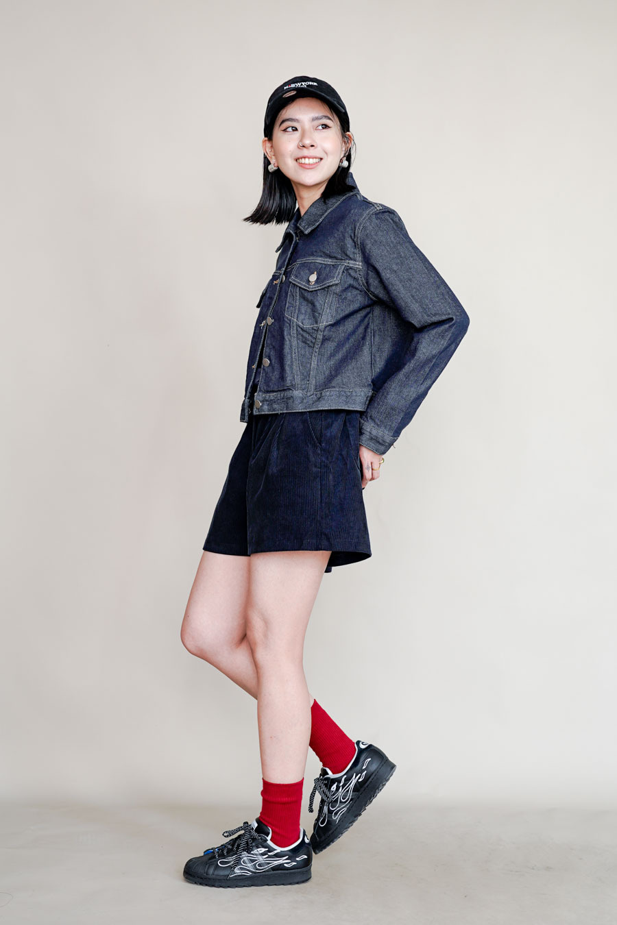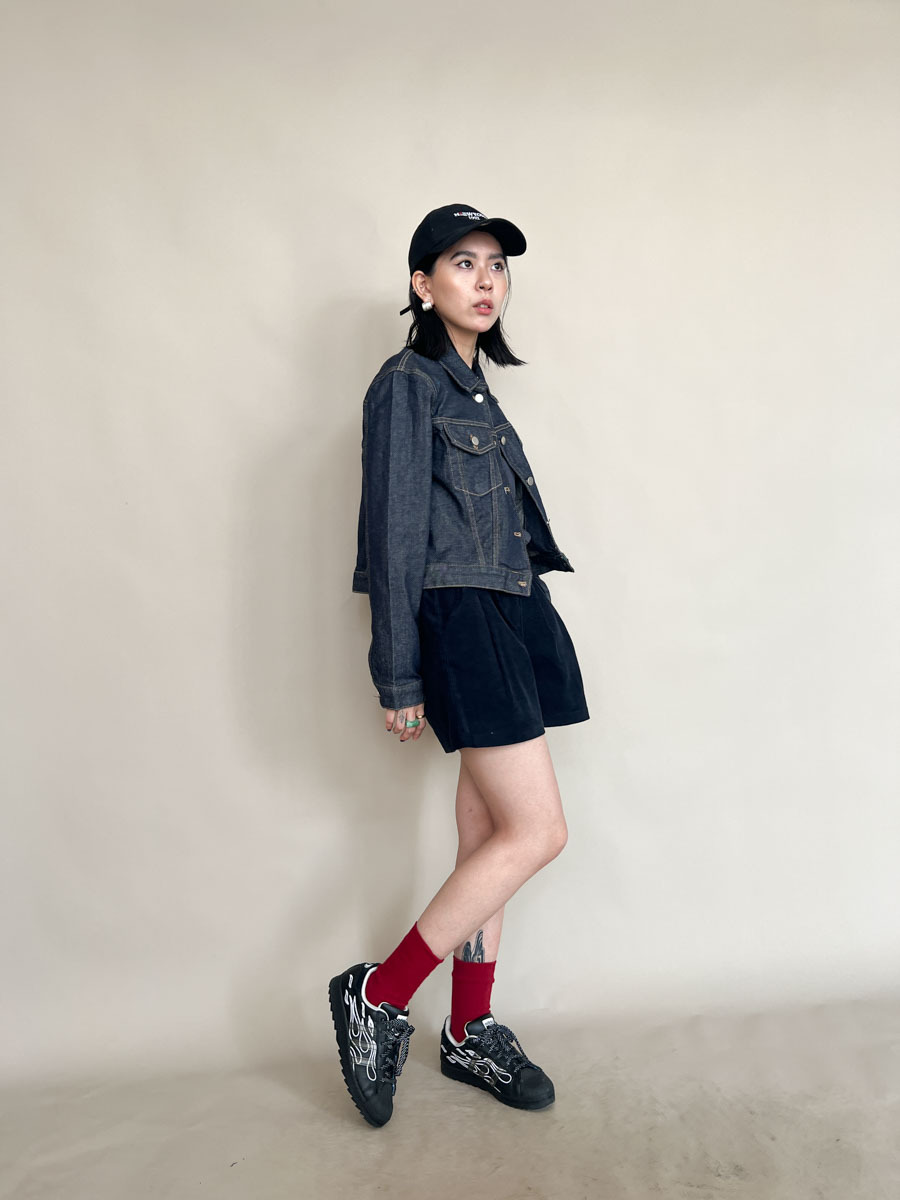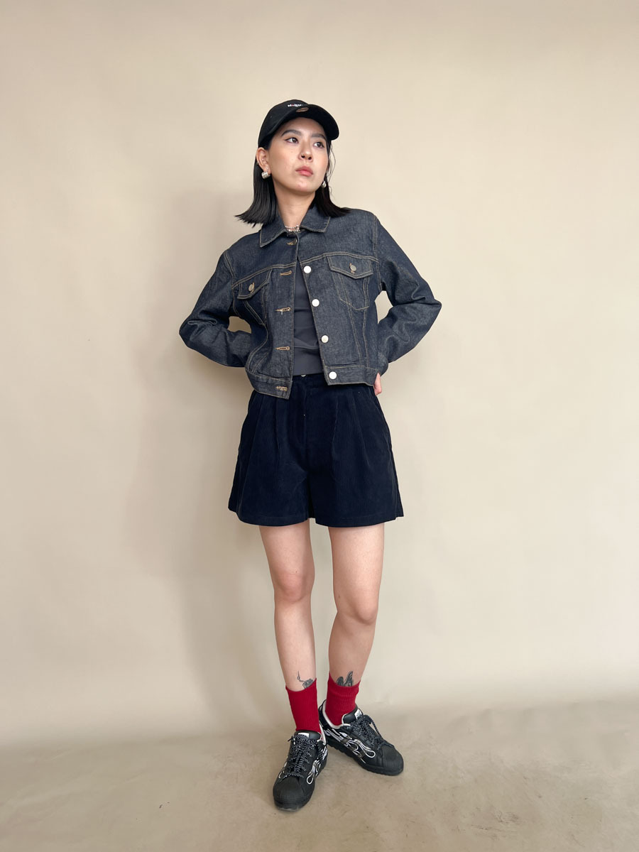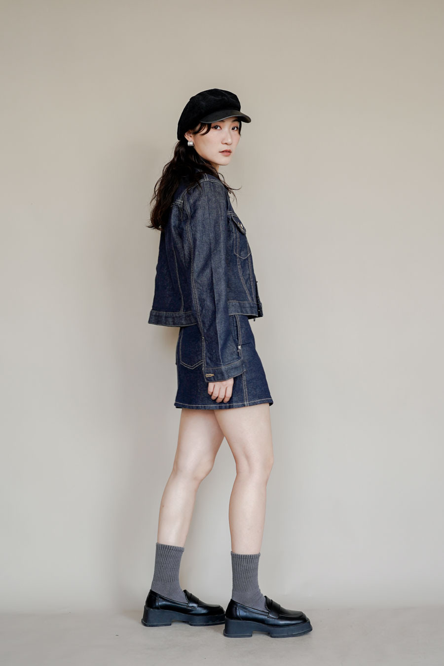 深色牛仔質地不退布料/ good fit clean cut 顯精神/