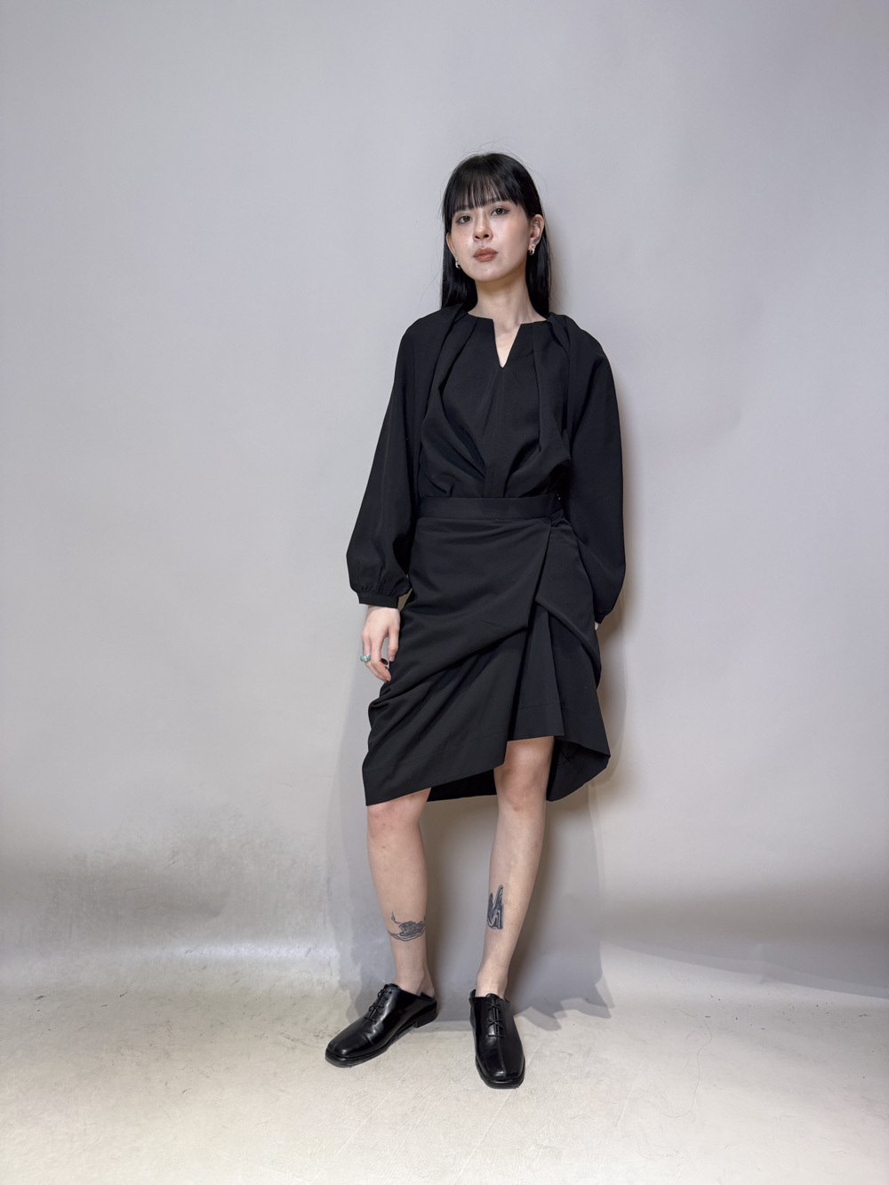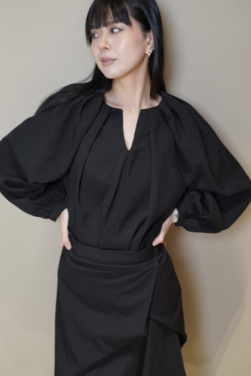 由領口開始延伸的大百摺設計/